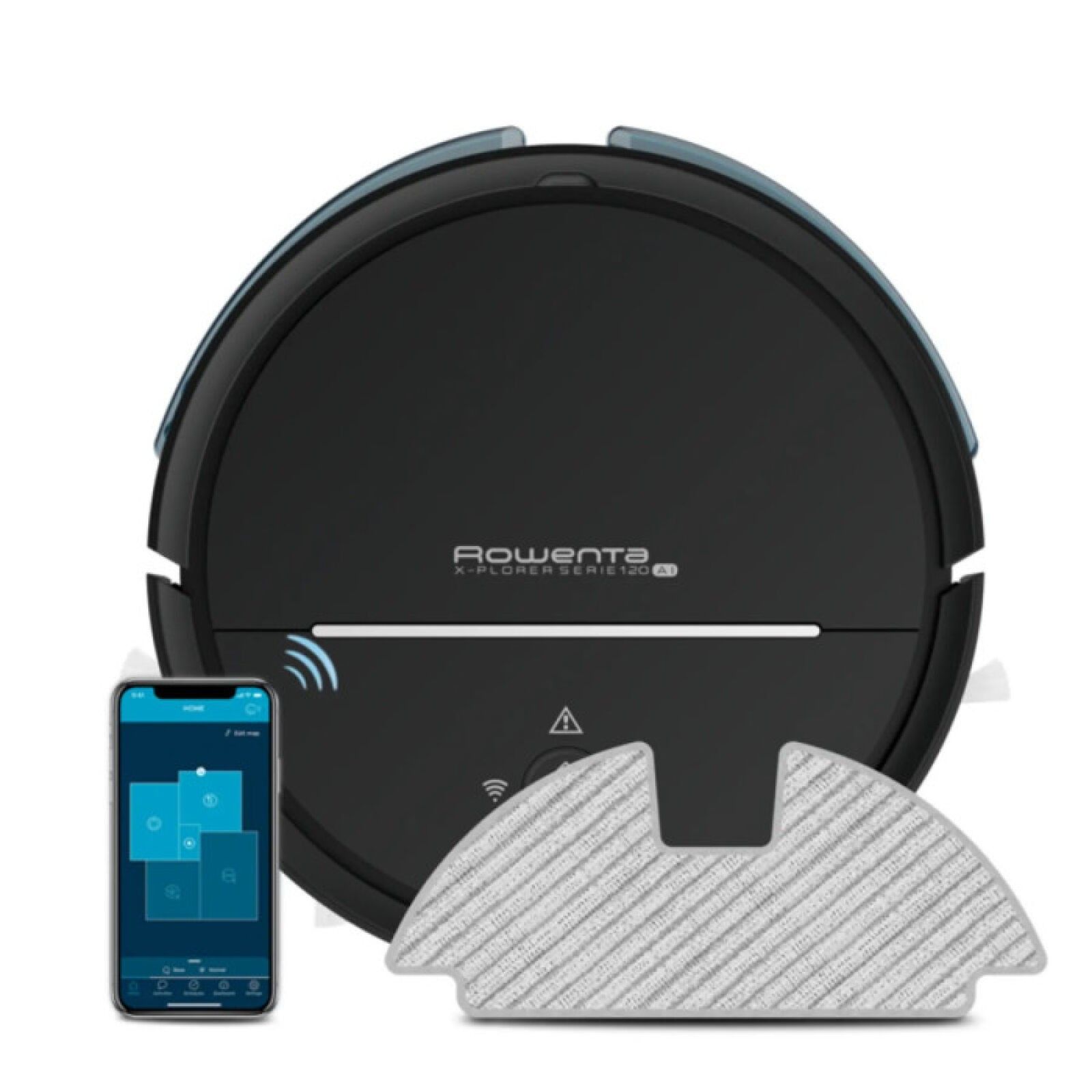 9862-211 / X-Plorer Serie 120 AI robot hoover - ROWENTA - RR7875WH - Black - AI navigation and Laser+ camera - Up to 120 min autonomy - 0.7 L bin capacity - 65 dB noise level - Multi-room and multi-stage - Intelligent mapping - Dimensions: 34 × 34 × 9.7 cm - Weight: 3.86 kg /// LIKE NEW WITH DEFAULT: broken brush head