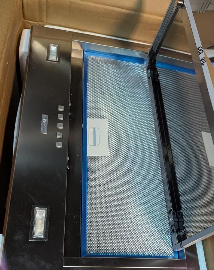 7388-188 / Filter unit 52 cm 680 m³/h 71 dB - ROBLIN - Aria 520 - Stainless steel - Flow rate up to 680 m³/h - noise level max 71 dB - all-round extraction - 4 speeds + intensive mode - evacuation or recycling - Energy class A - Width 52 cm x Height 35,7 cm x Depth 30 cm - Weight : 7,5 kg /// LIKE NEW - SLIGHT IMPACT ON FILTER + Hinge damaged (SEE PHOTOS )