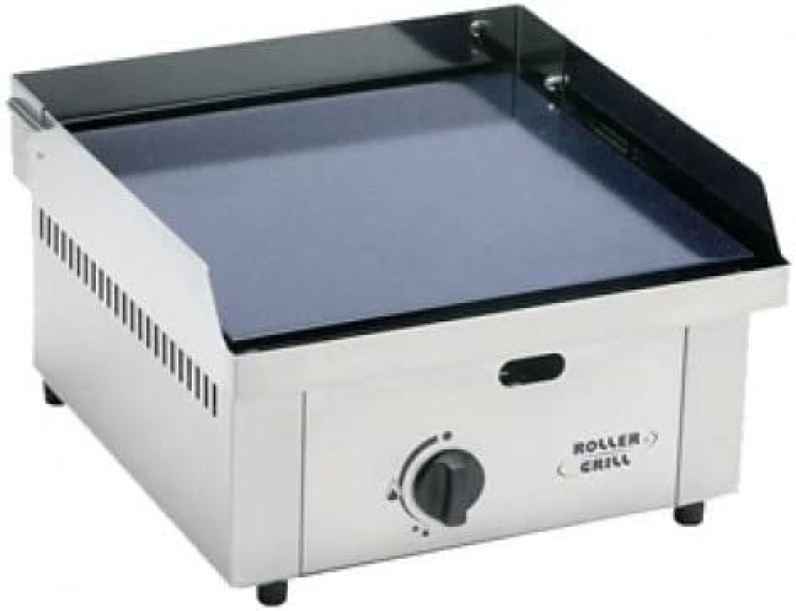 7388-460 / Product name - ROLLER GRILL - PS400GE - Enamelled steel (grey/silver) - 40×40 cm griddle, 2600 W, piezo ignition, thermostat controllable up to 300 °C, 1 L juice drip tray, butane/propane compatible - Dimensions : 40×40×28 cm - Weight : 14,5 kg /// LIKE NEW WITH DEFAULT: damaged plus grease tray plus packaging