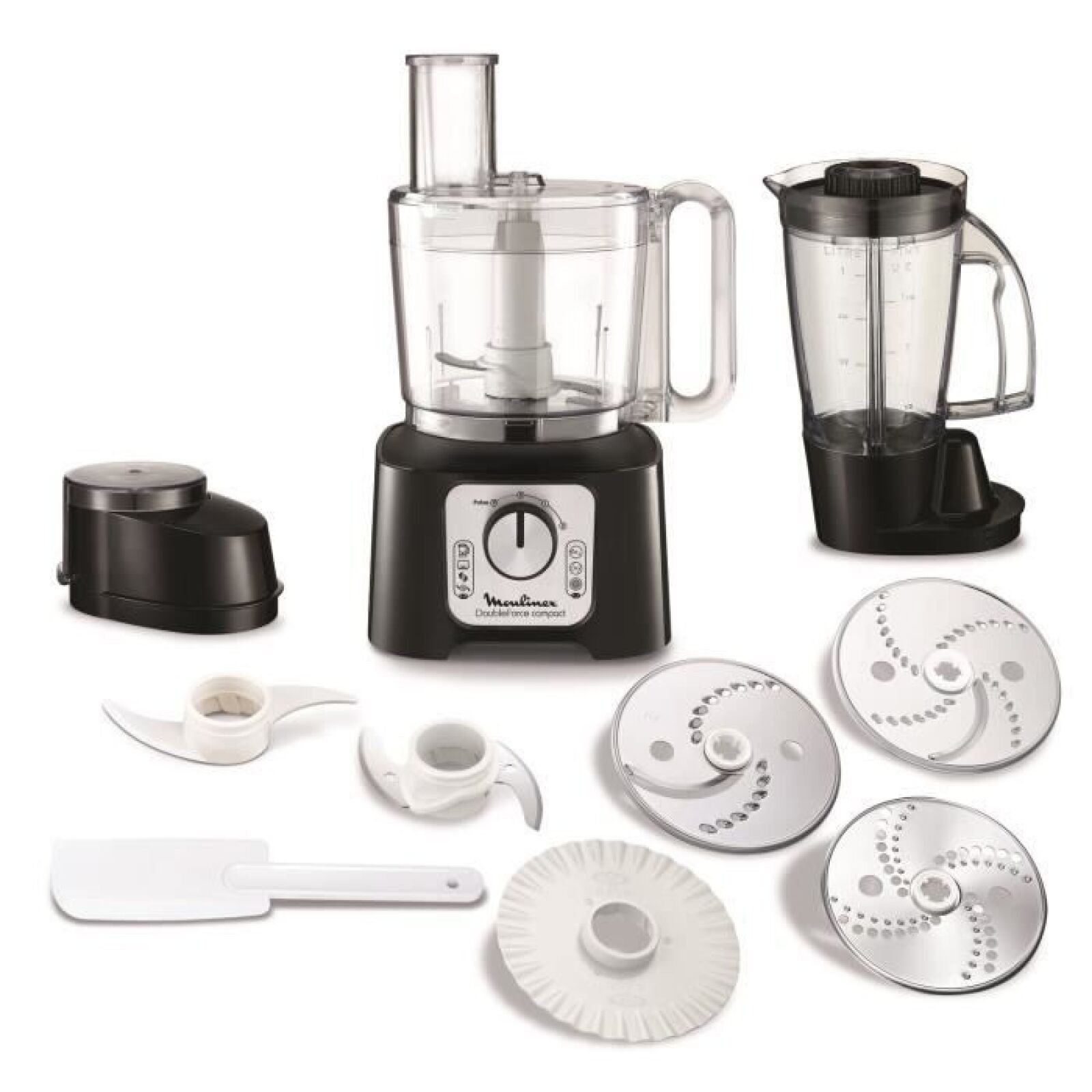 7388-260 / Multifunction food processor - MOULINEX - FP546811 - Black - Power 800 W, main bowl 3 L, blender bowl 1.25 L, 2 separate motor outputs, 6 speeds + Pulse function, accessories included (stainless steel blade, 3 reversible discs, mixer, mini-chopper, beater) - Dimensions : 22.74 × 26.15 × 41.37 cm - Weight : 2.54 kg /// LIKE NEW WITH DEFAULT: Plastic part of blender broken, see photo 2