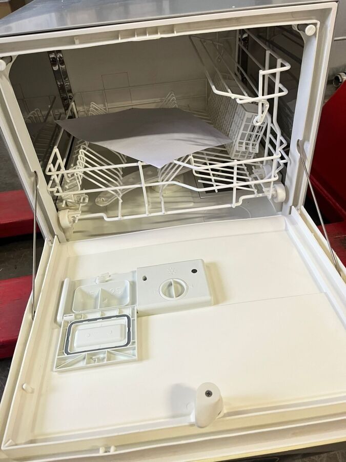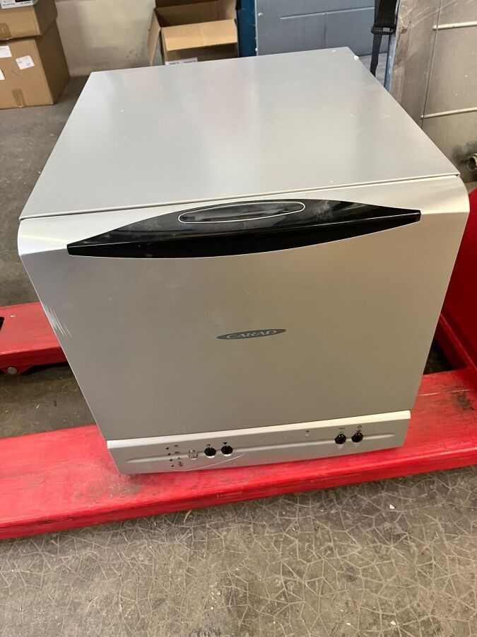 8072-321 / Mini dishwasher 4 place settings - CARAD - DW3244DT - Power 1050 W - Max. water consumption: 12 L - Energy consumption: 0.61 kWh - Noise level 12 L - Energy consumption 0,61 kWh - Noise level 54 dB - Energy class B - Washing class B - Drying class C - 8 programmes - Delayed start up to 9 h - Digital display with programme and time indication - Insulated double walls - Double level basket - Self-cleaning stainless steel microfilter - Super jet wash arm - Door opening safety device - Overflow safety device - Dimensions 45 × 44 × 53 cm - Weight 18 kg /// SECOND-HAND - NOT TESTED - Good condition