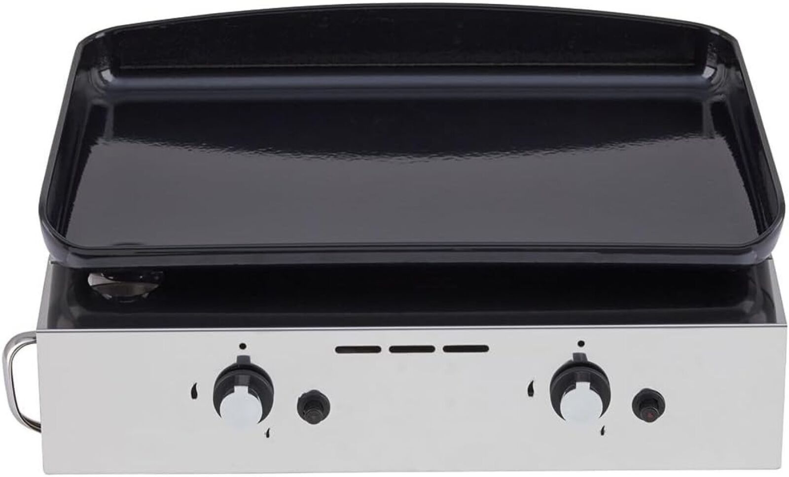 7388-366 / Product name - ENO - 555032010701 - Black/Stainless steel - Enamelled cast iron hob 47×36 cm, 5000 W, 2 independent cooking zones, adjustable temperature 120-360 °C, piezo ignition, marine finish stainless steel chassis, adjustable feet, 0.7 L juice collection bowl - Dimensions: 47 × 36 × 20 cm - Weight: 16 kg /// LIKE NEW WITH DEFAULT: Missing piezo button