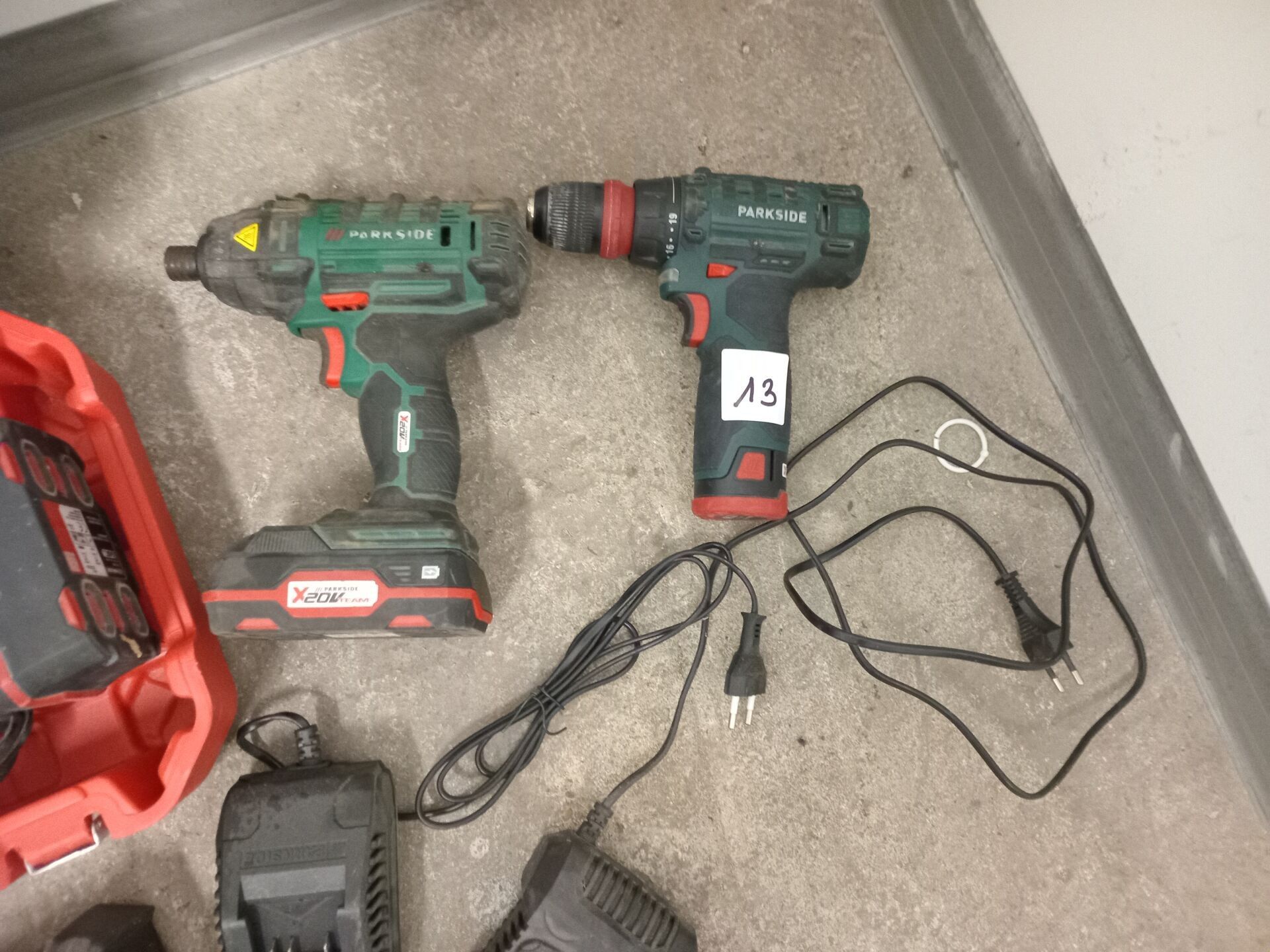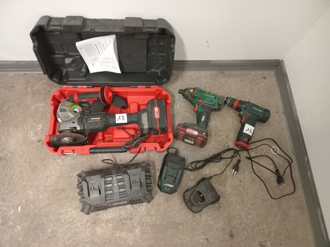 1 PARKSIDE PWSAP battery-powered angle grinder - 2 PARSIDE PBSA12D4 ET PDSA screwdrivers with 3 batteries and 3 chargers - - SOLD ON DESIGNATION AT QUINCY VOISINS (77)