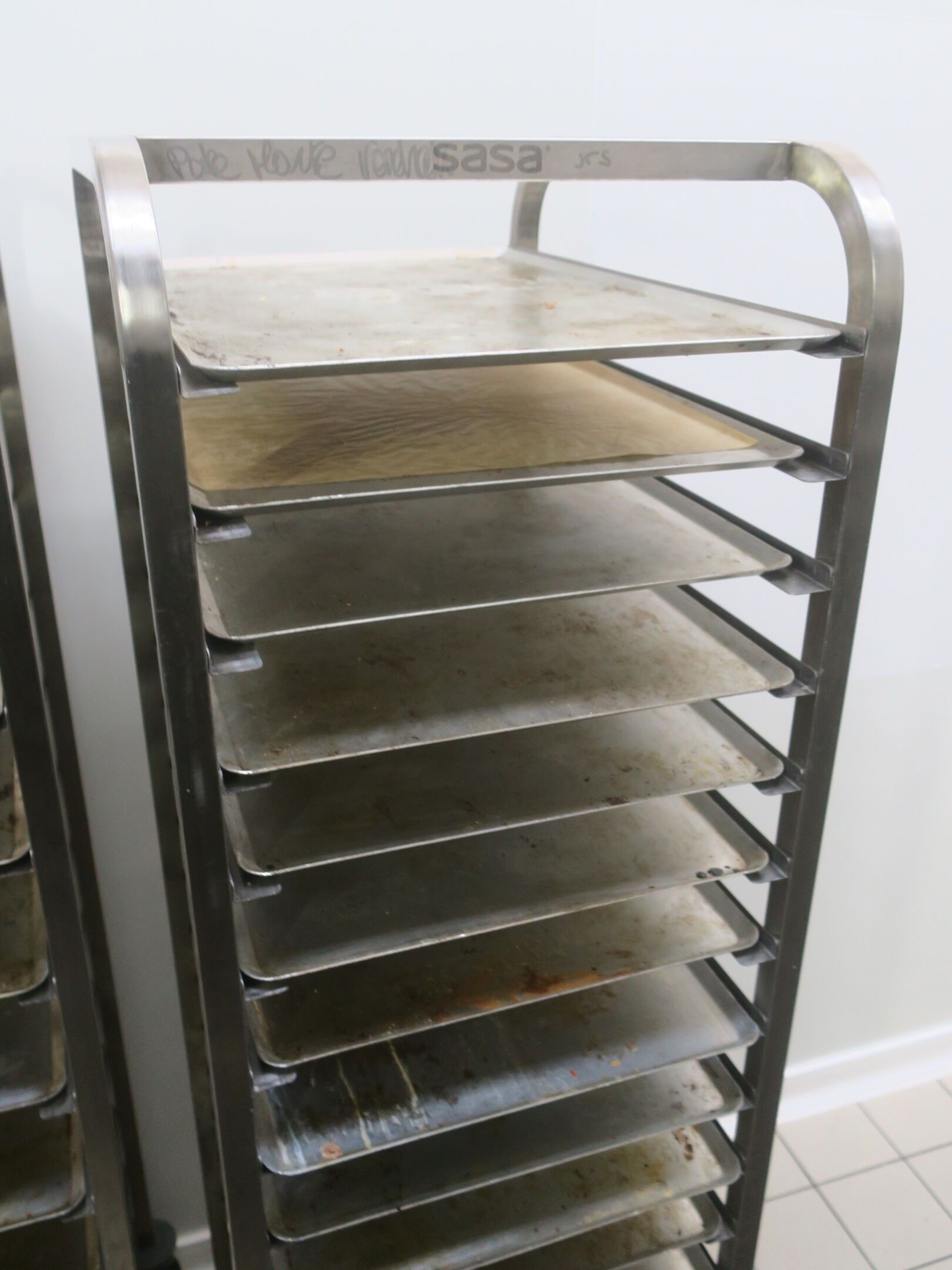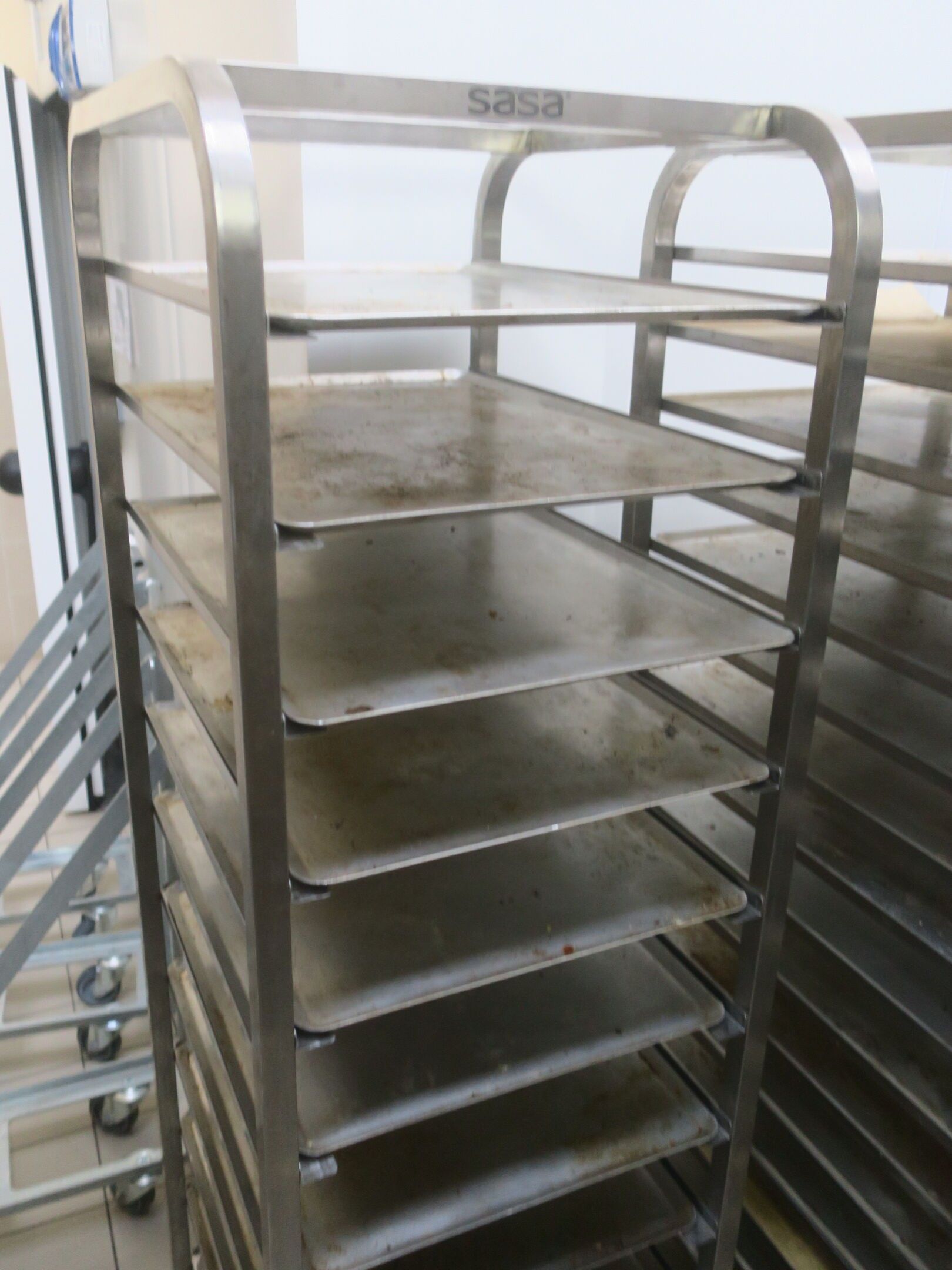 2 Sasa stainless steel pastry ladders, 20 and 13 levels, with 33 baking trays Judicial lot price 100