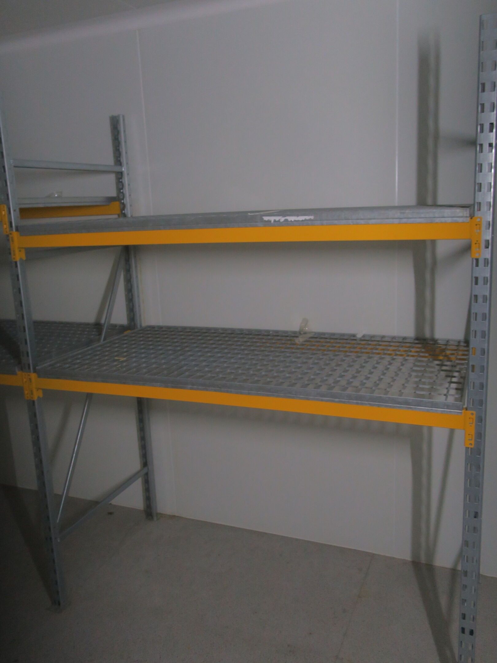 2 modular shelving columns, galvanised and yellow 375x80xh210 with duckboard shelves Judicial lot price 100