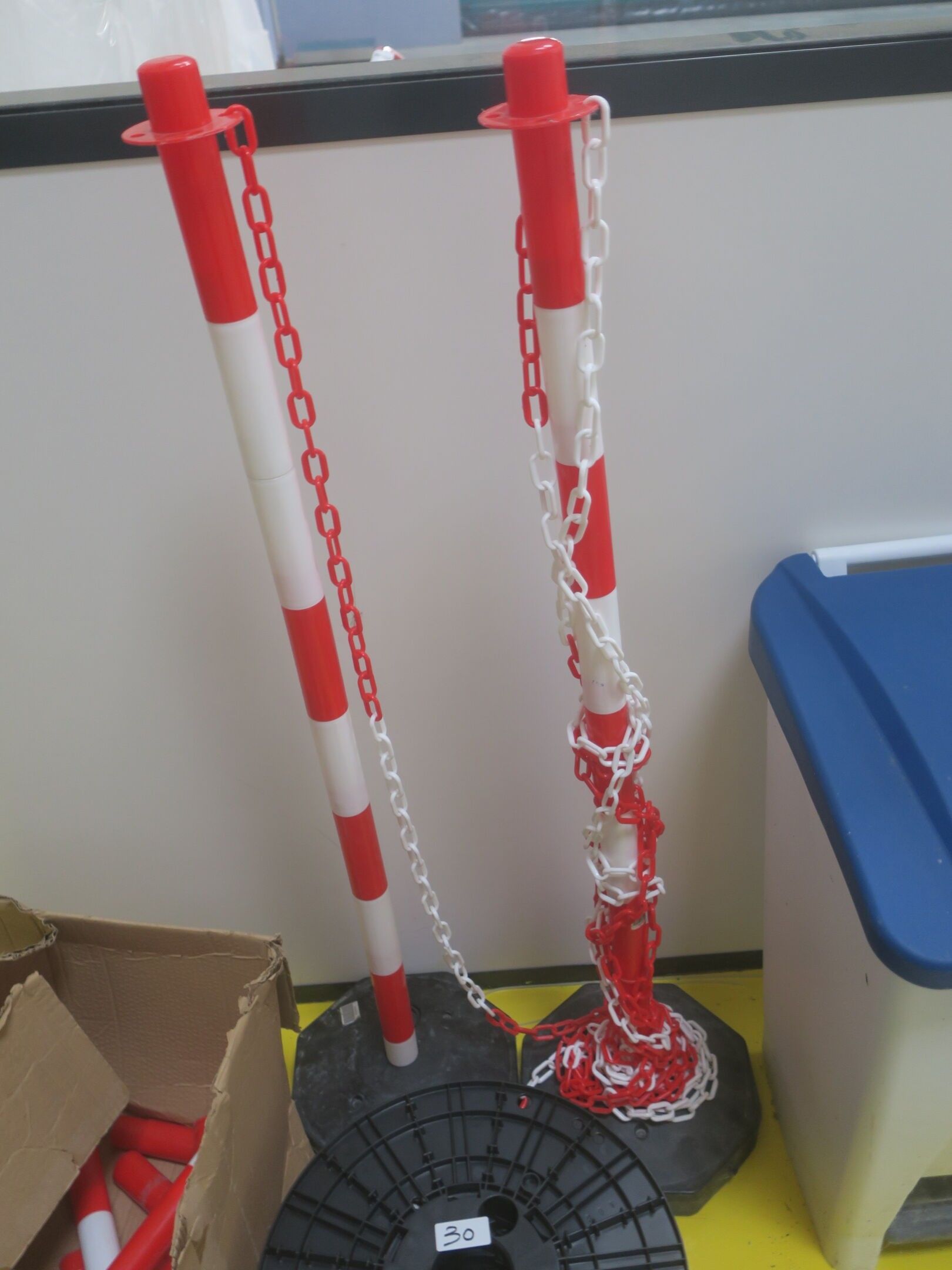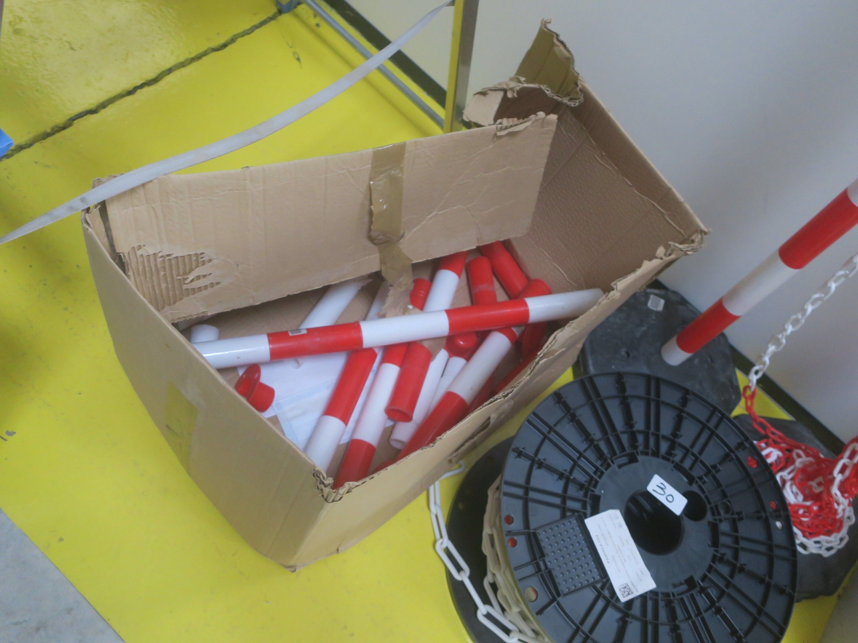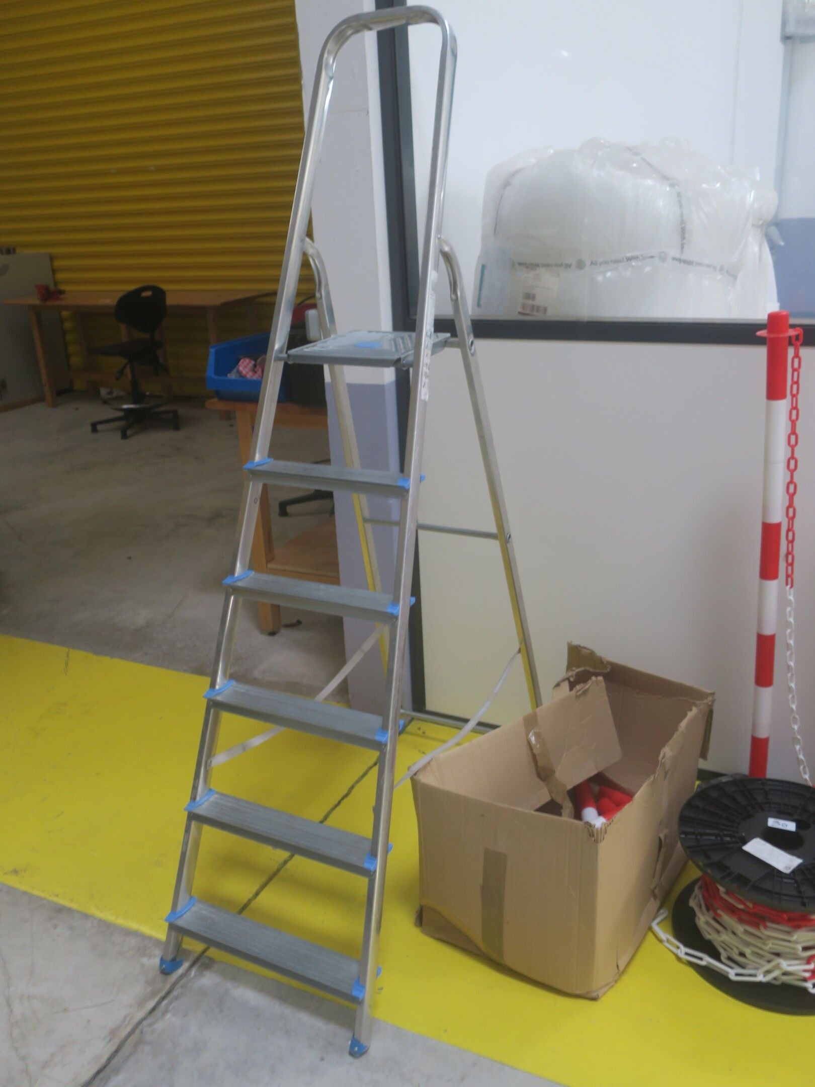 6-step stepladder, pvc litter bin, protection posts and pvc chain, judicial lot, starting price 20
