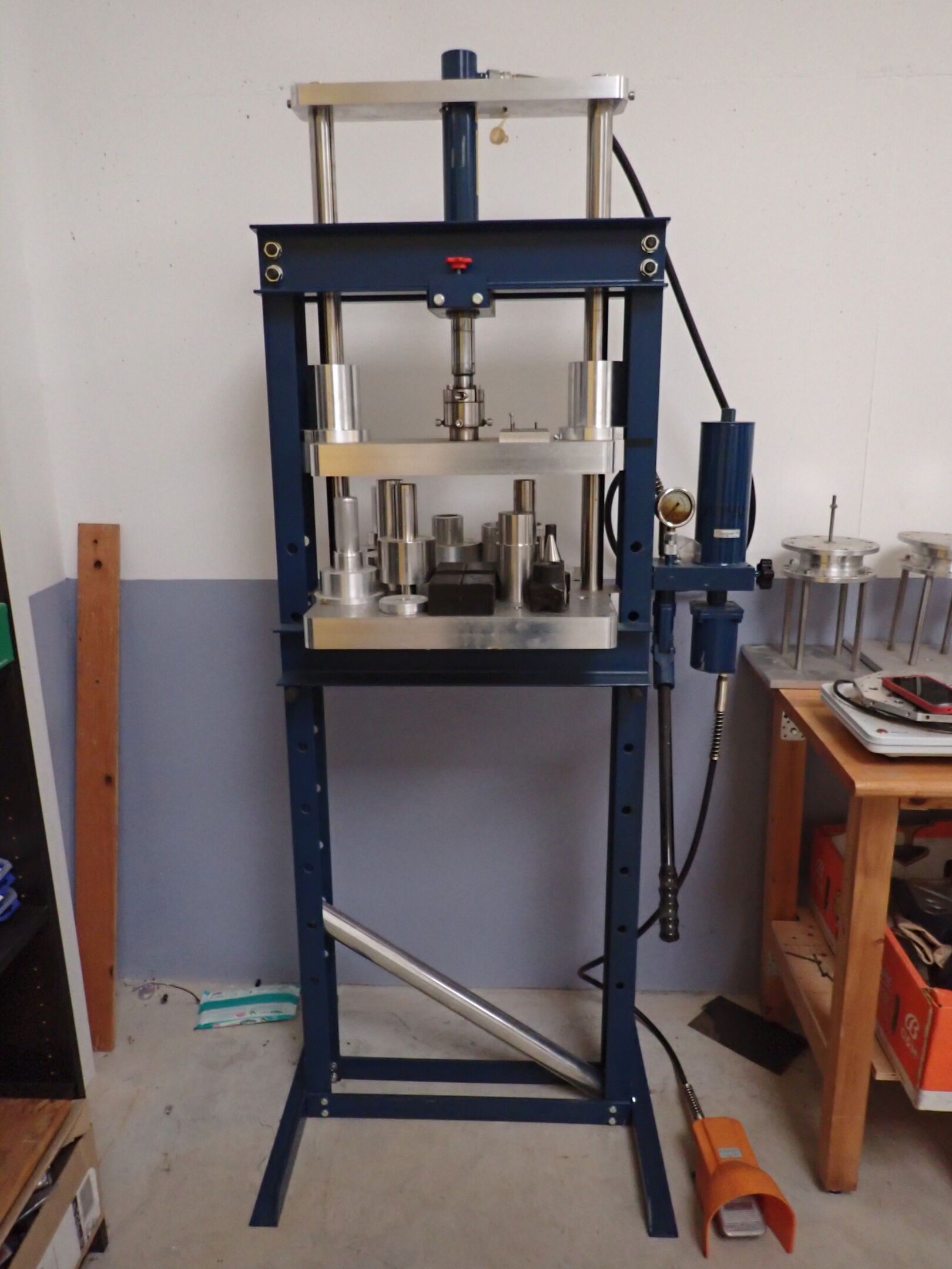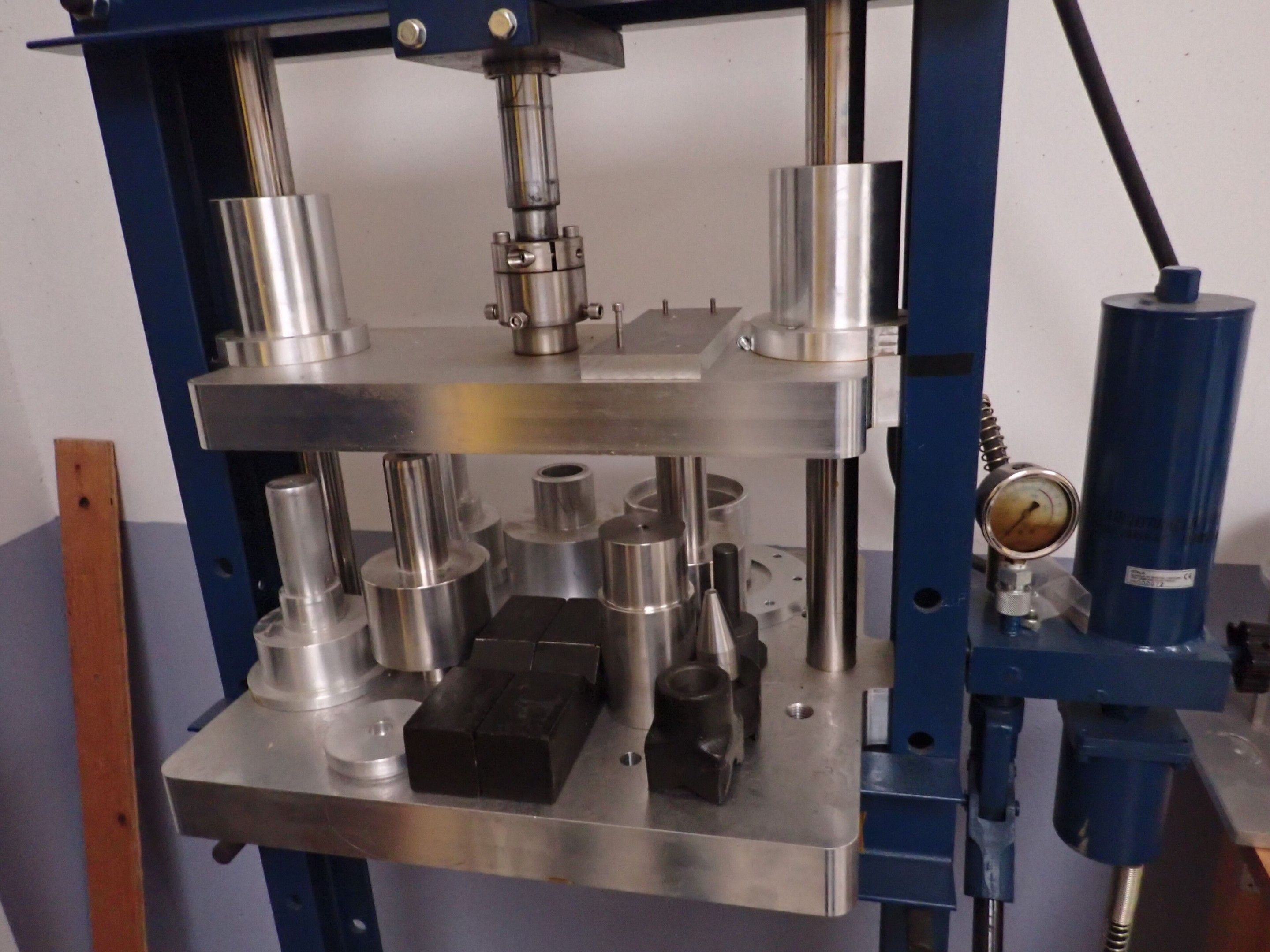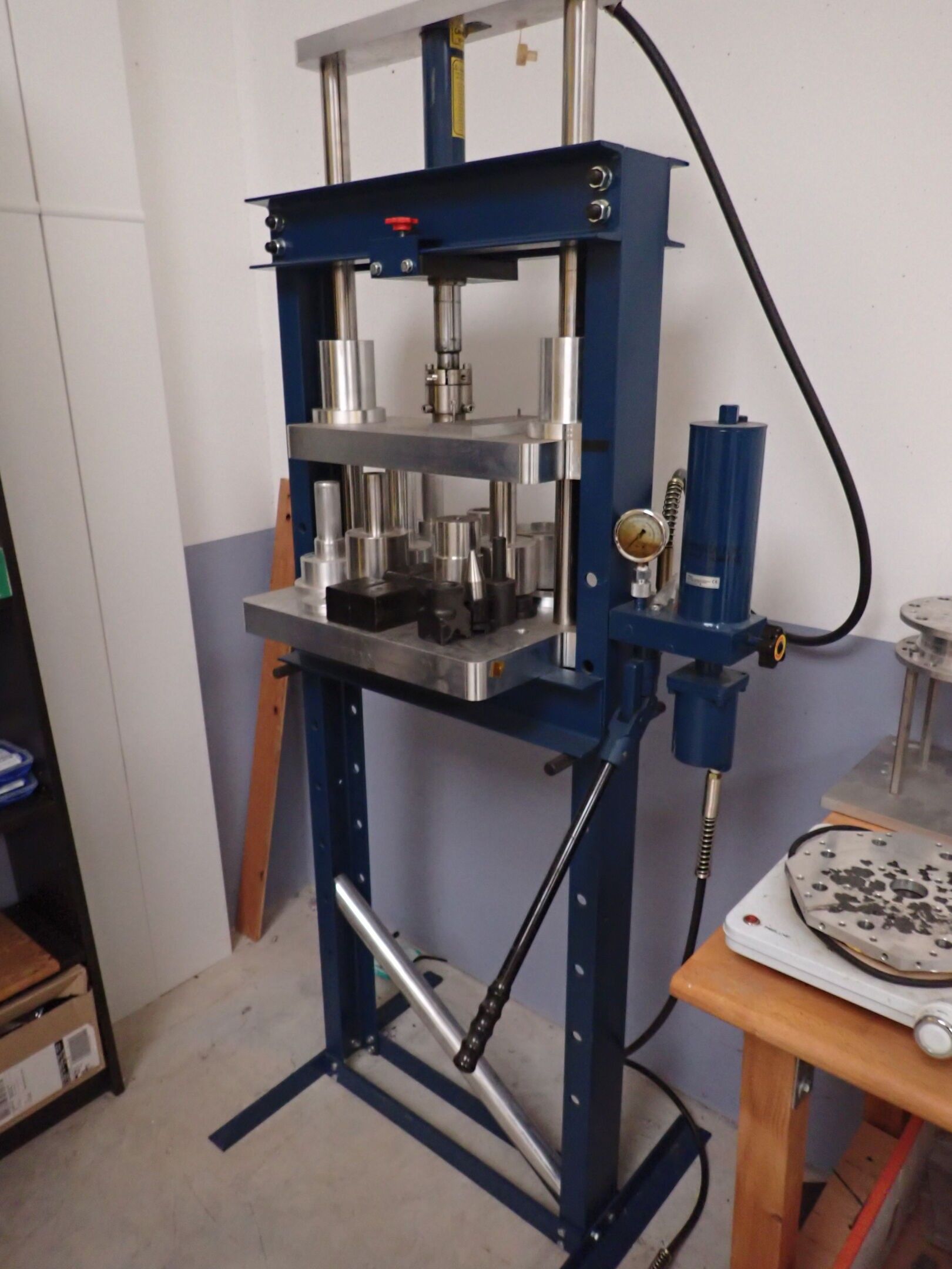 Blue precision hydraulic press, capacity 10 T OTELO, table size 45x49, passage 40, with dies, judicial batch, Price 100