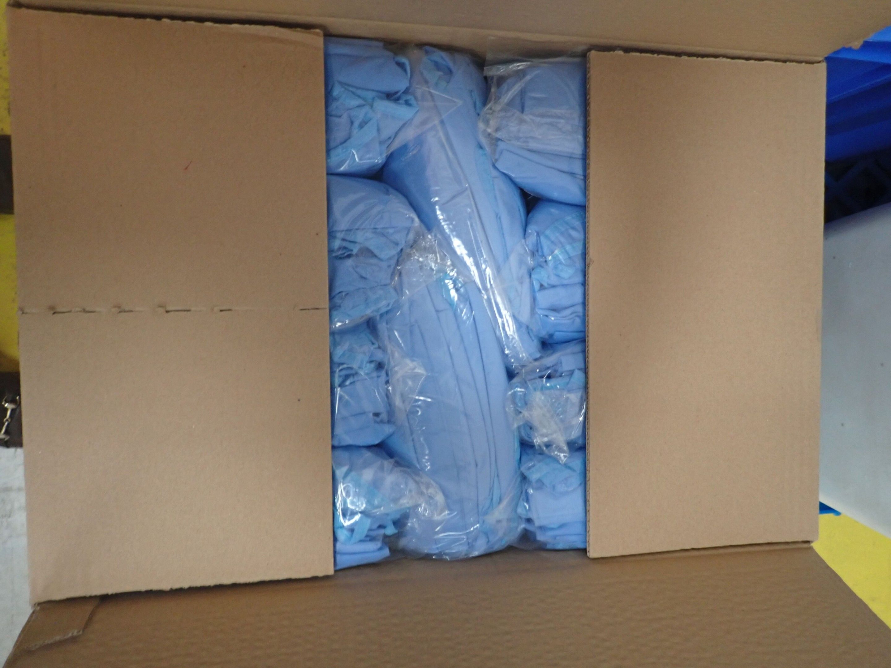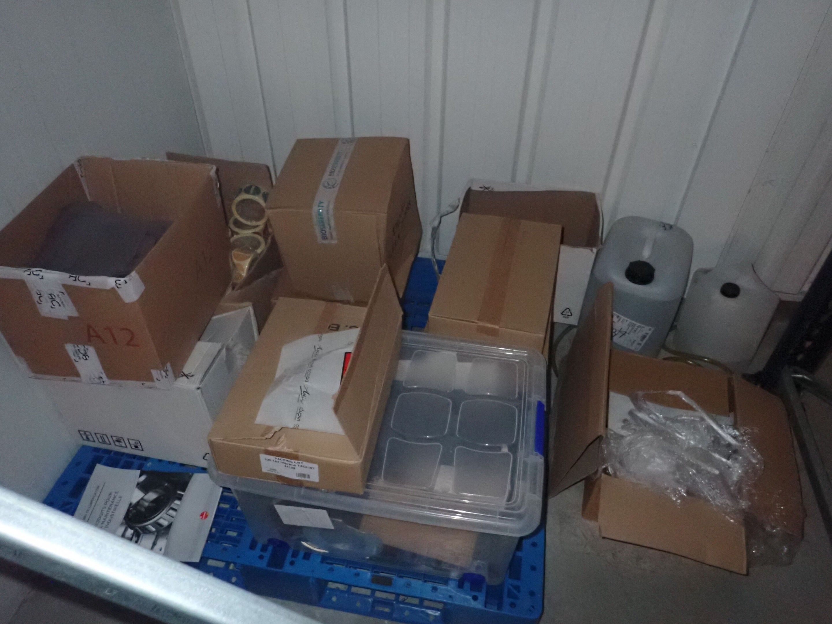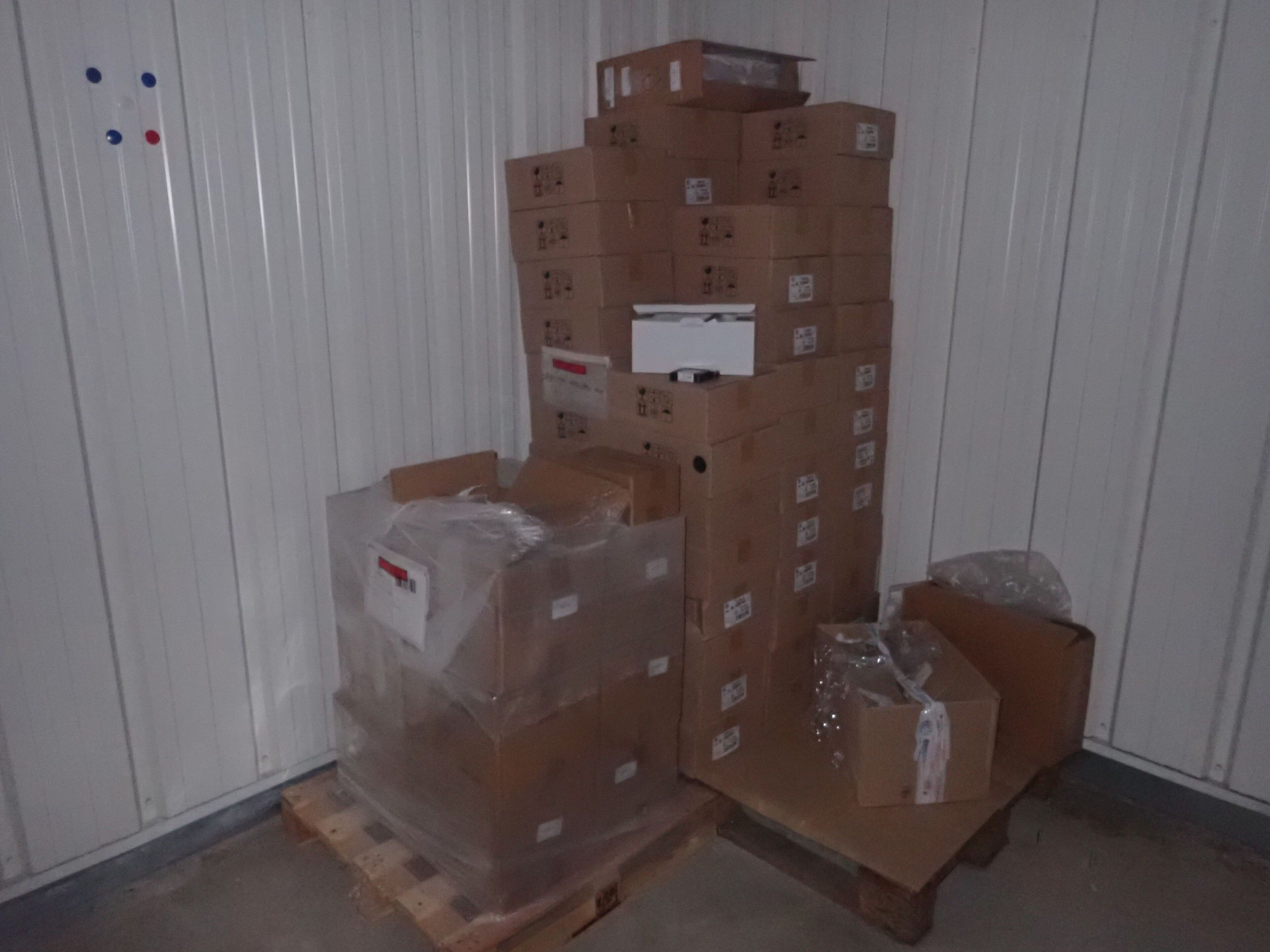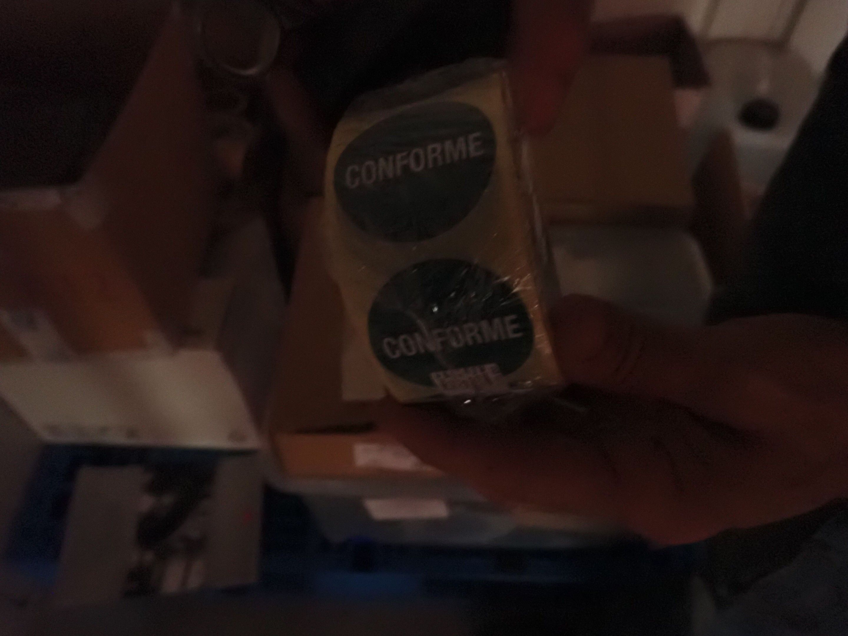 Batch 7 pallets of cartons, labels, cartridges, sachets, gloves, masks, hydroalcoholic gel, forensic batch, Price 50