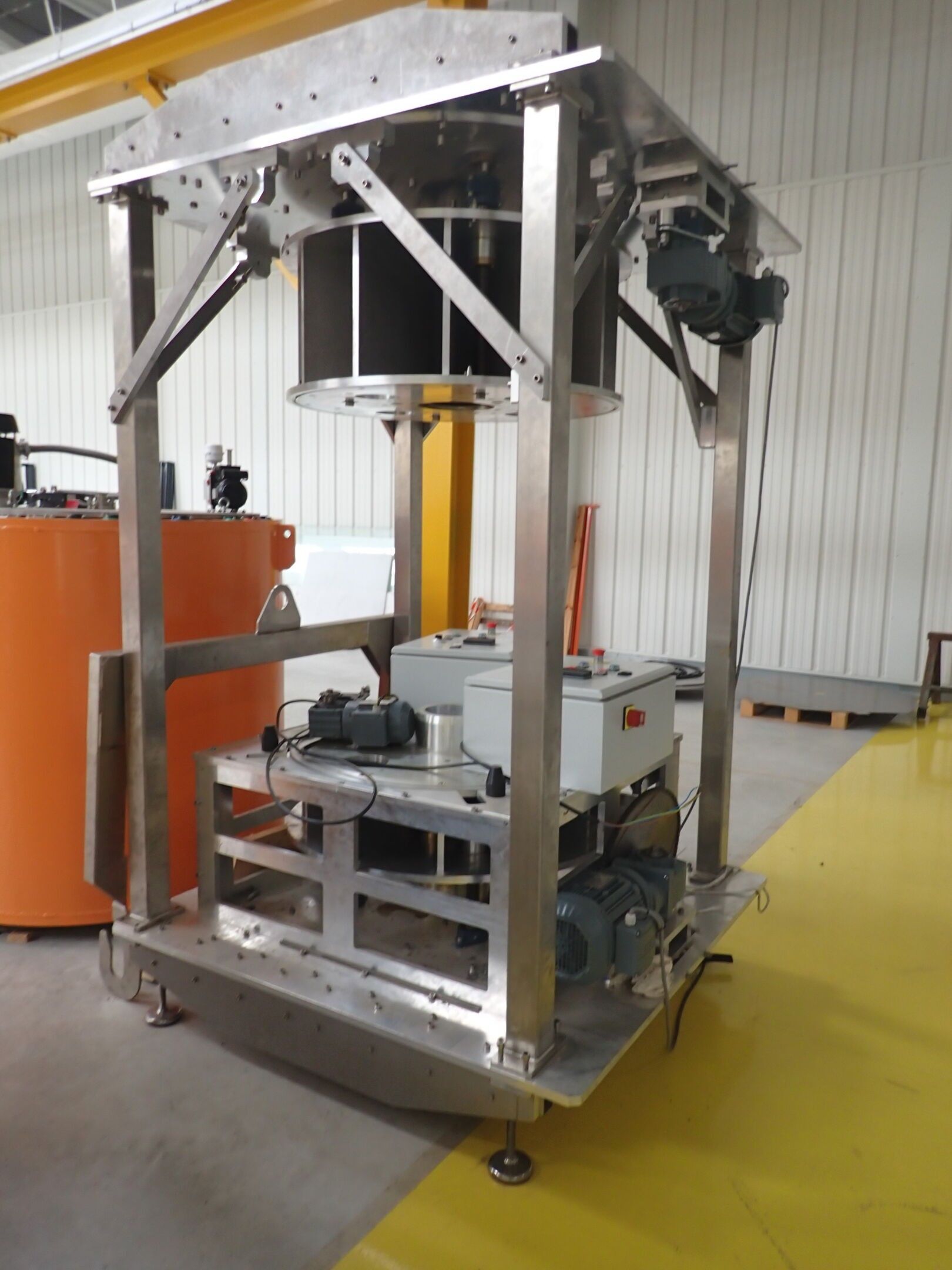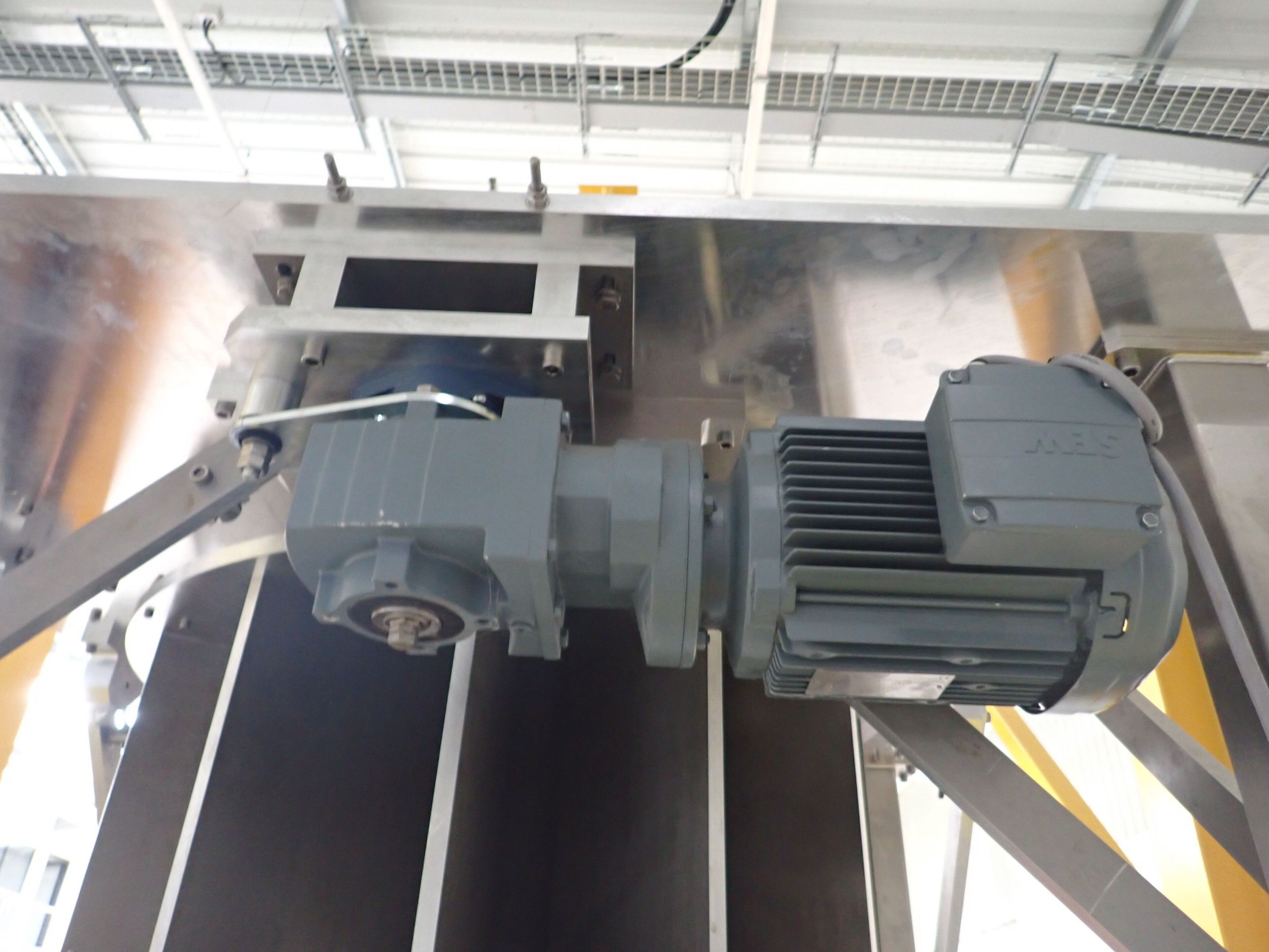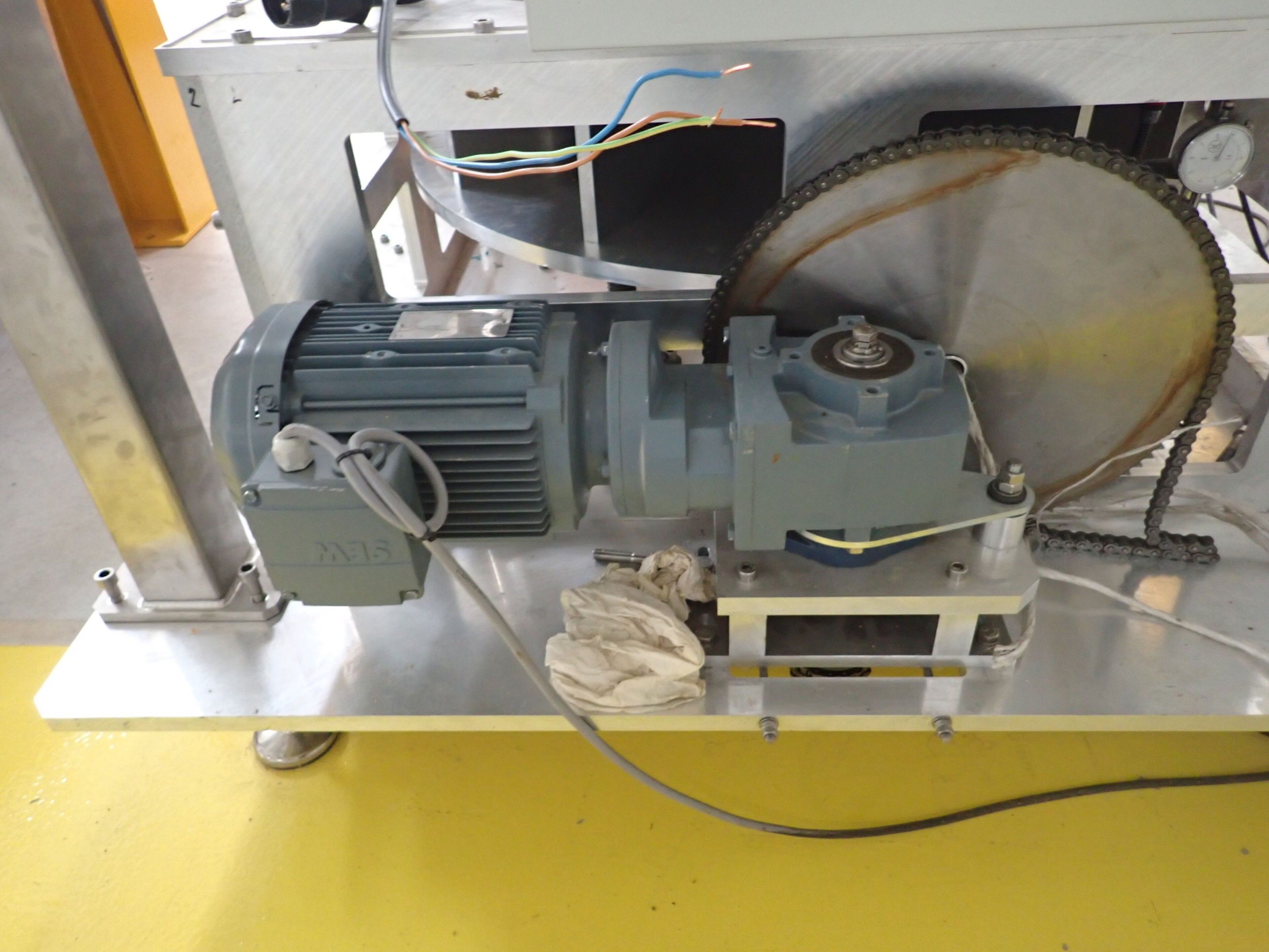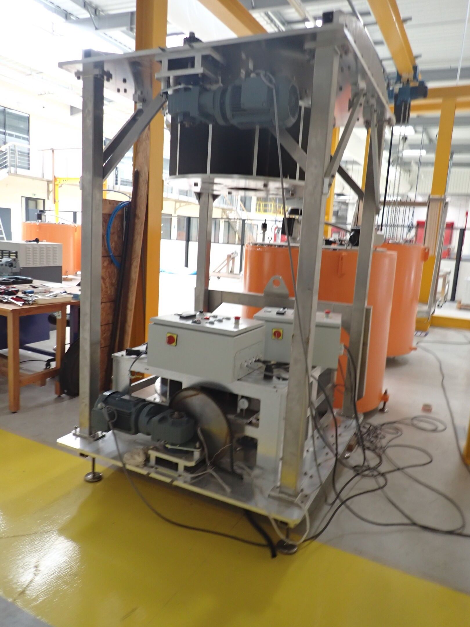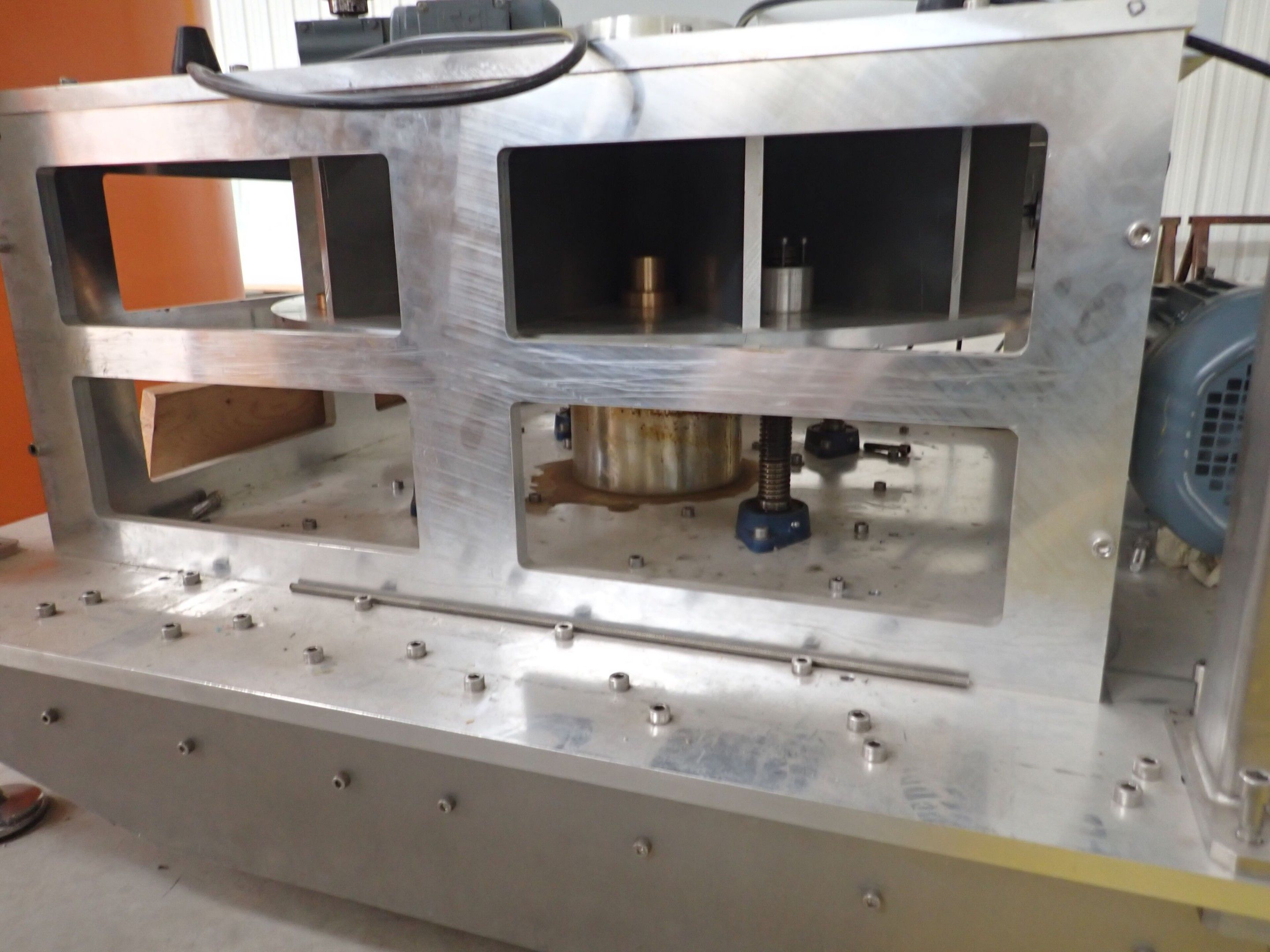 Vertical stainless steel electric press 130x130xh248, 3 Sem motors (1 removed), 2 electrical cabinets and accessories, judicial lot, Bid 200