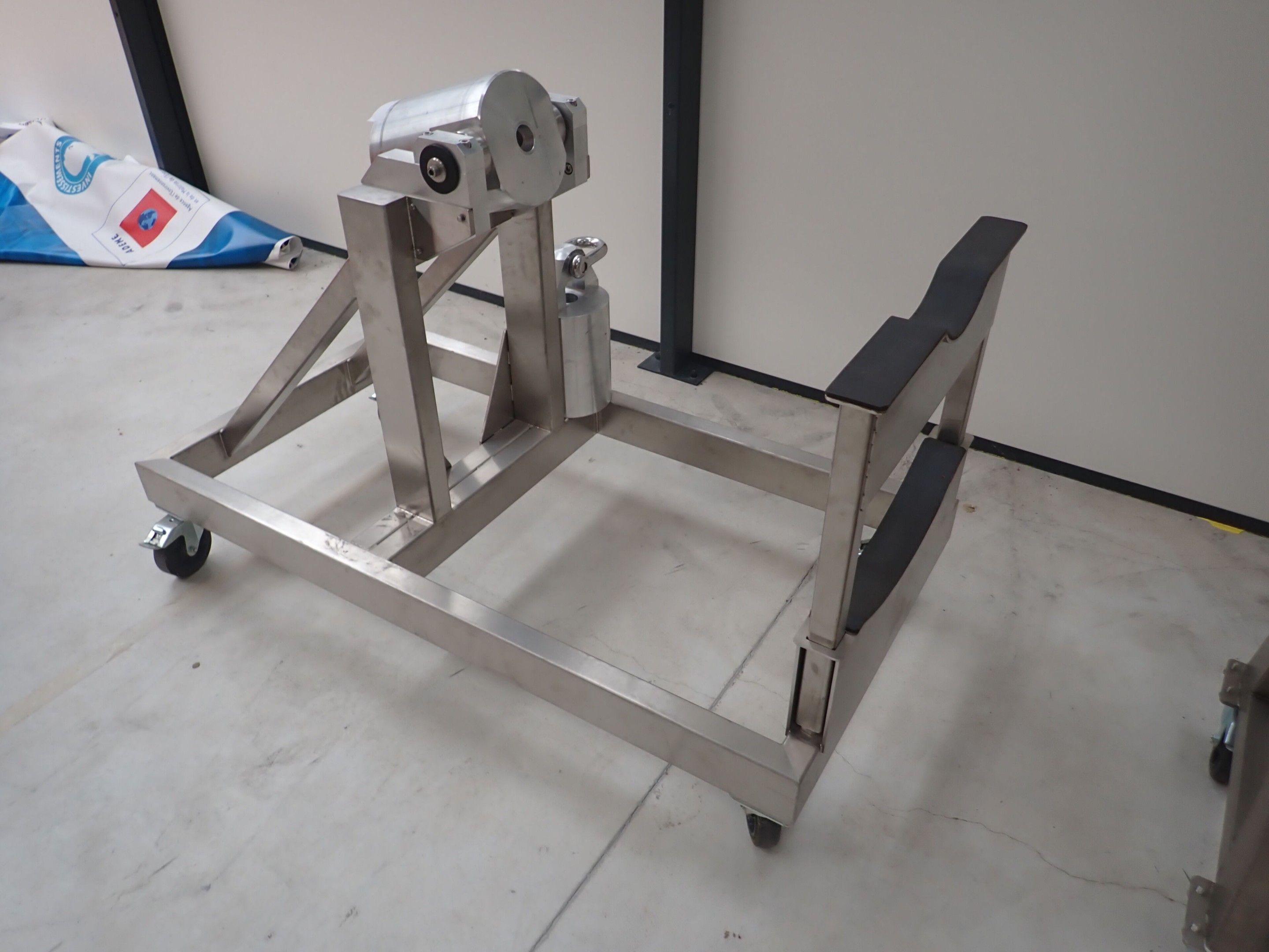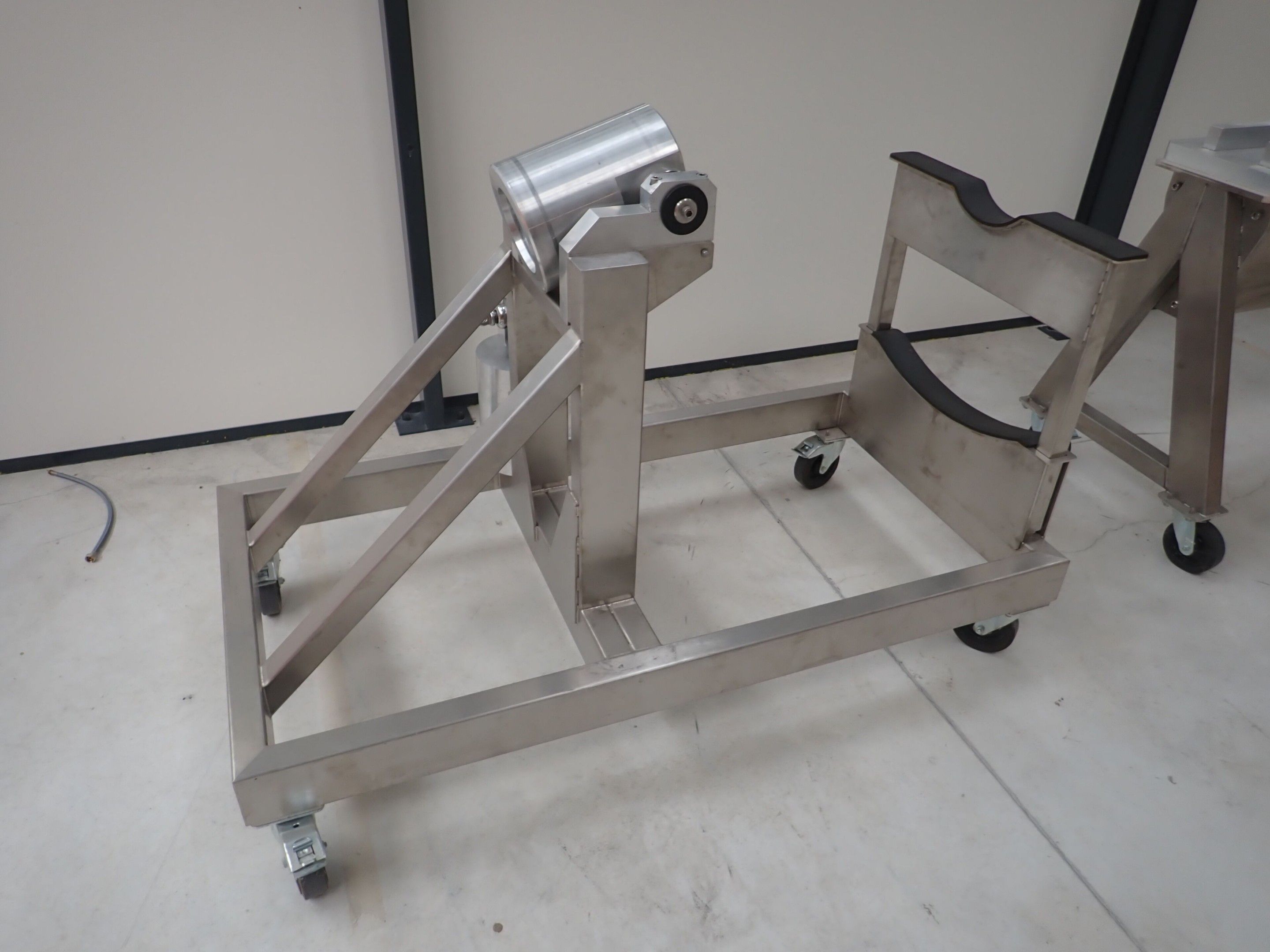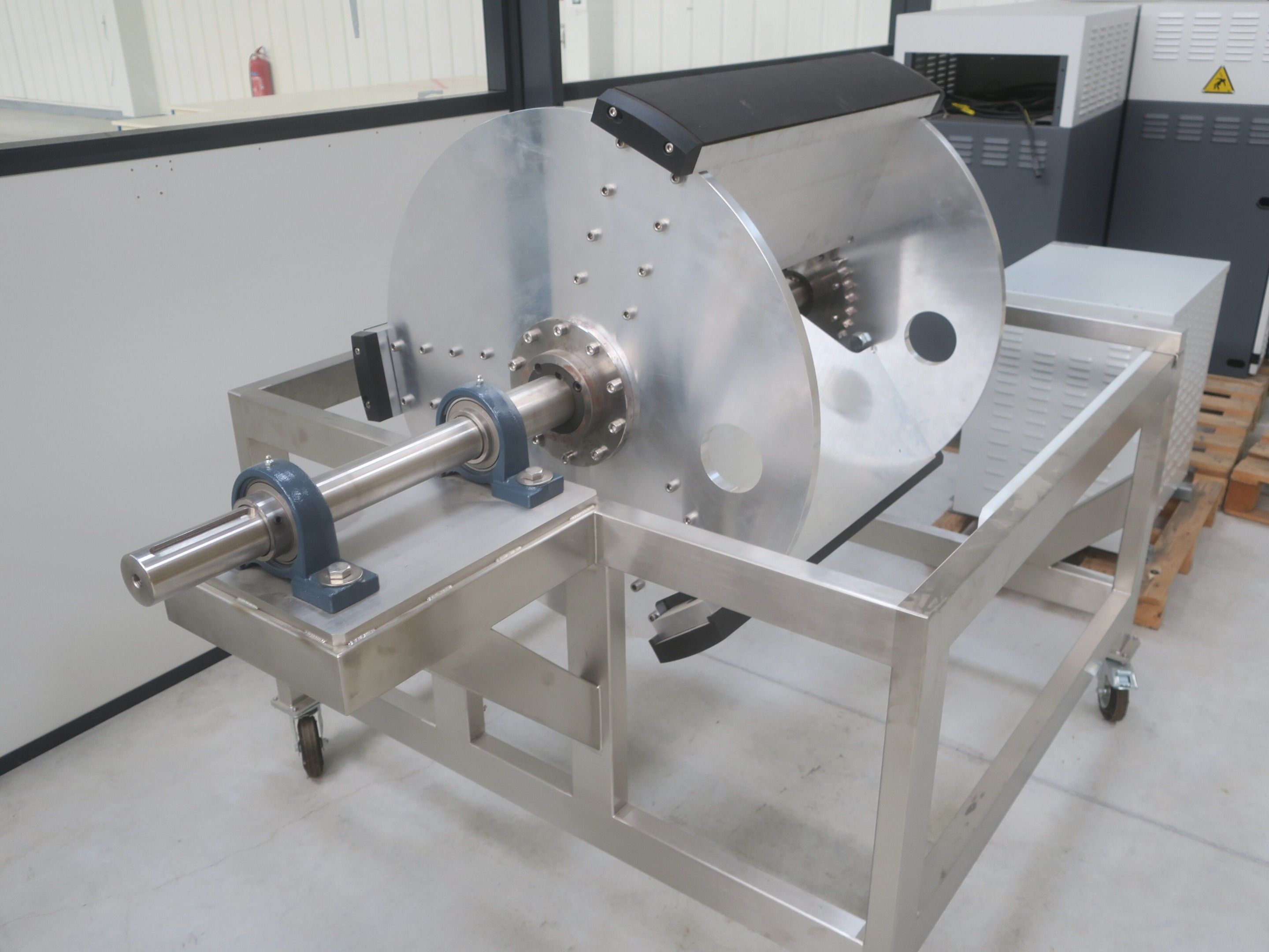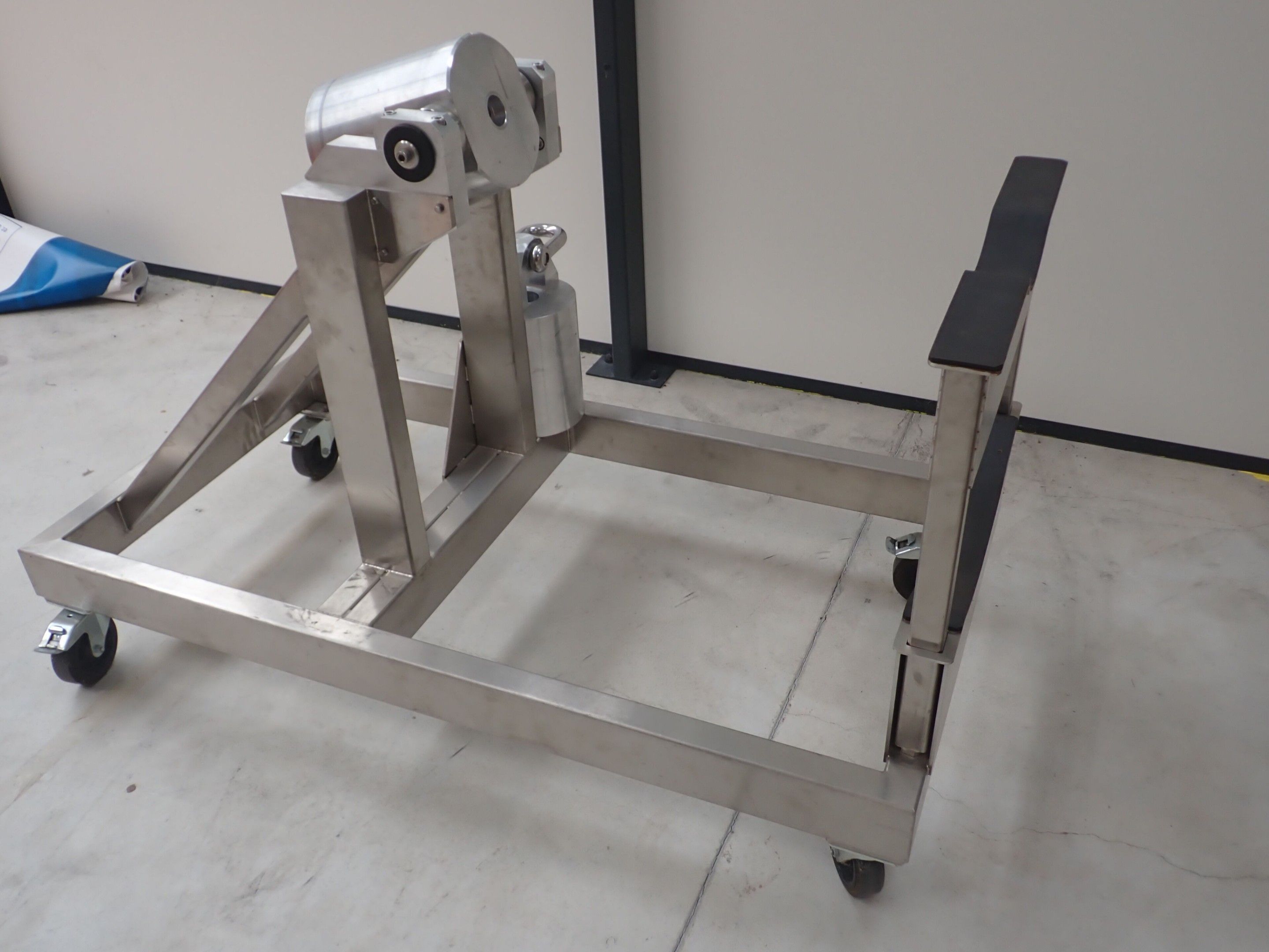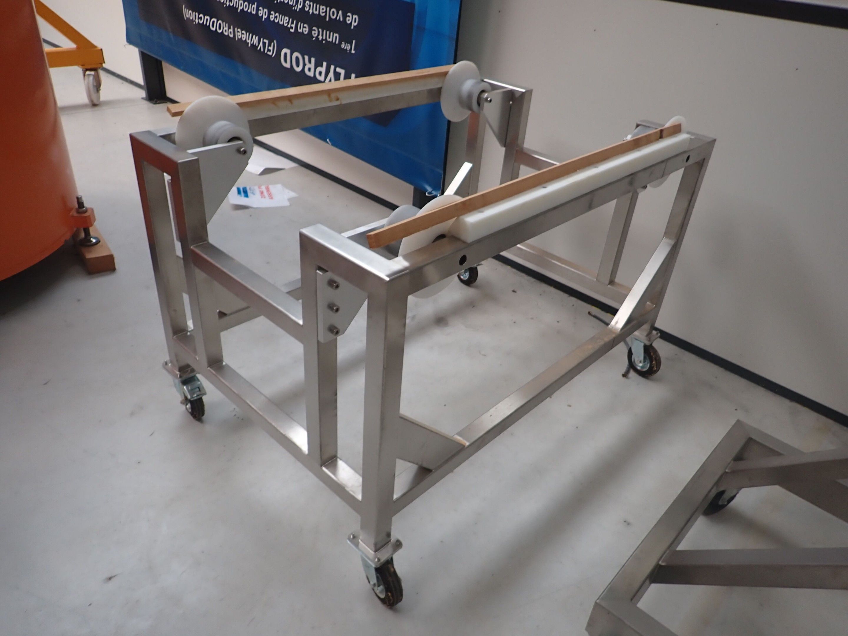 Horizontal mobile hydraulic press ENERPAC Ultima P80 manual with accessories, passage 161cm; mobile stainless steel winder on stainless steel base 178x130xh134, diameter 90, axle 178; mobile stainless steel trolley with reel holder 145x74xh82; trolley with feed table with 4 bearings for stainless steel reels 13x87xh83, mobile stainless steel feed table for winder; accessories, legal lot, Price 300