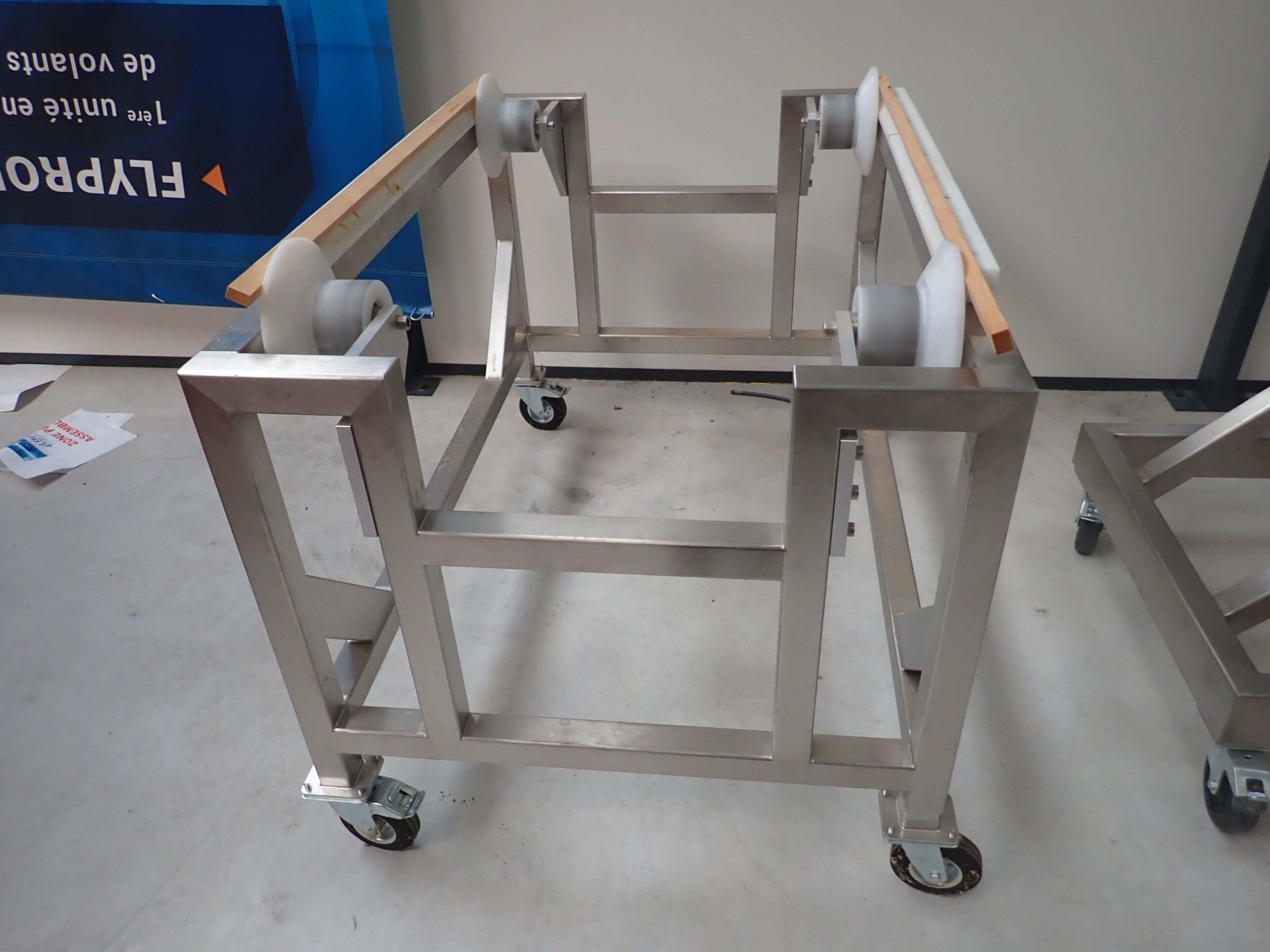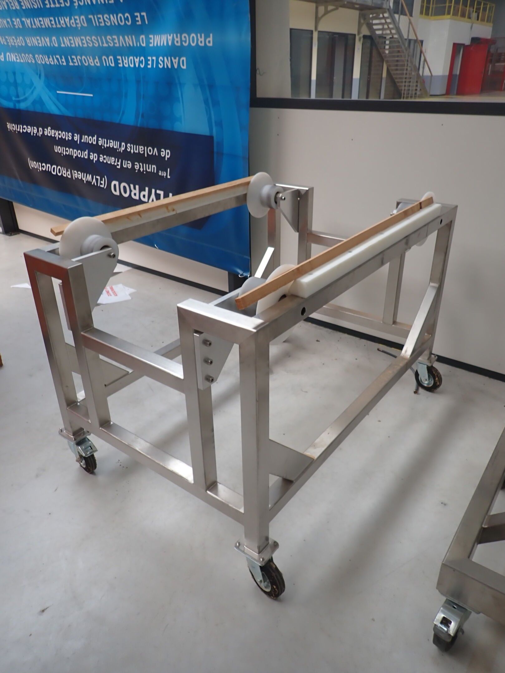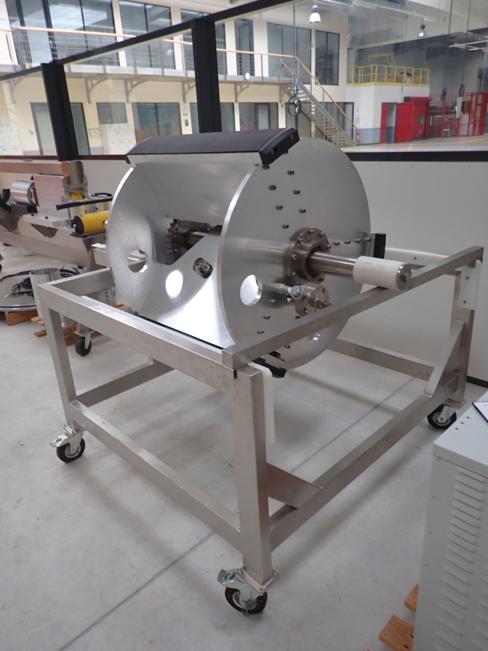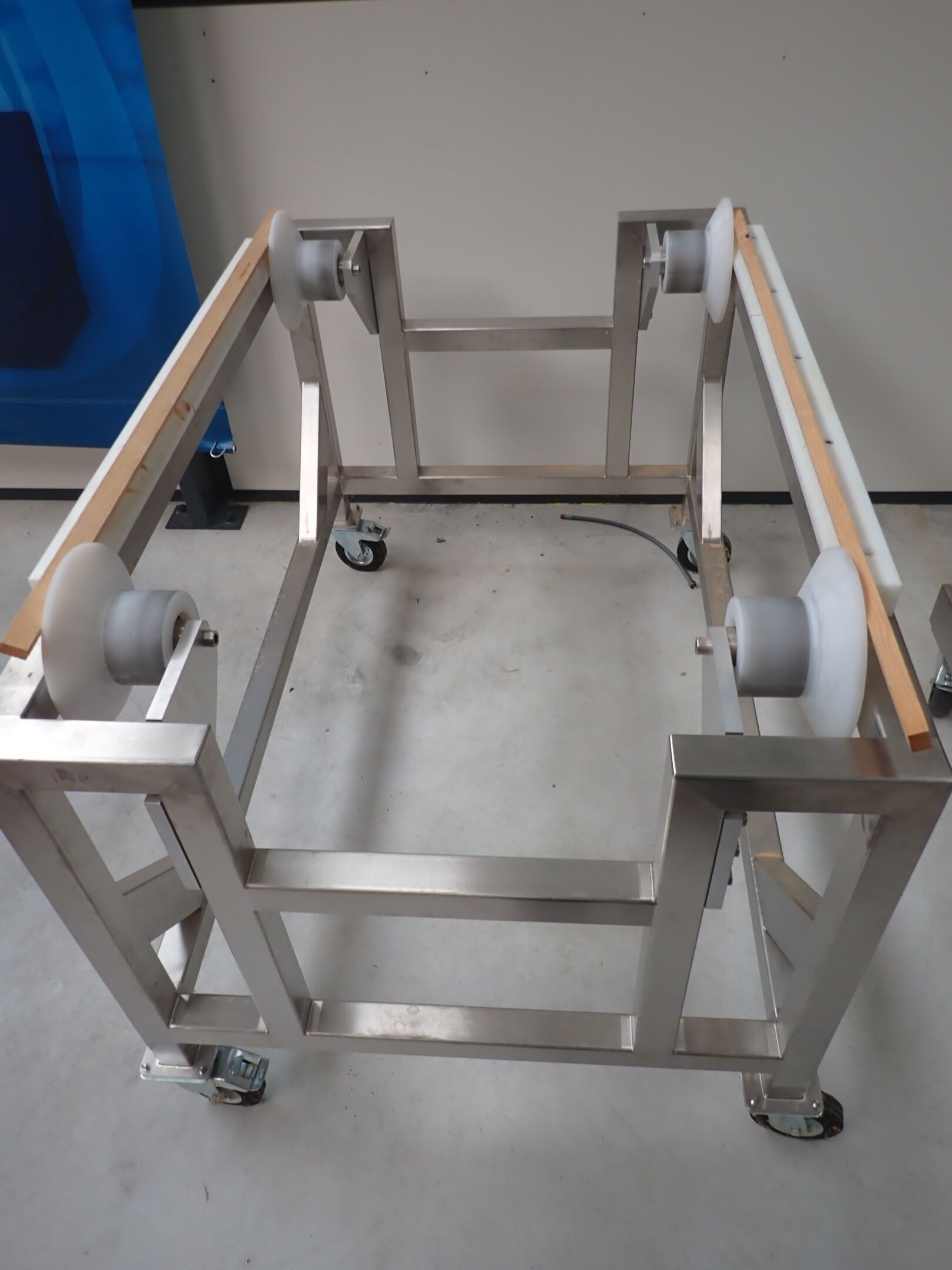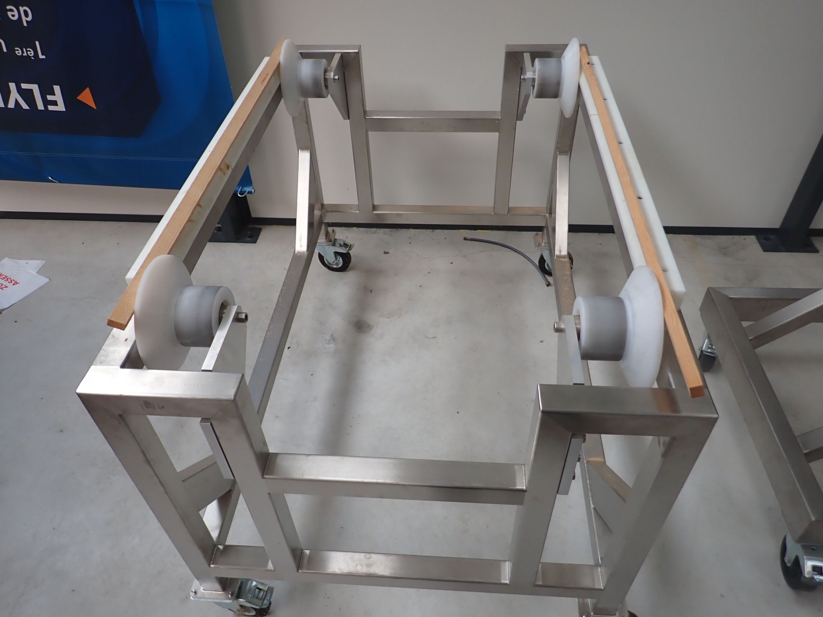 Horizontal mobile hydraulic press ENERPAC Ultima P80 manual with accessories, passage 161cm; mobile stainless steel winder on stainless steel base 178x130xh134, diameter 90, axle 178; mobile stainless steel trolley with reel holder 145x74xh82; trolley with feed table with 4 bearings for stainless steel reels 13x87xh83, mobile stainless steel feed table for winder; accessories, legal lot, Price 300