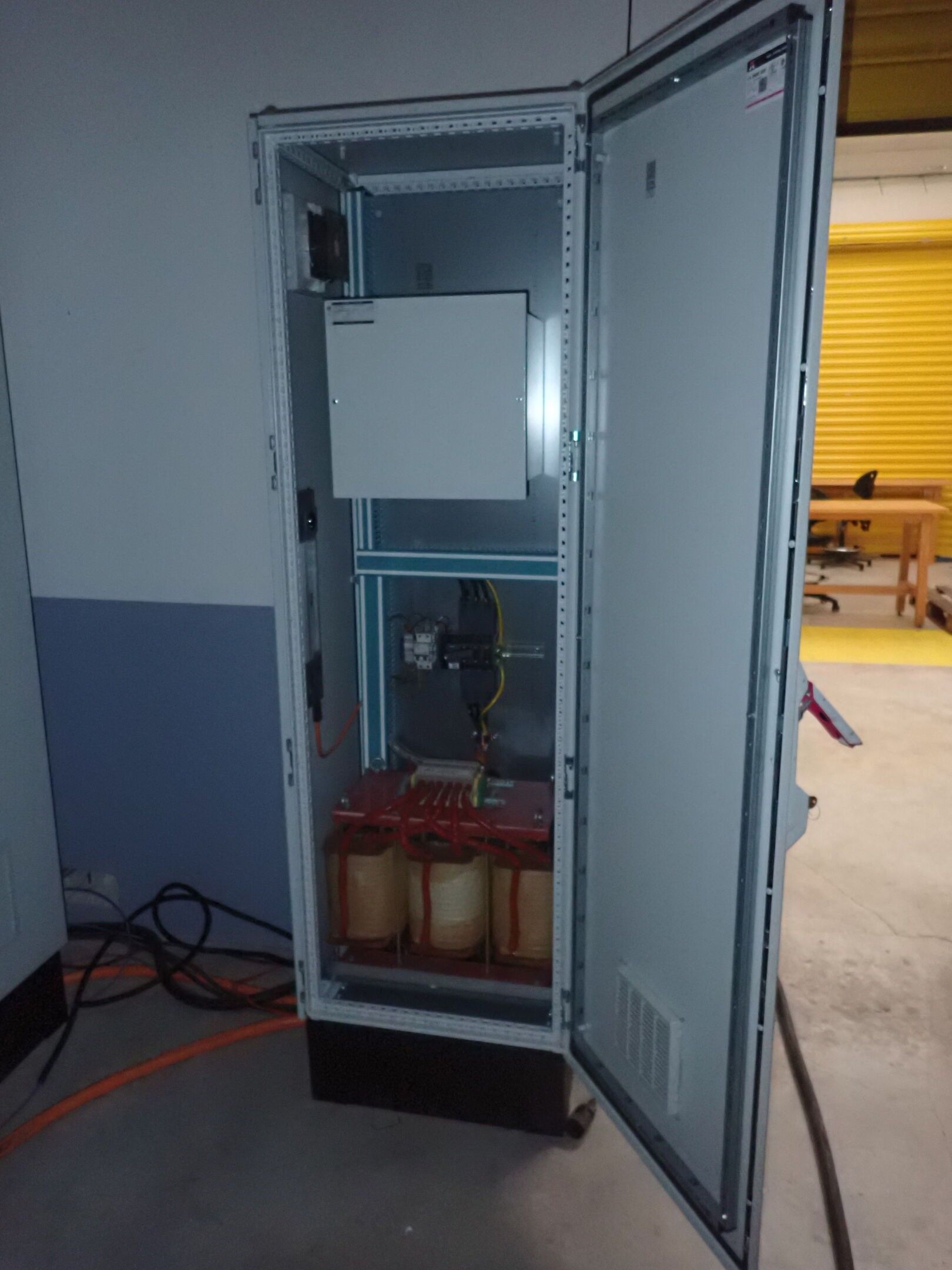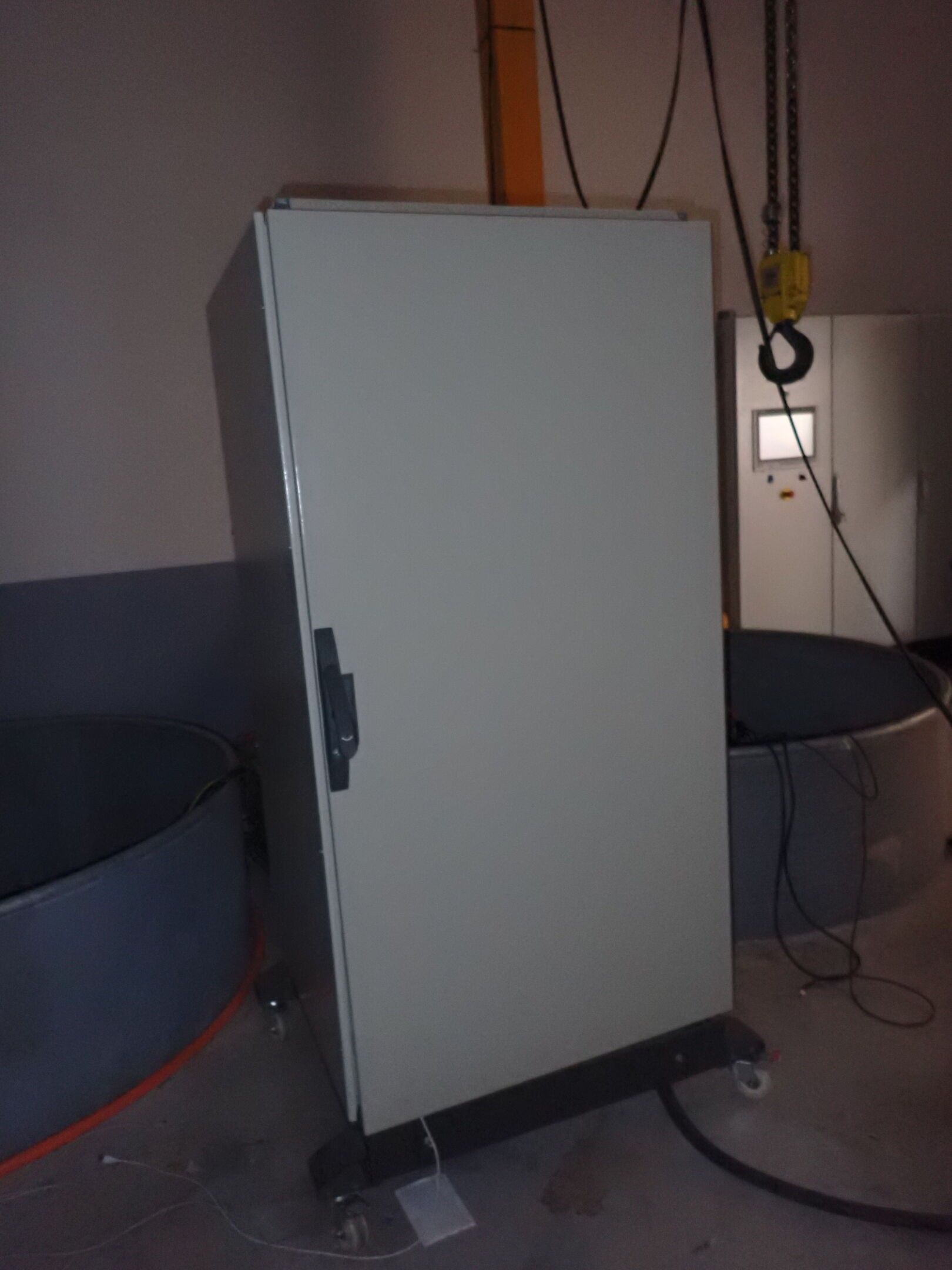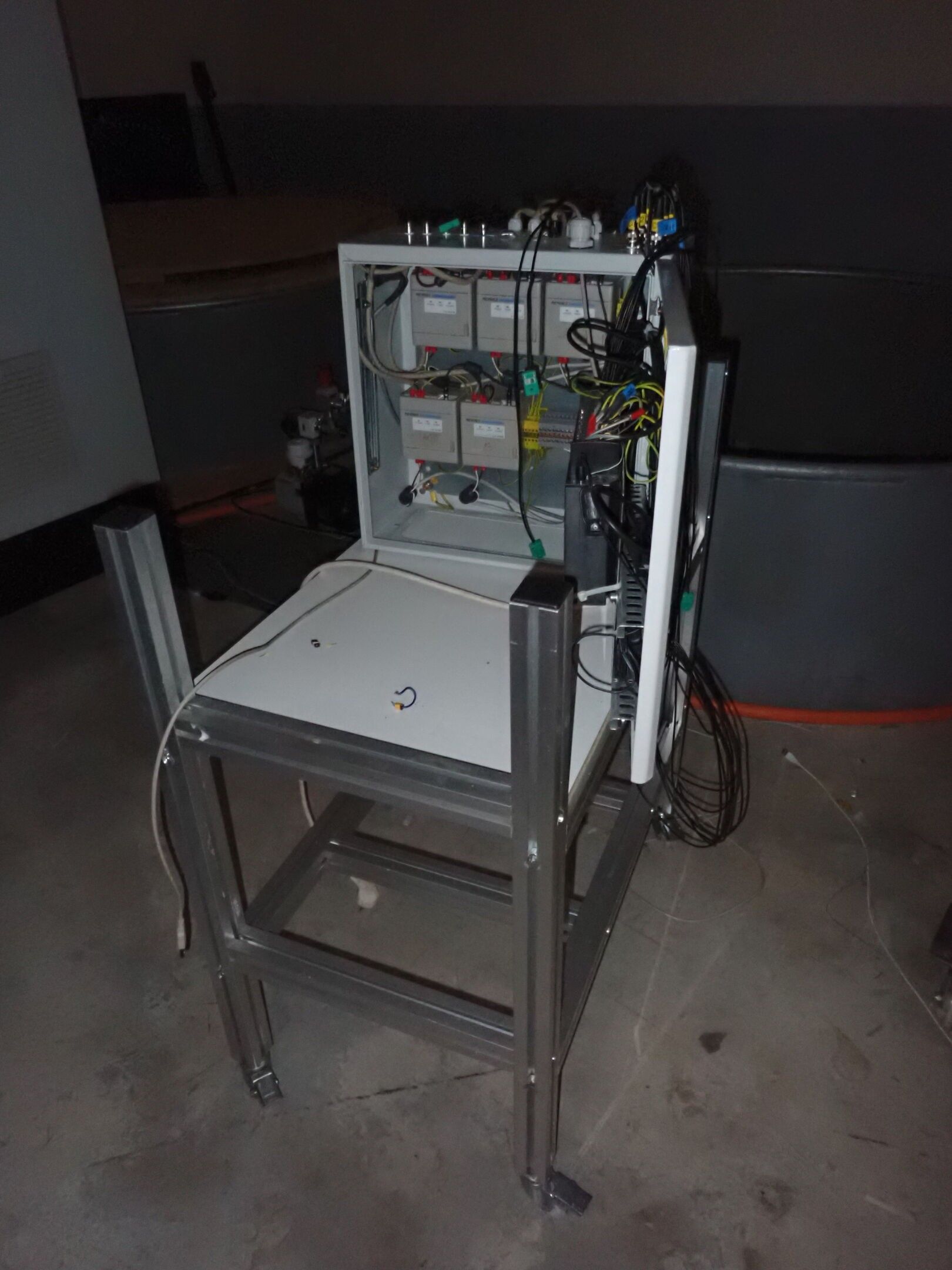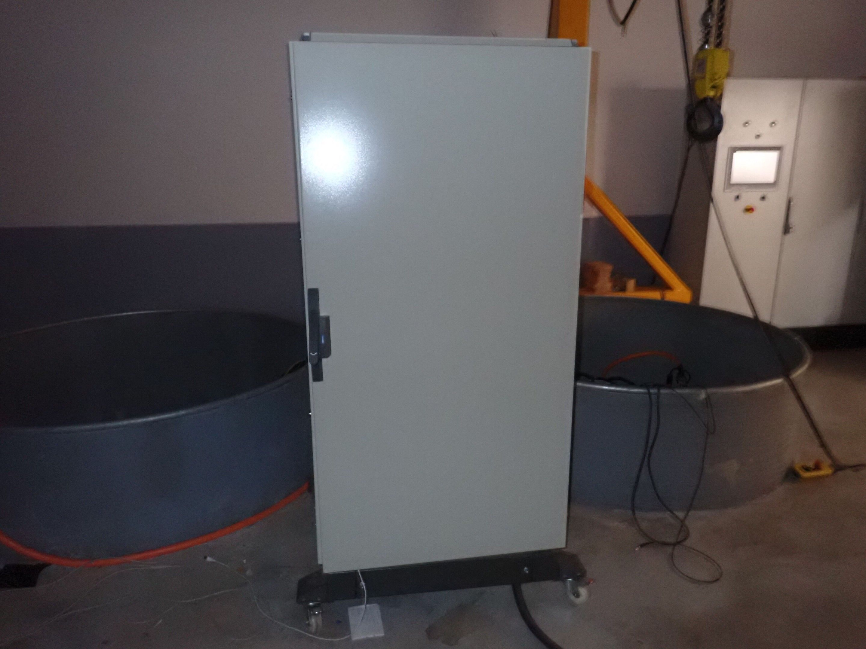 4 Electrical load and control cabinets: 2 SIEMENS SIMATIX HMI touch screen distribution cabinets 180x55xh200 and 180x82xh258 with key; Mobile loading cabinet with box control on 2-level trolley 80x80xh183, Rital electrical cabinet 62x57xh200 with key and 3 transformers and hydraulic unit, all to be removed and secured by a professional, legal lot, Price 400