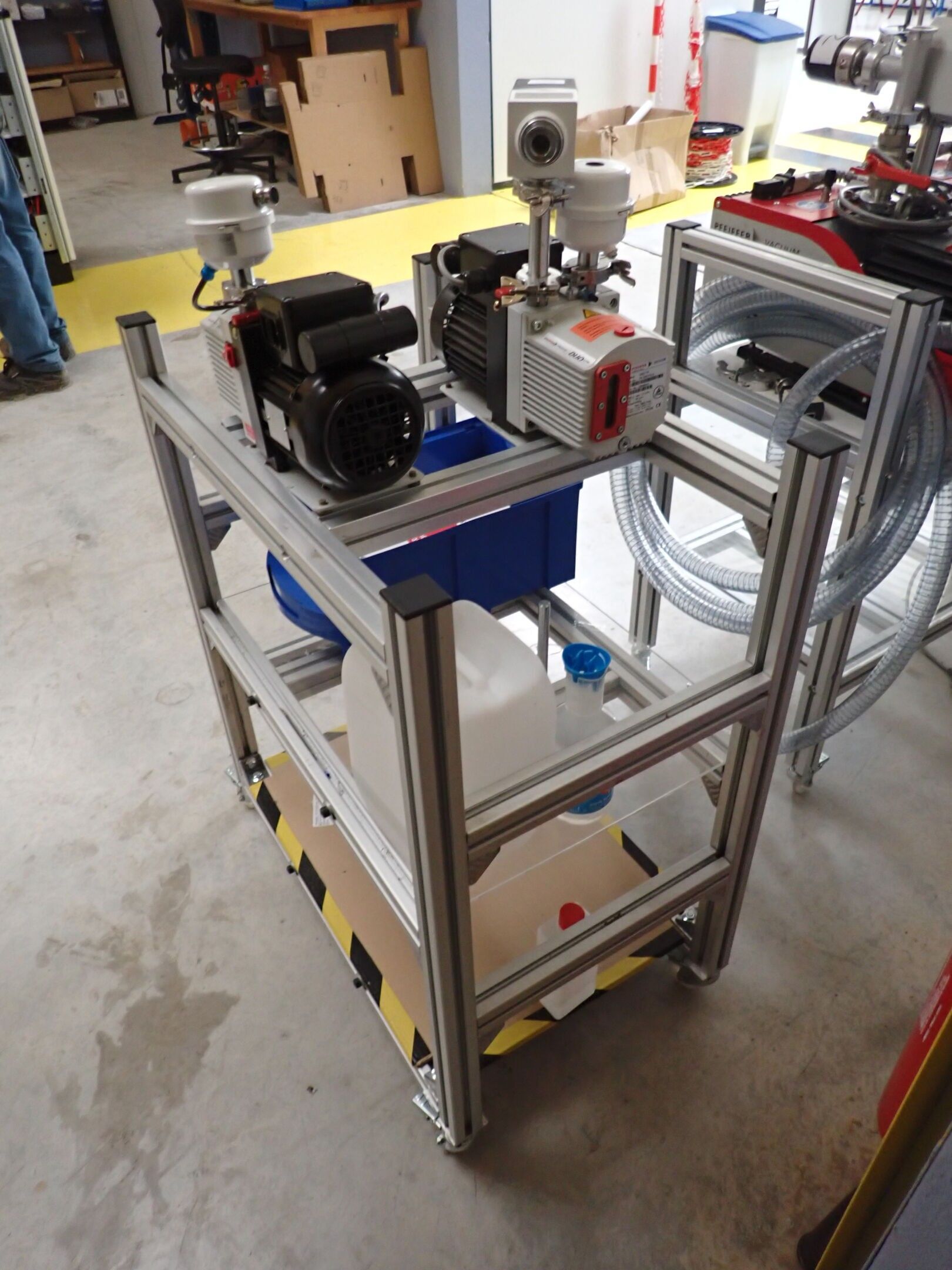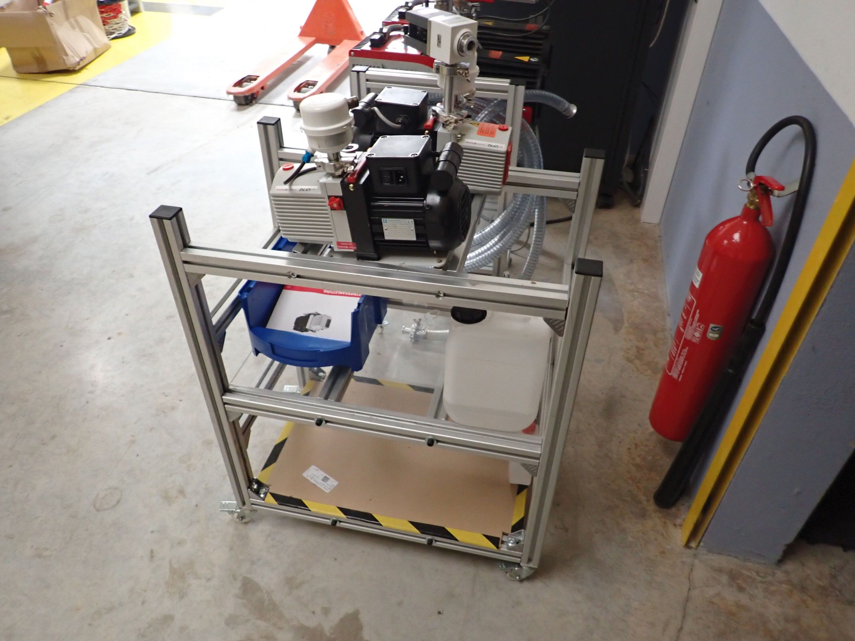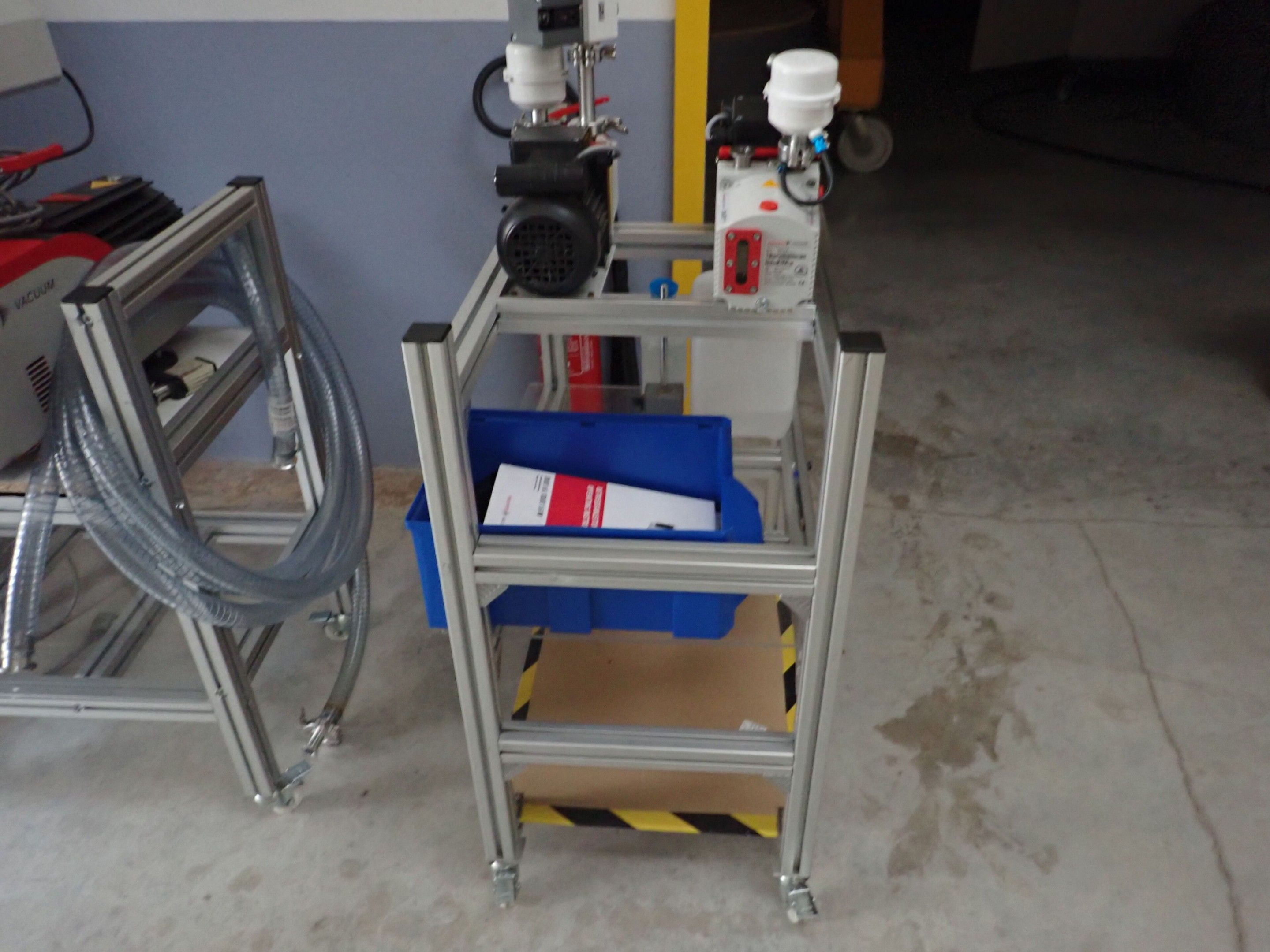 2 vacuum pumps PFEIFFER vacuum DUO1.6 on trolley 3 levels, judicial lot, Price 60