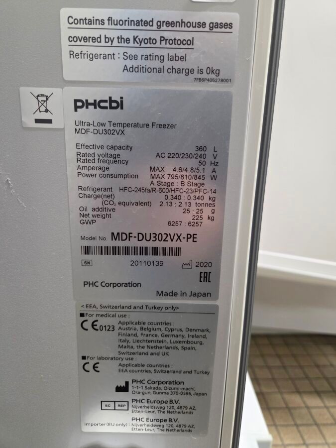 PHCBI MDF-DU302VX Freezer - Minus 80 PHCBI Twin Guard with probe and key. 360L. 2020. D: 184 x 70 x 90 cm (284) (LABORATORY 808)