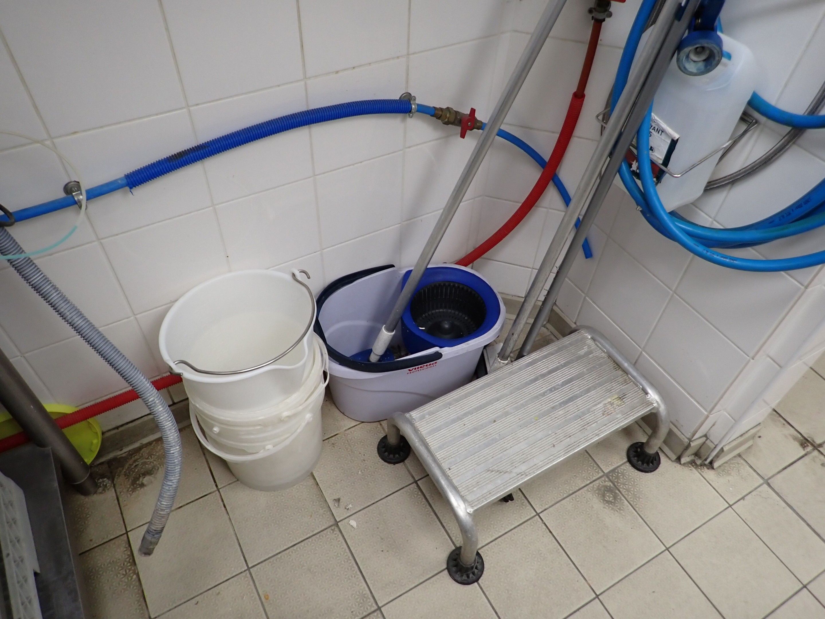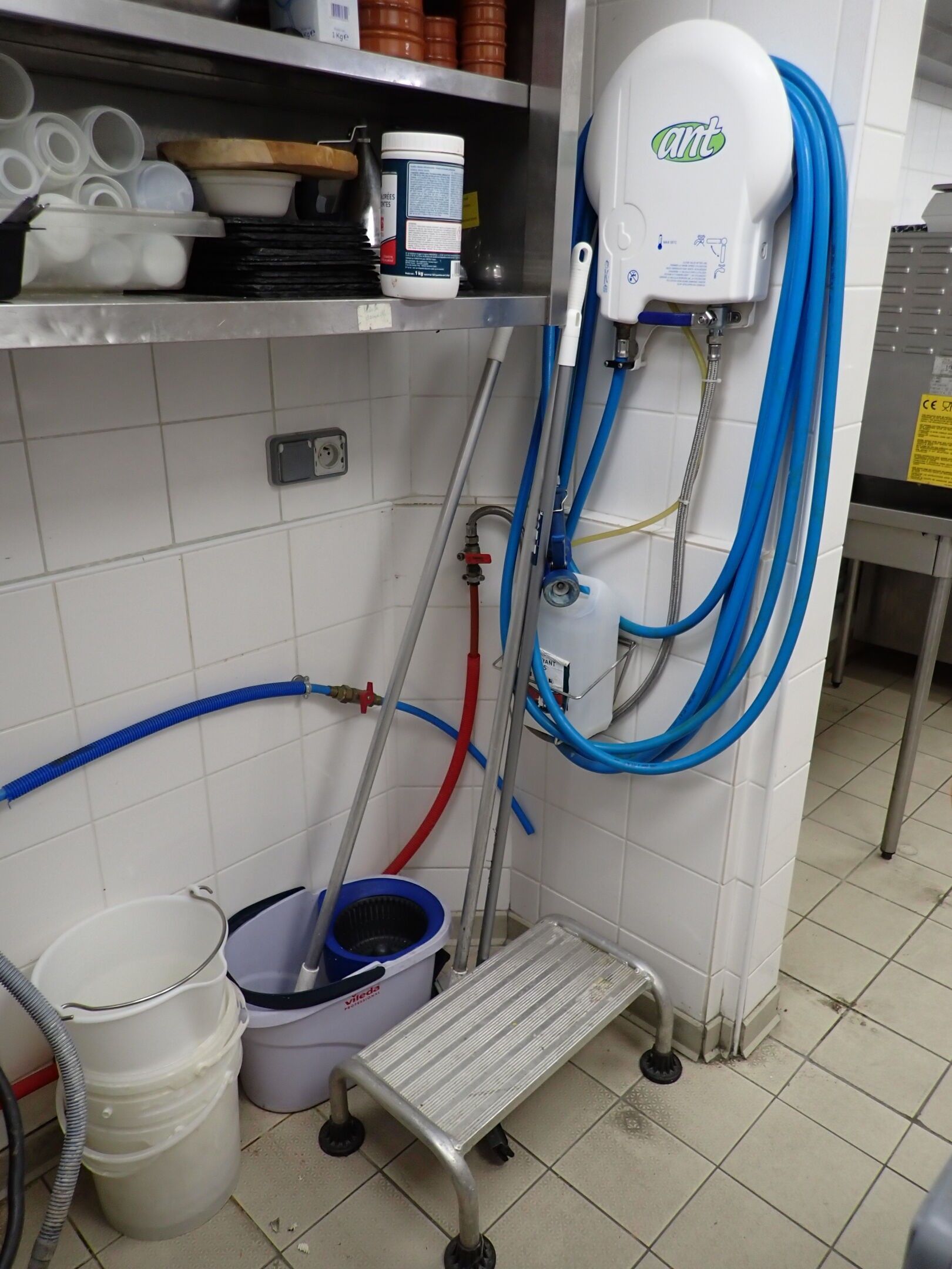 ANT wall-mounted shower with bucket, brush, squeegee and footboard, including plugs, Judicial lot, Price 60