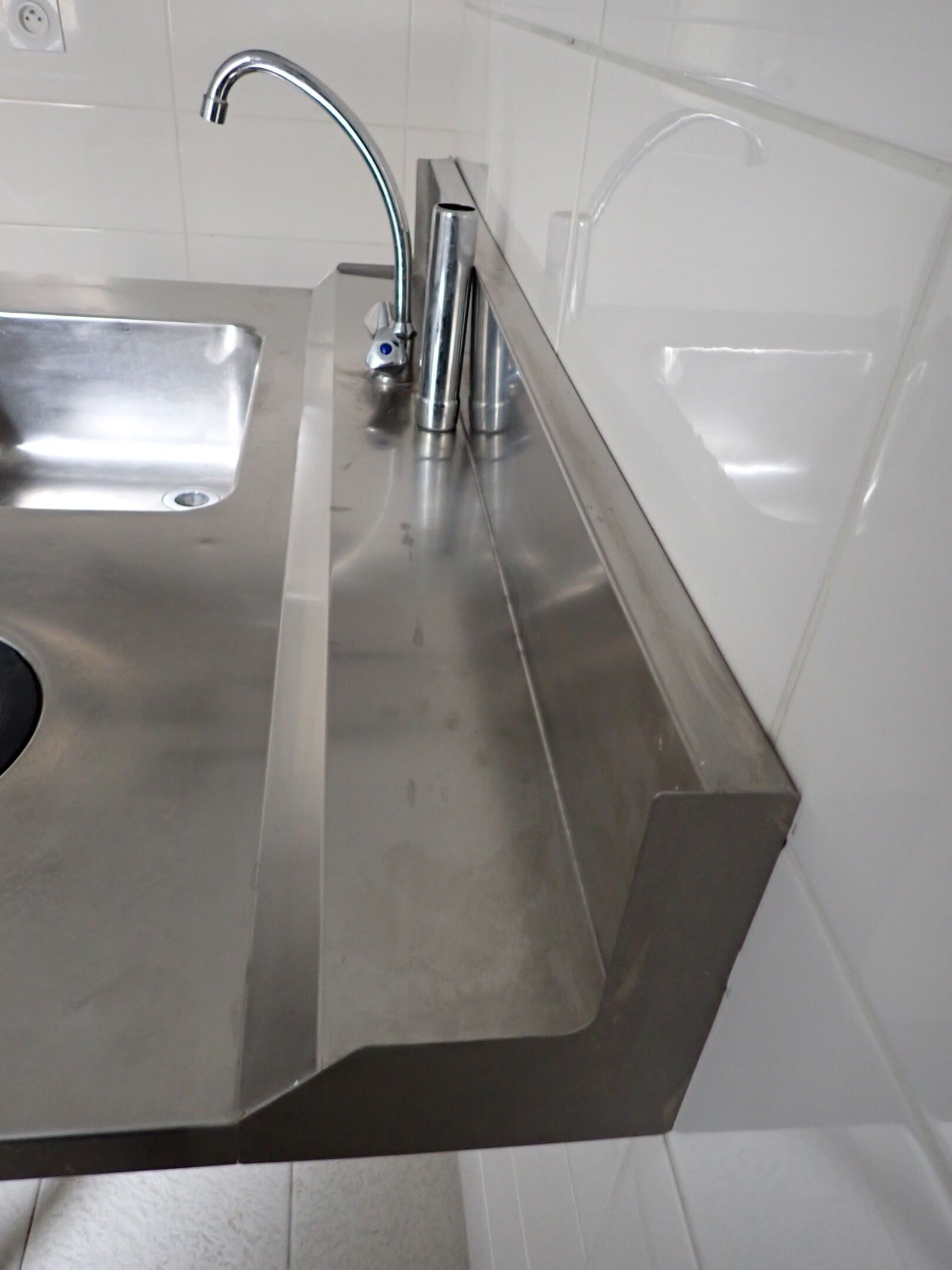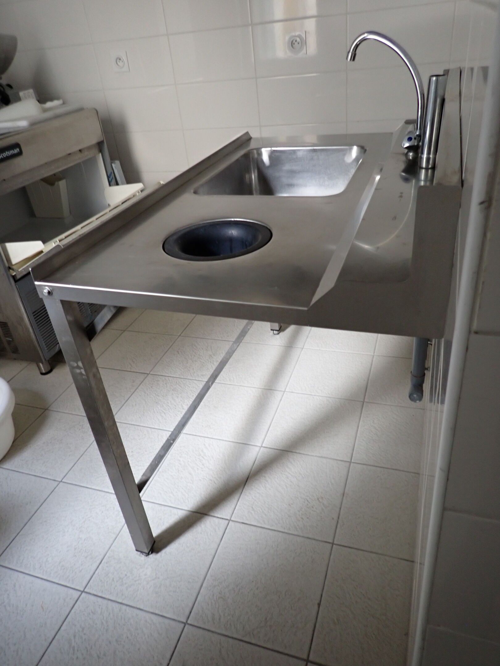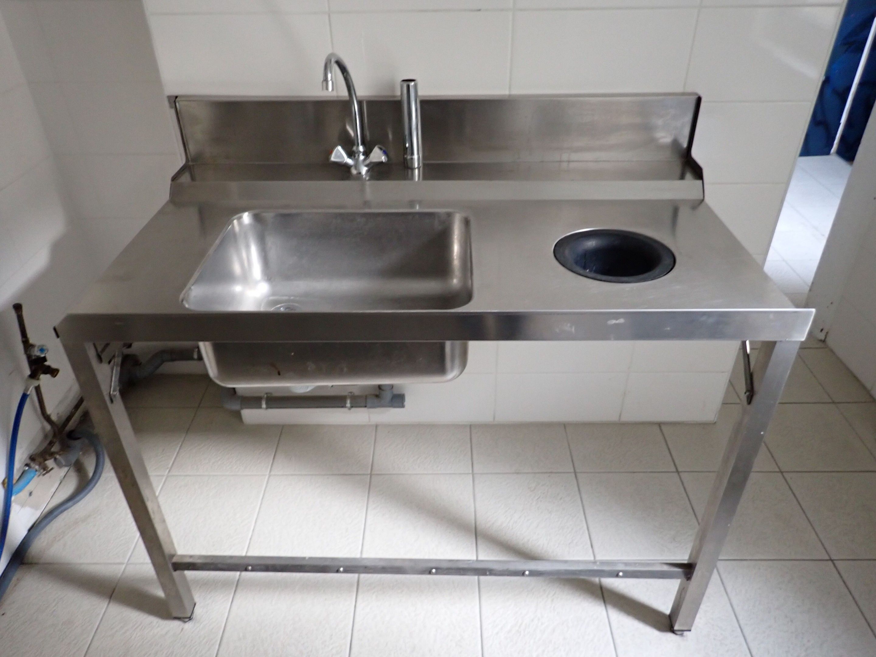 Sink 1 bowl with waste hole in stainless steel wall bracket 120.5x70xh104, to be dismantled for removal, located on the 1st floor, stairs, Judicial lot, Price 120