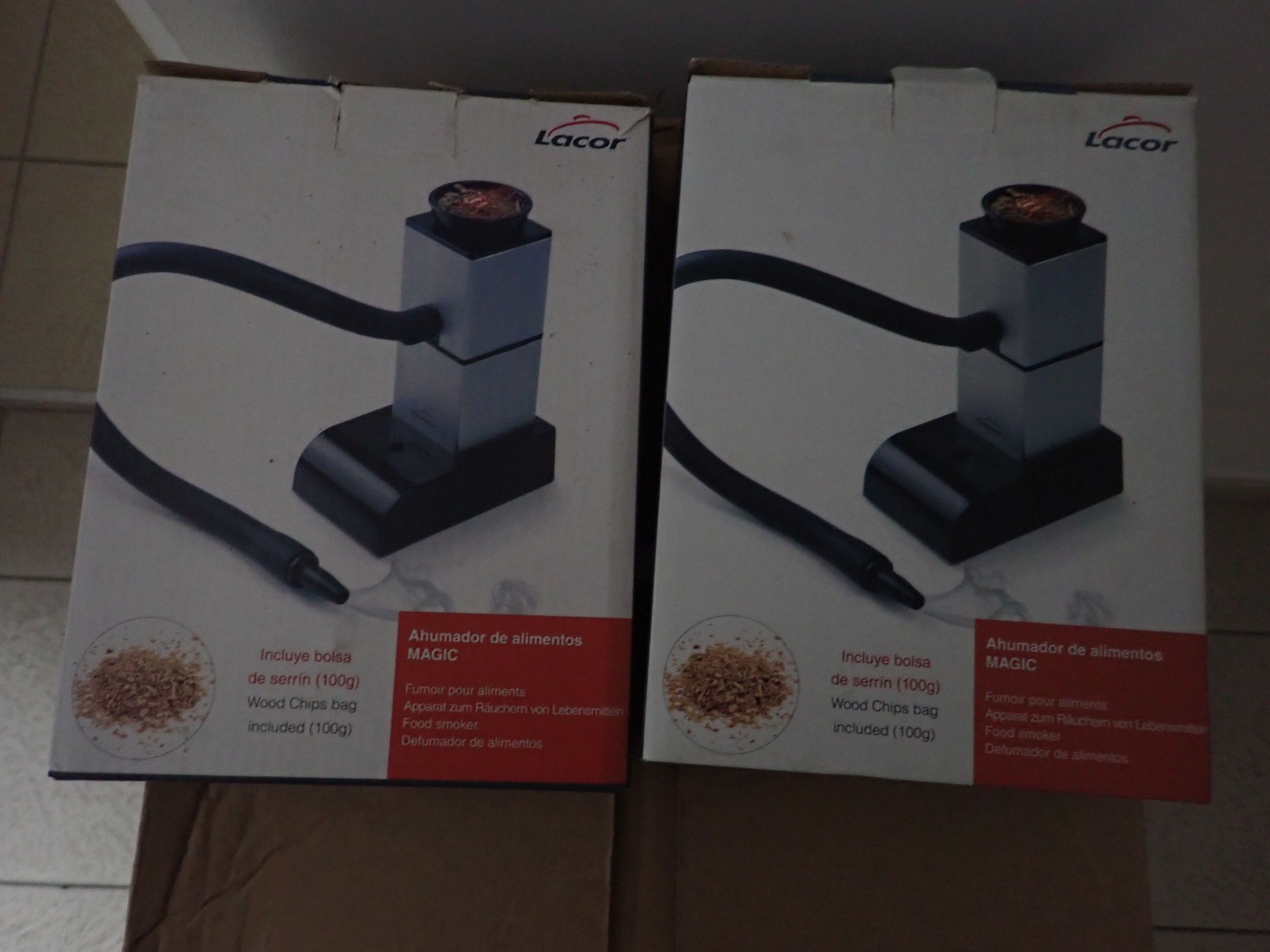 2 LACOR portable food smokers with 3 LACOR smoking bells in cartons, Judicial lot, Starting price 30