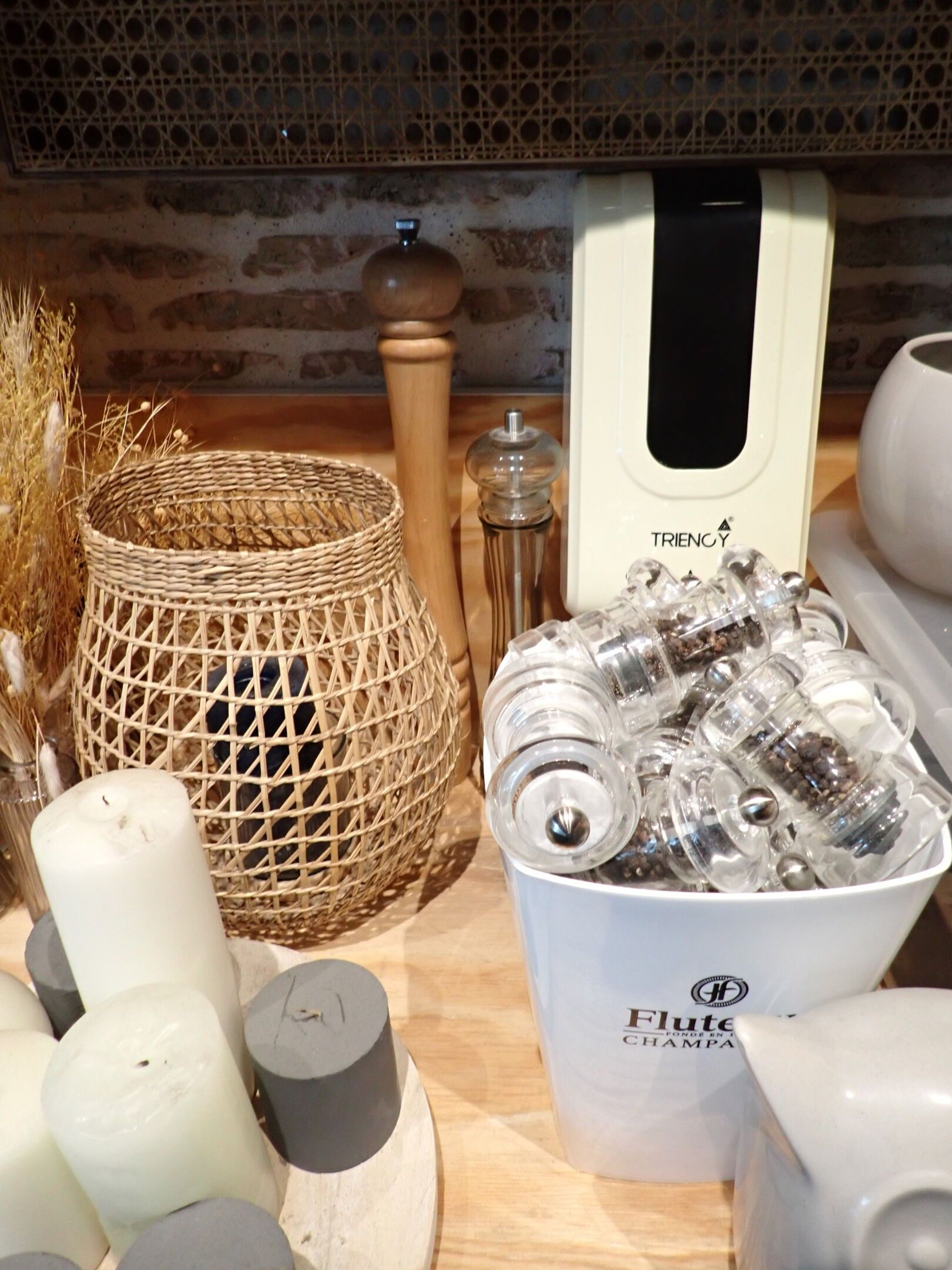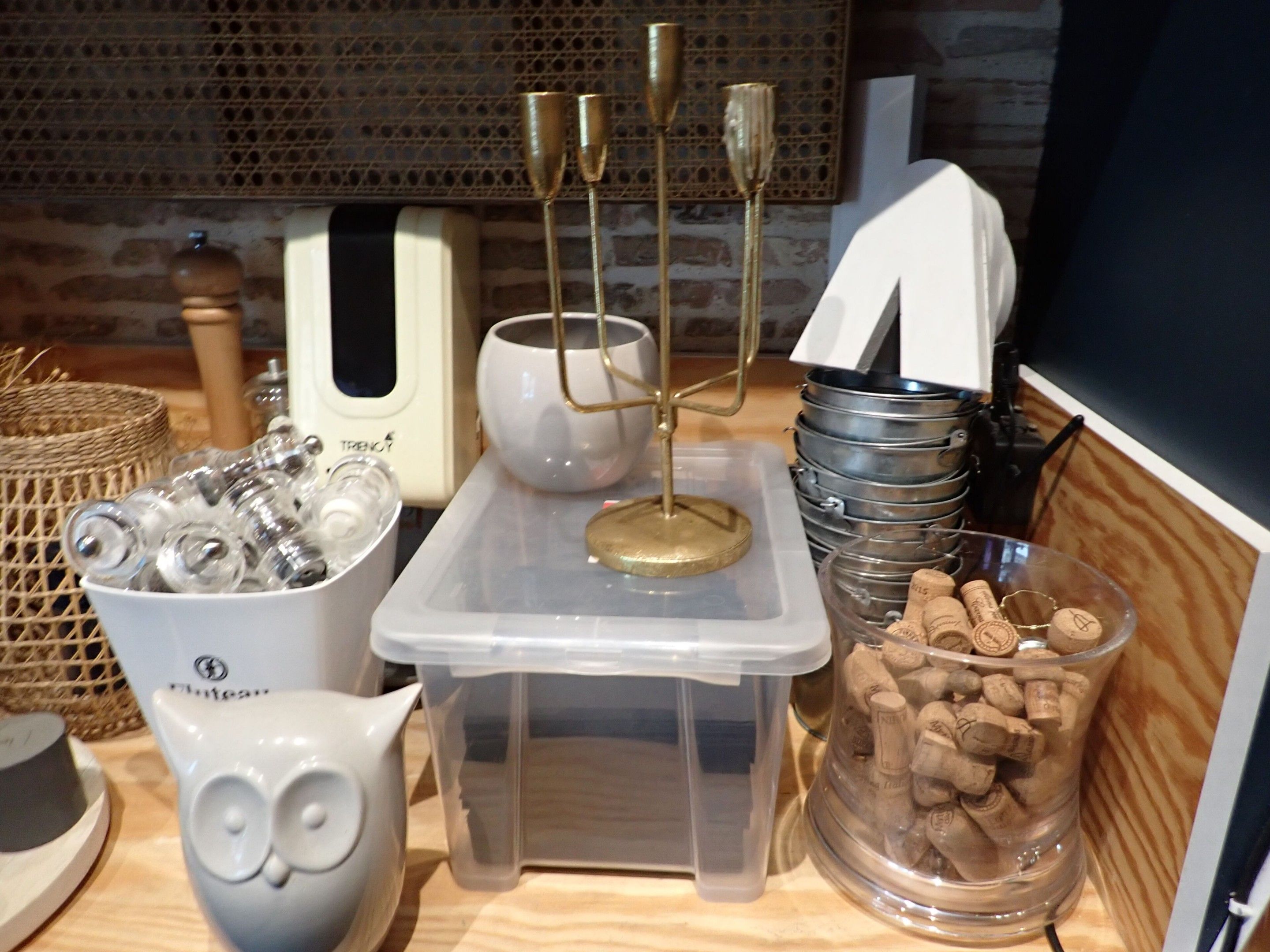 Glass ashtrays, salt bowls, pepper bowls, metal bread baskets, ice bucket, FLUTEAU, vases with stoppers, storage of 3 cane vases for menus, paper napkins in Plexiglas box, small decorations, garland, hydroalcoholic gel dispenser, Judicial lot, Price 30