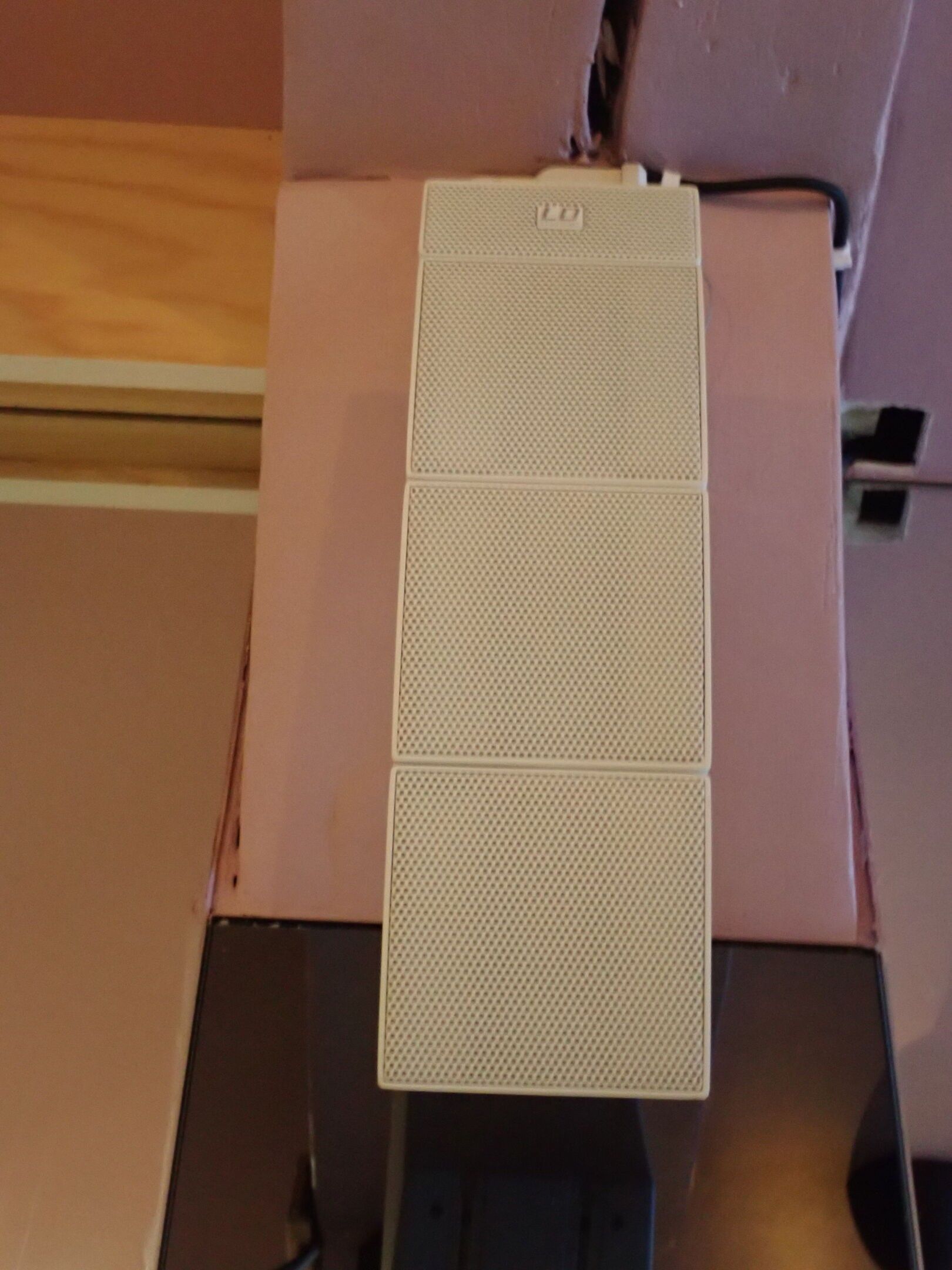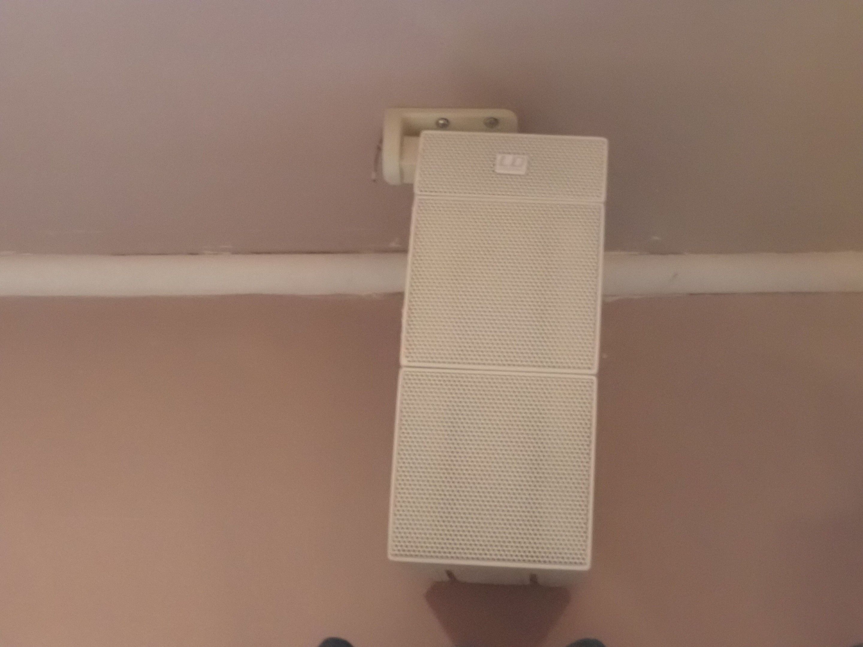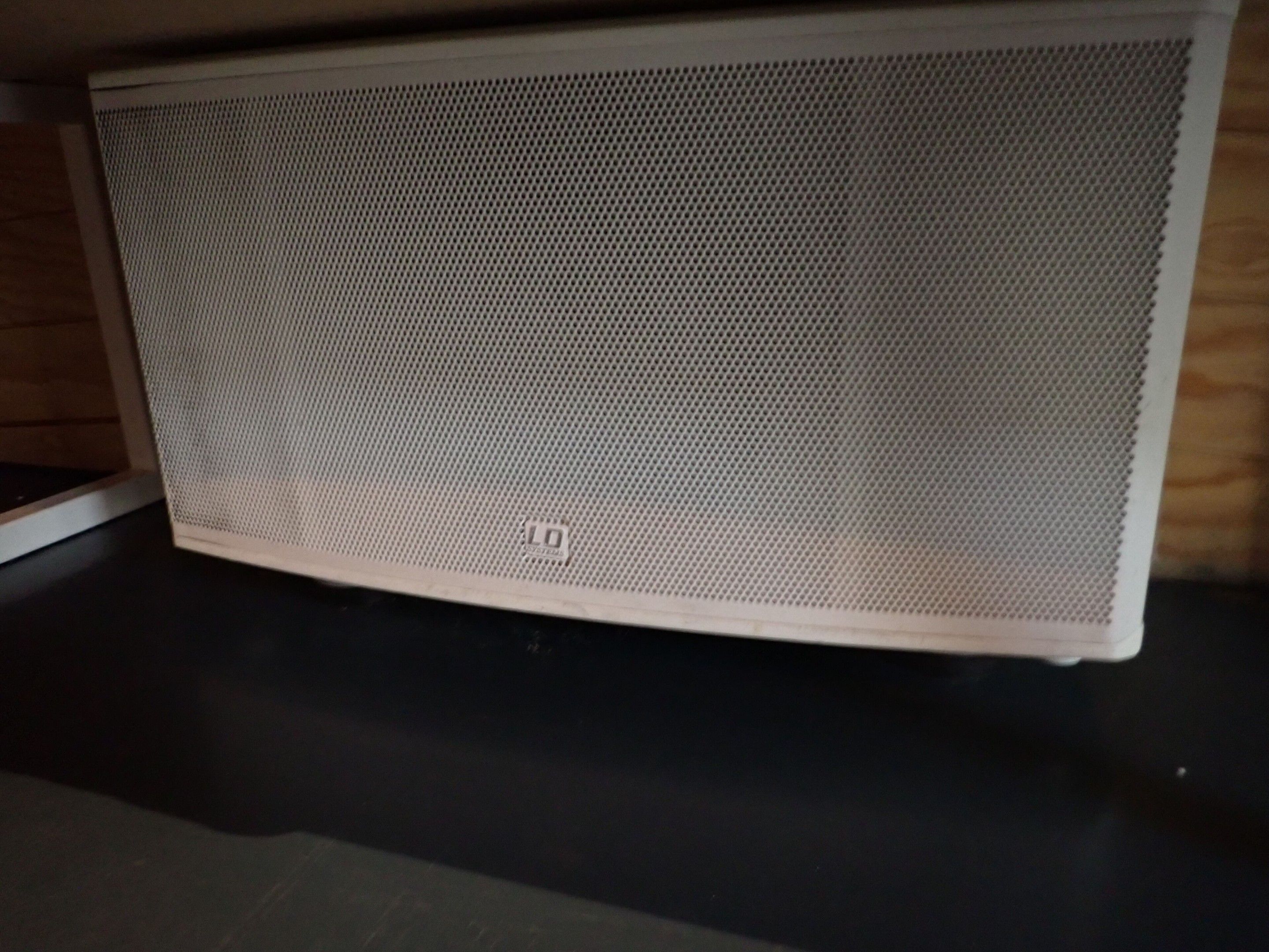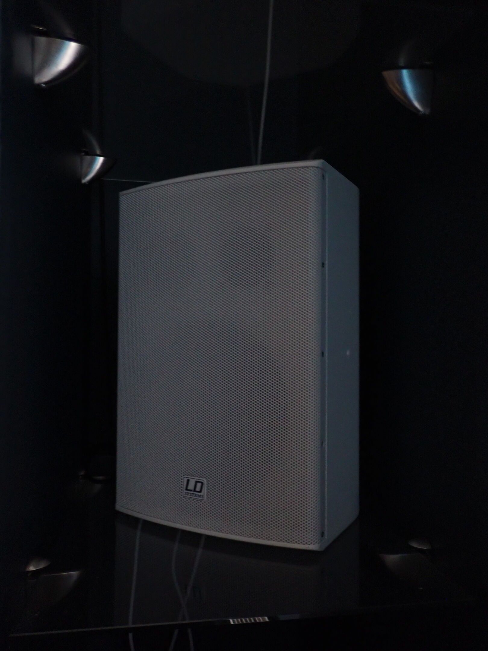 4 white LD CURVE satellite speakers and 3 LD speakers with L…