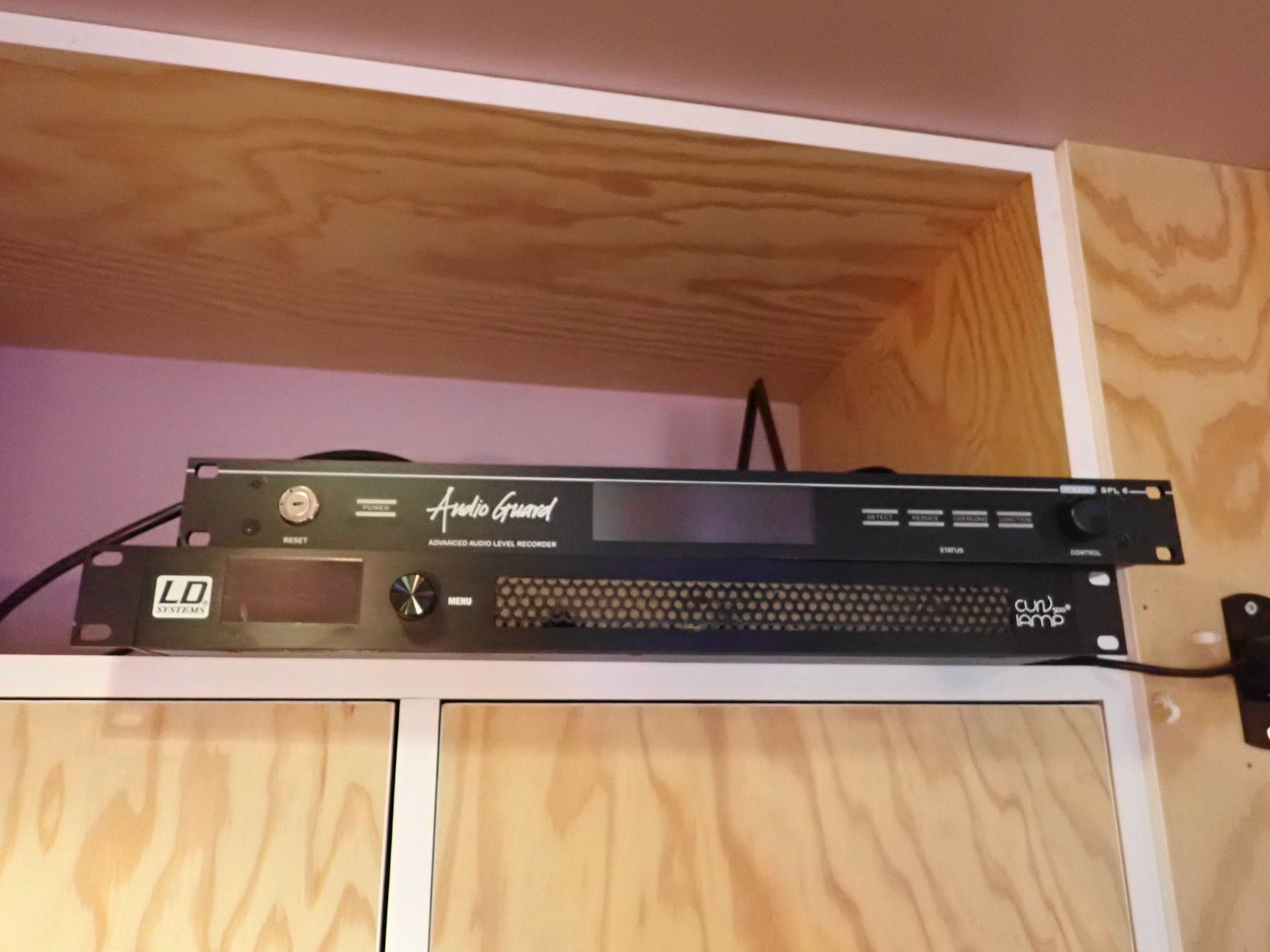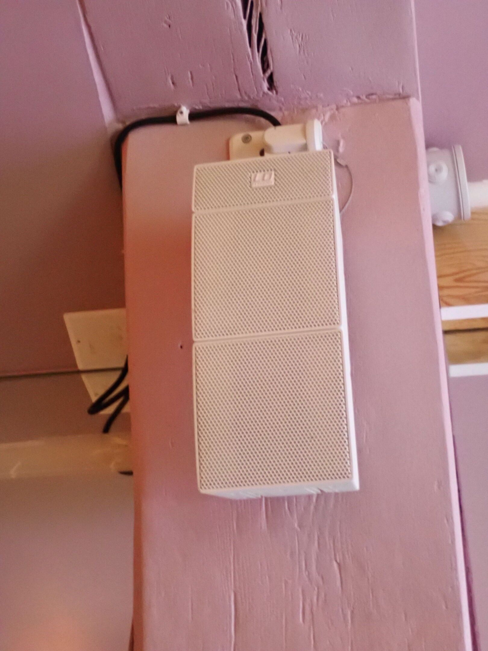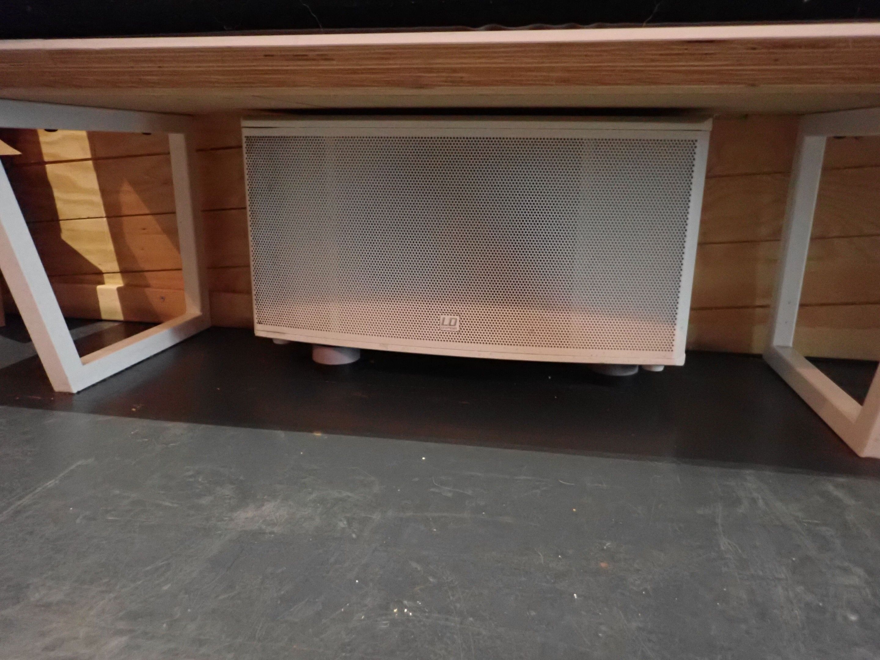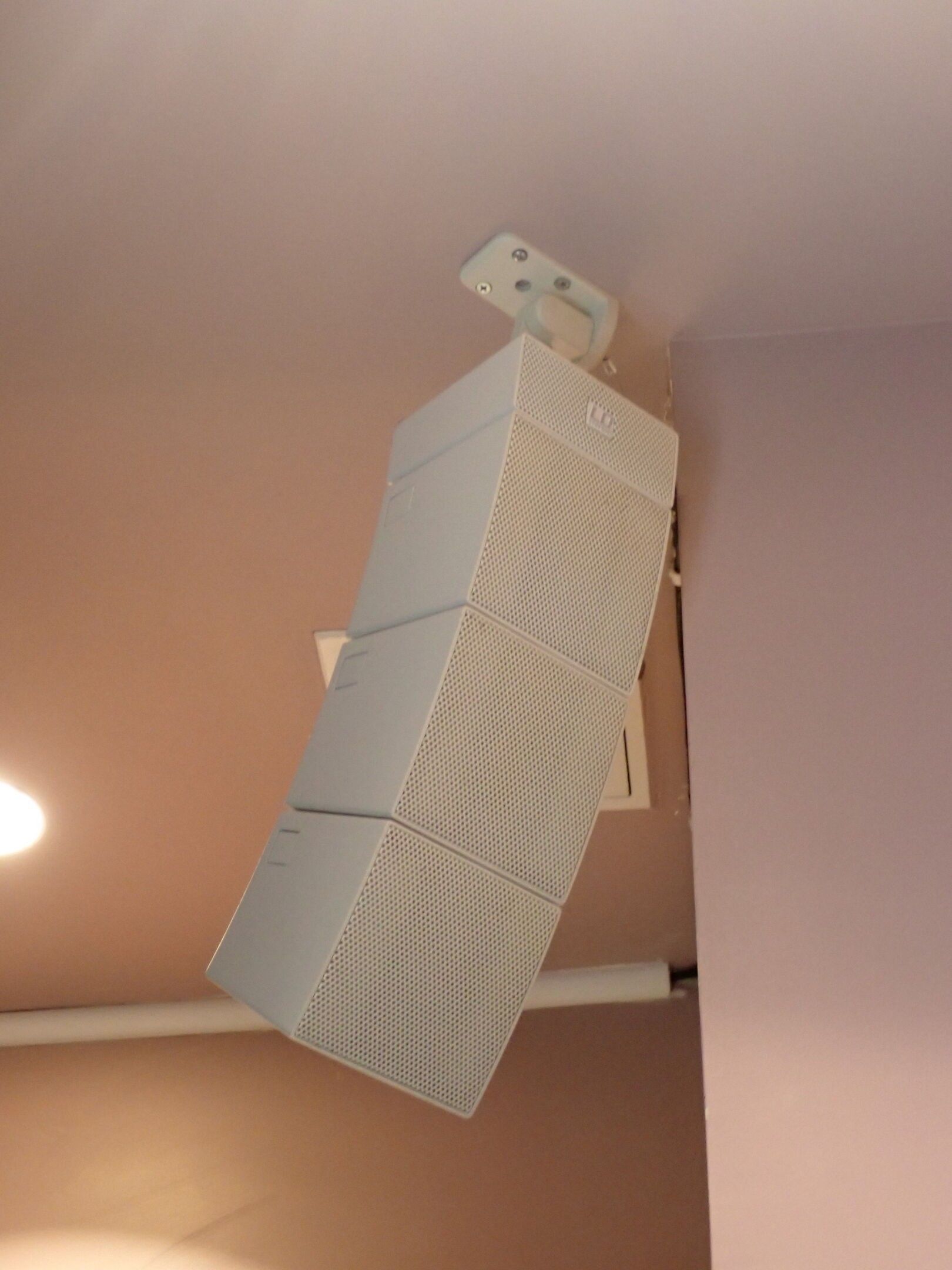 4 white LD CURVE satellite speakers and 3 LD speakers with LD SYSTEM CURV 500 IAMP amplifier with Audio GUERA SPL6 tuner and volume control, sold without cables, Judicial lot, Price 100
