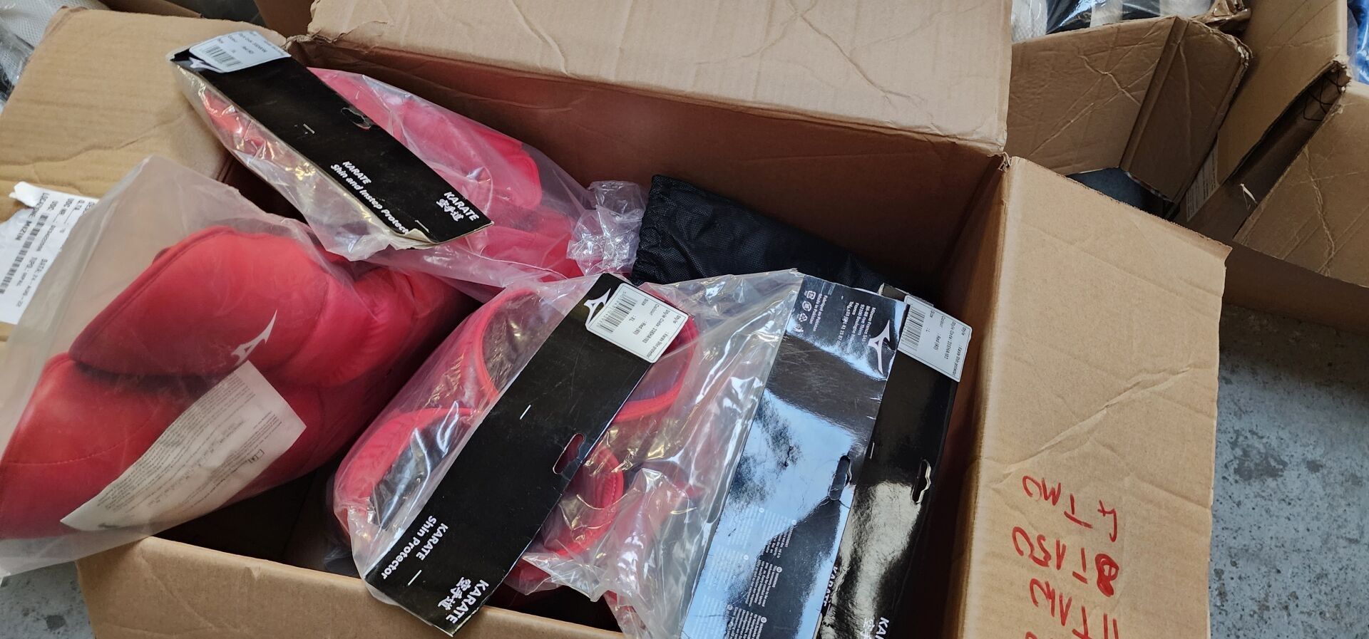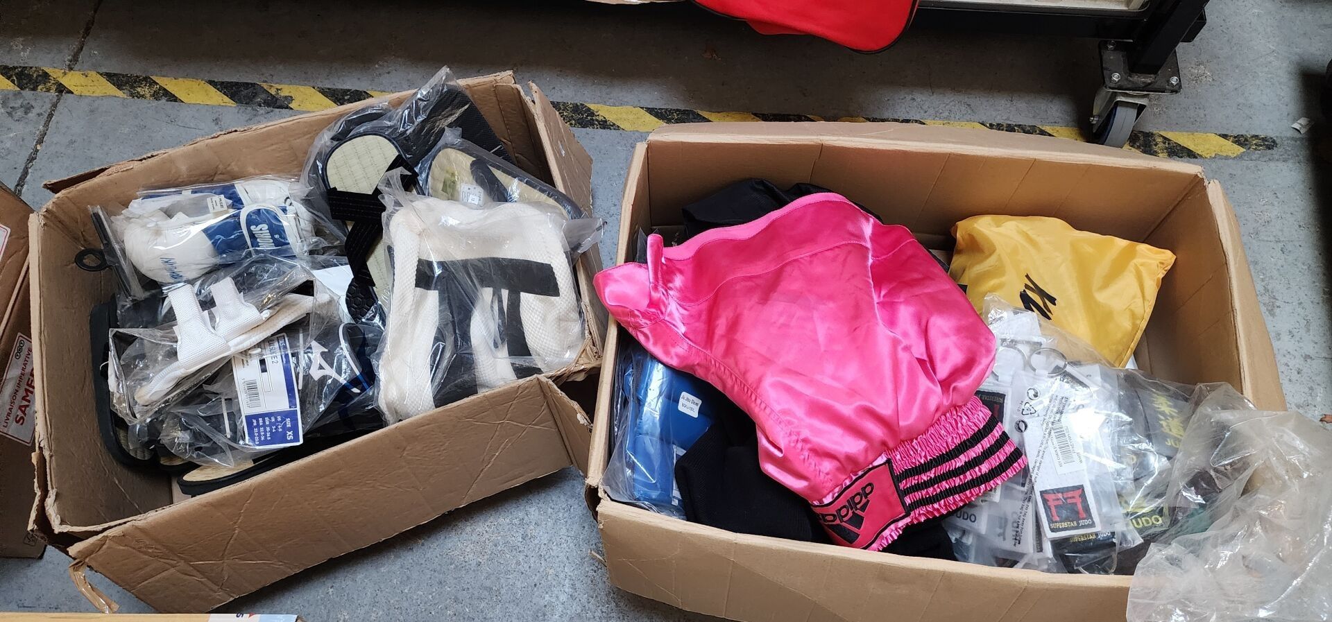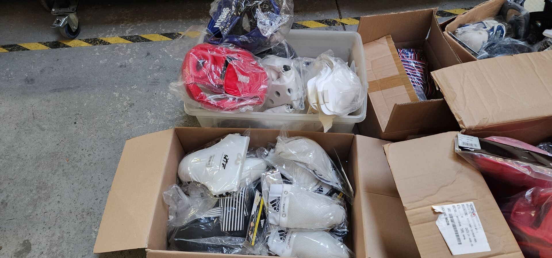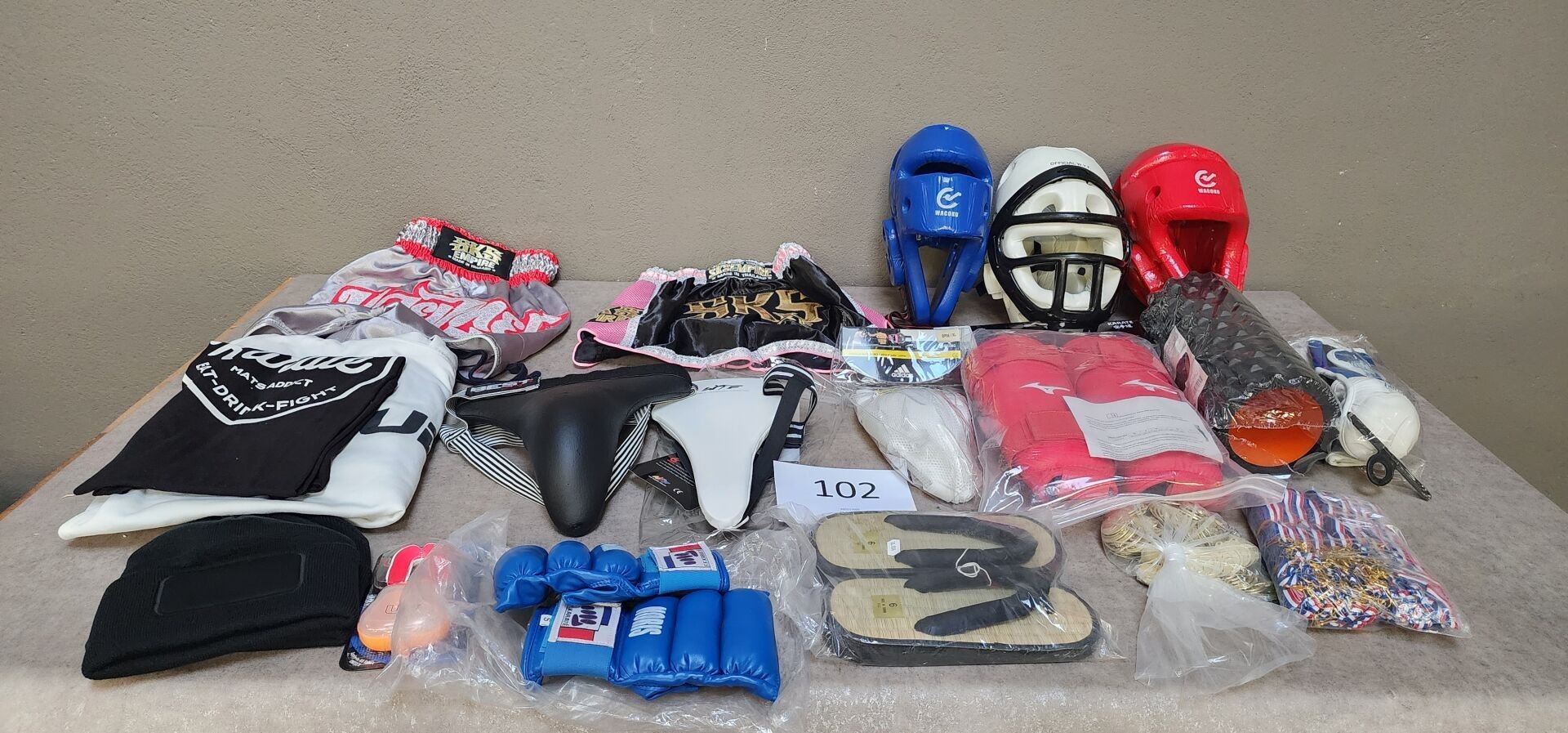 6 Wacoku helmets, 5 pairs of gloves including : NORIS, 5 shin guards and 2 MIZUNO shin and foot guards, approx. 10 protective shells for women including : WTF, BESTANGELS, 5 ADIDAS protective shells for men, 1 set of clothing: T-shirts, pullovers, hats, shorts, around 10 pairs of Japanese sandals, 1 set of medals, 2 suitcases.