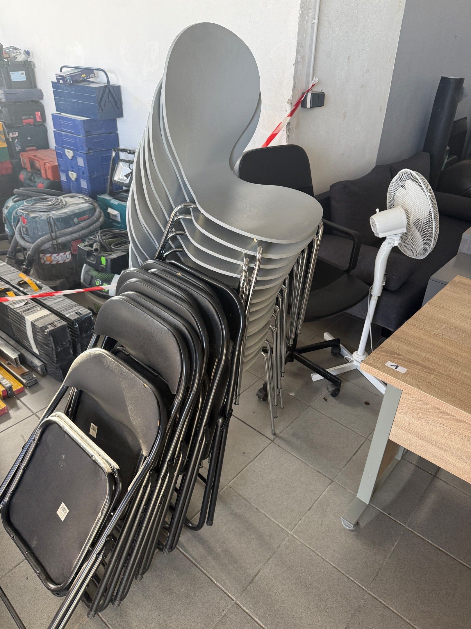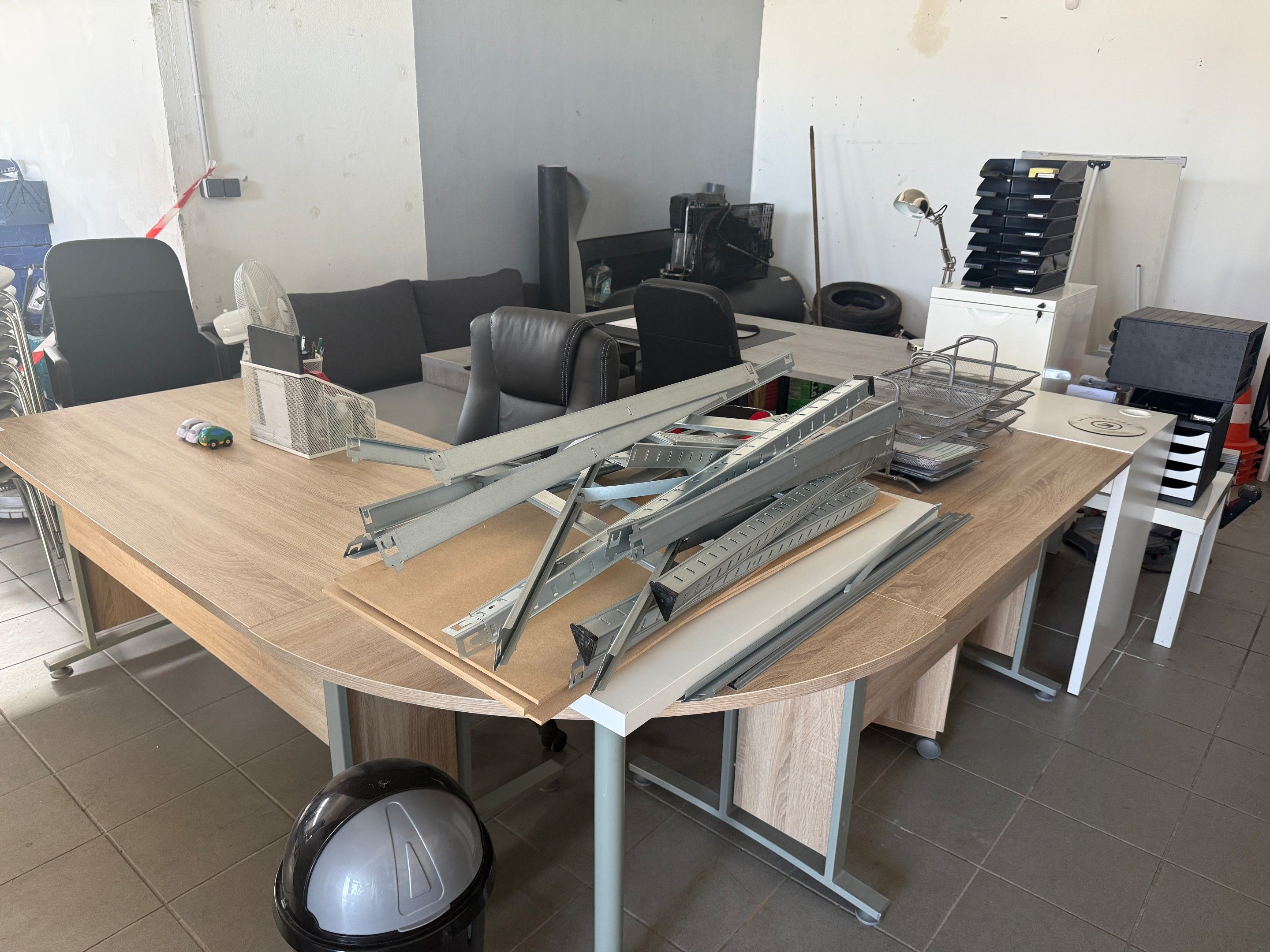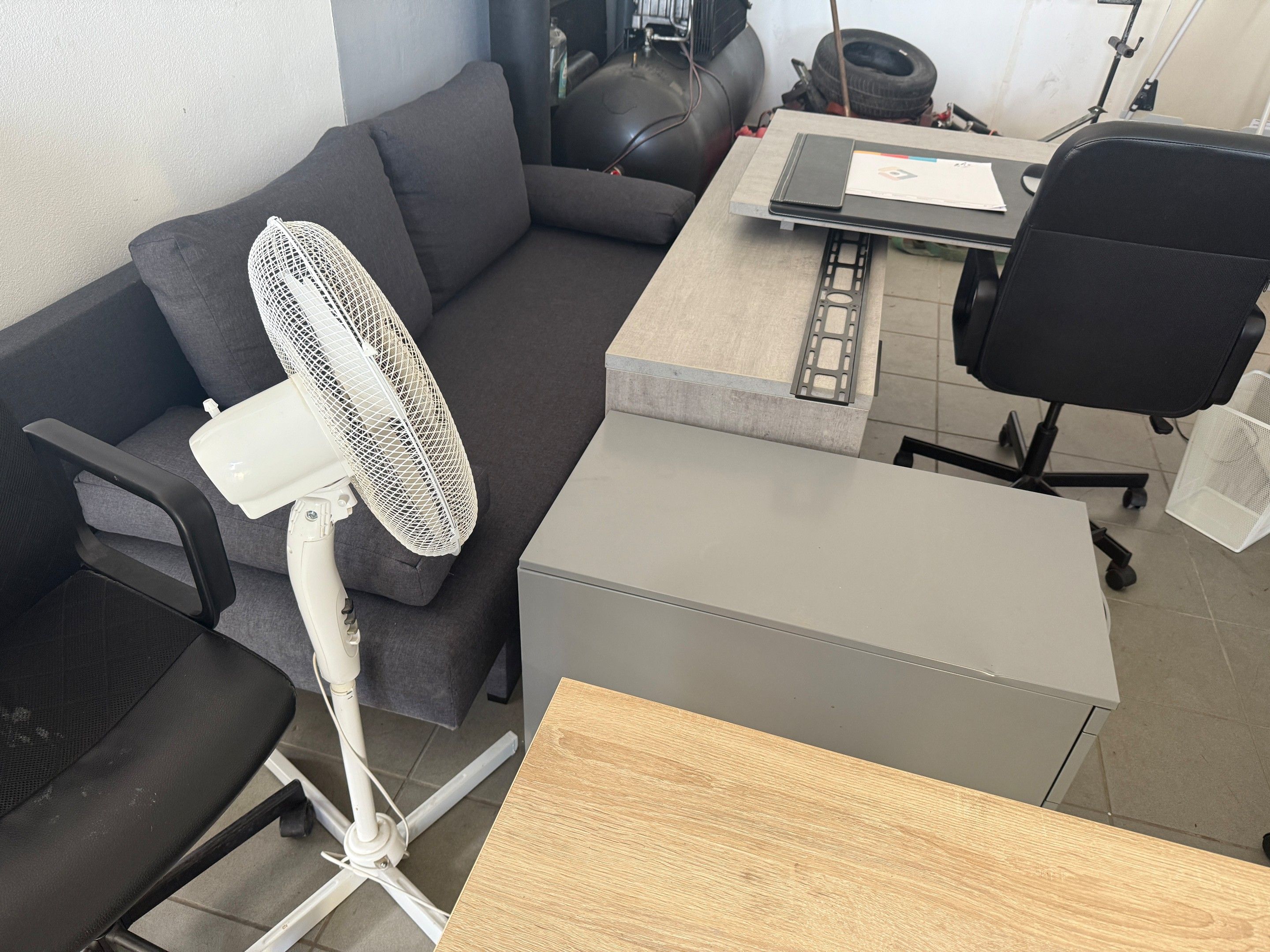 Two desks, chairs, sofa, armchairs, cupboards. Costs 14.28% incl. VAT (recoverable).