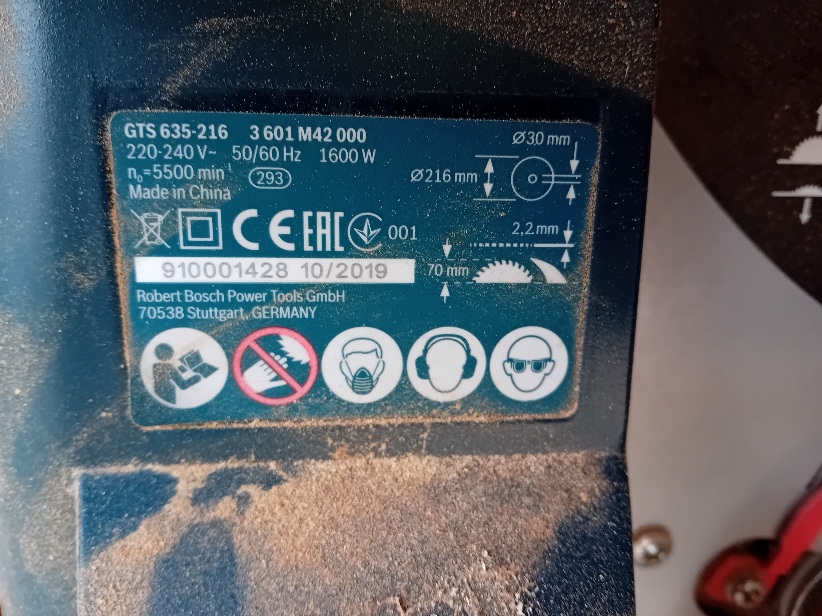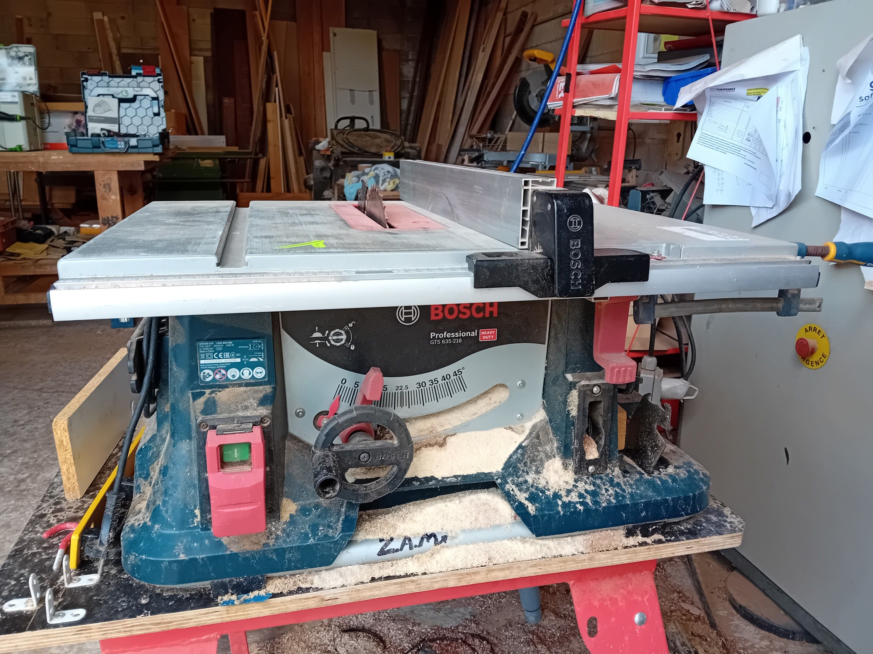 (lots 11 to 27) - Joinery equipment located in Le Crès : 1 BOSCH GTS 635-216 table circular saw