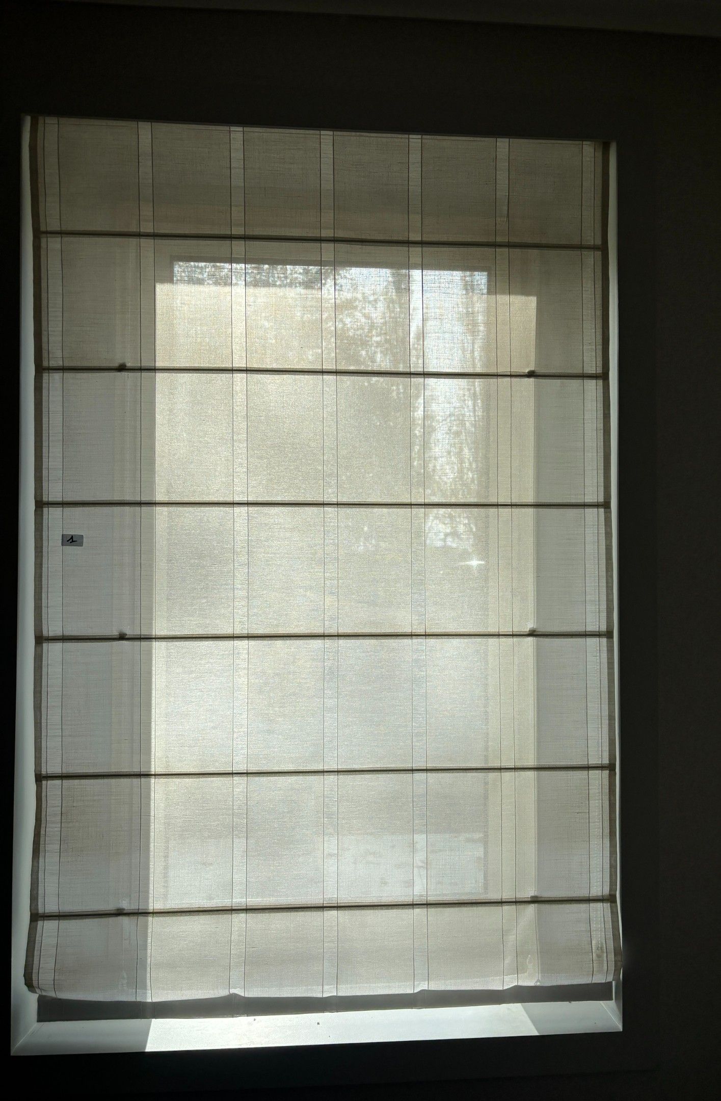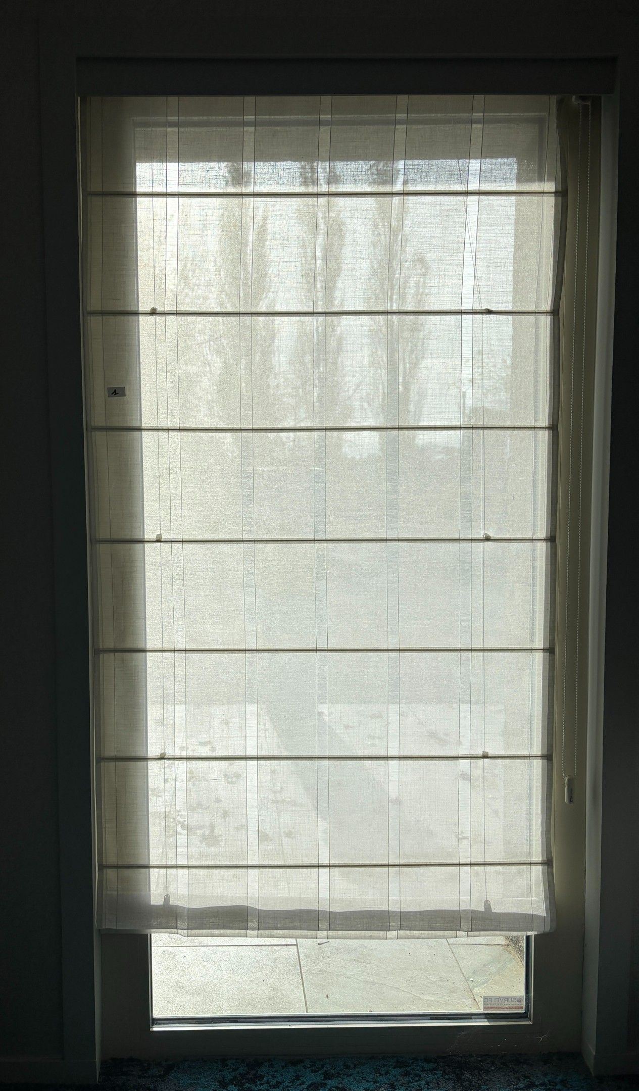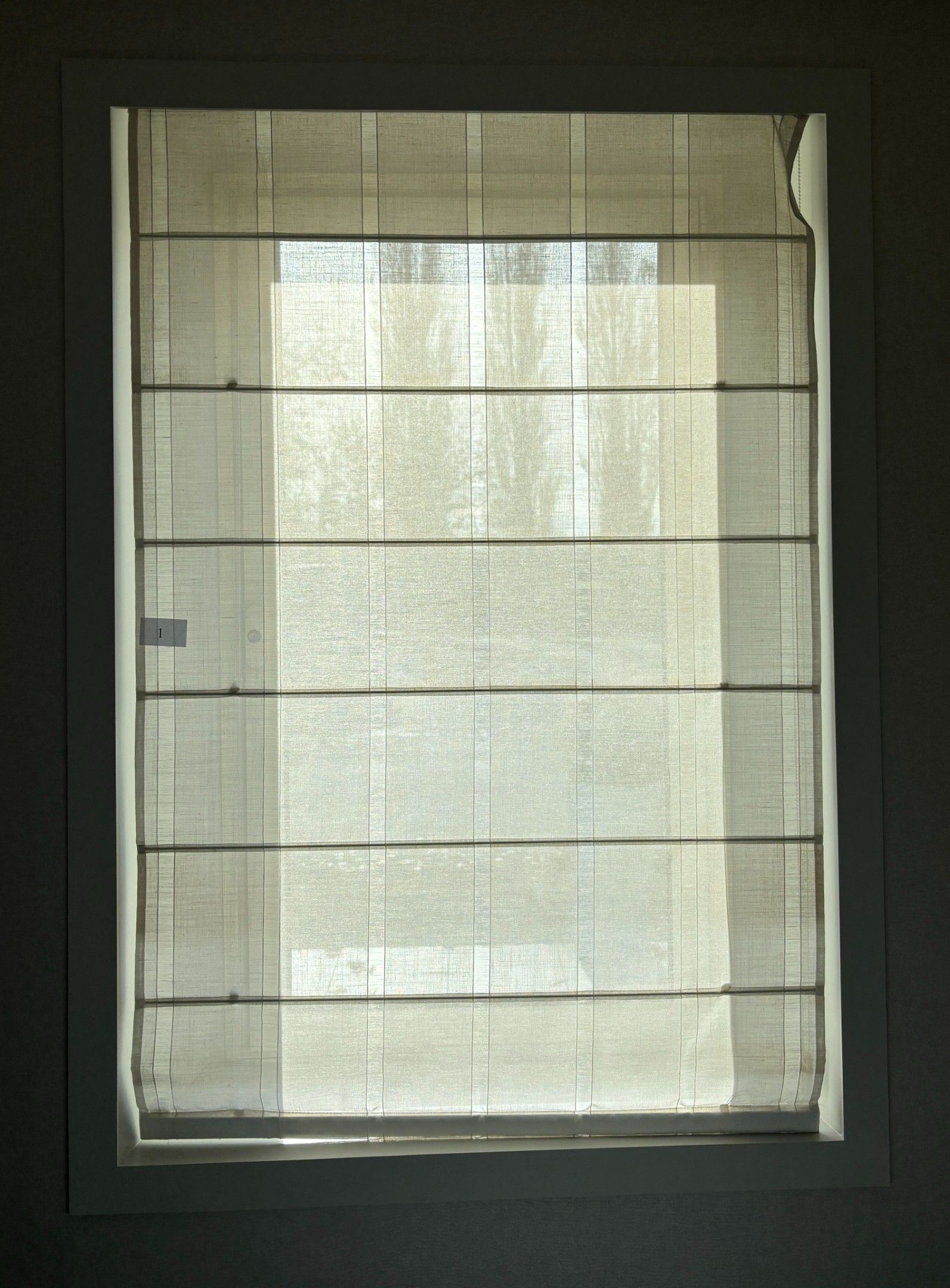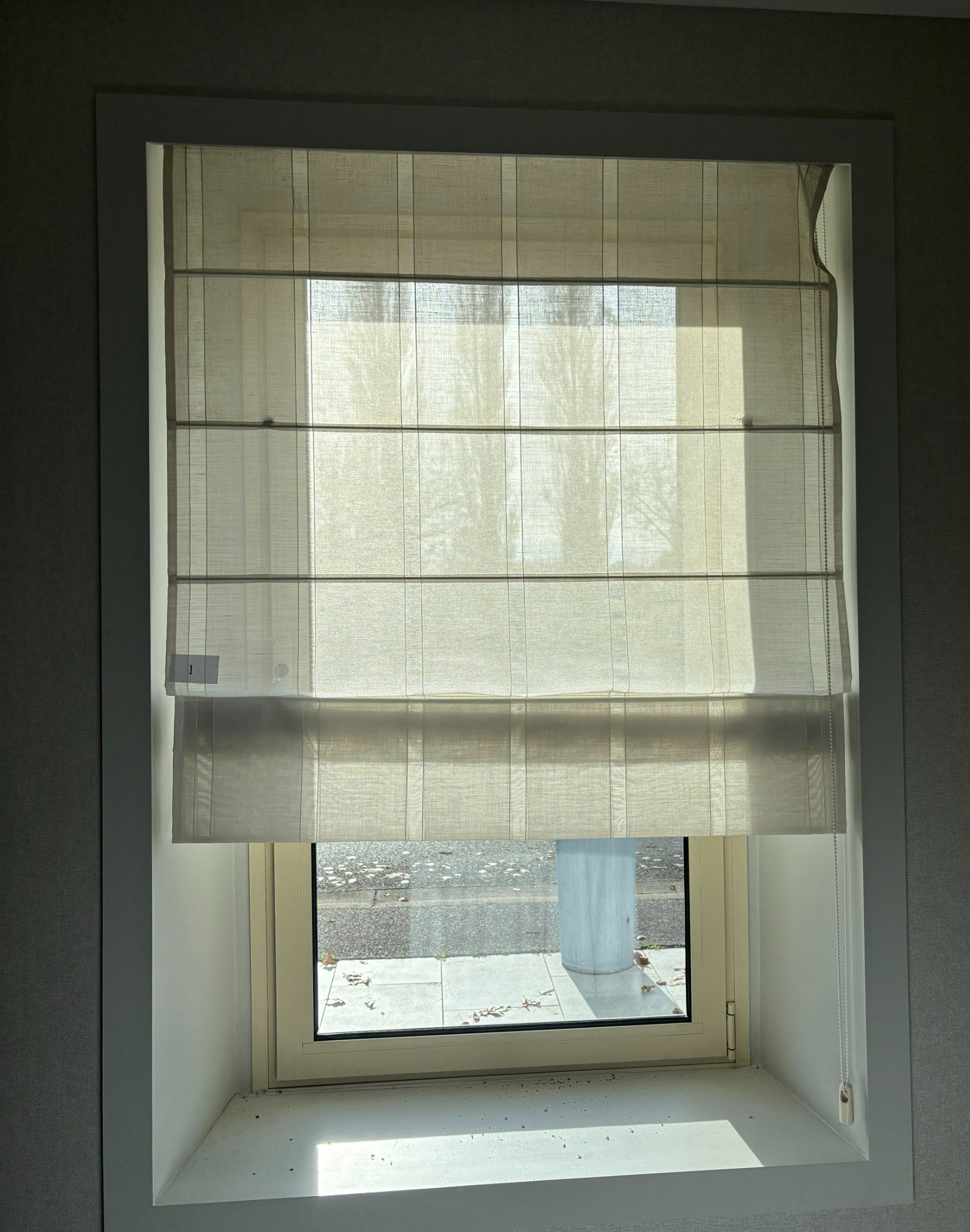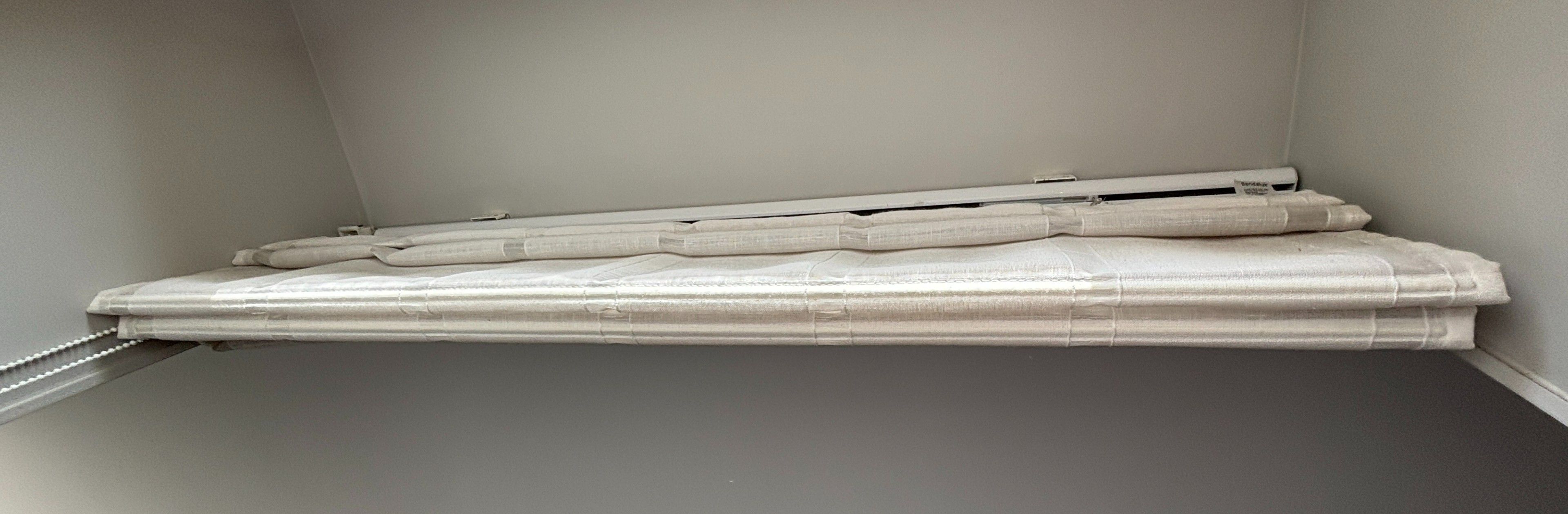 Three fabric blinds, two 160 x 100cm and one 220 x 100cm.