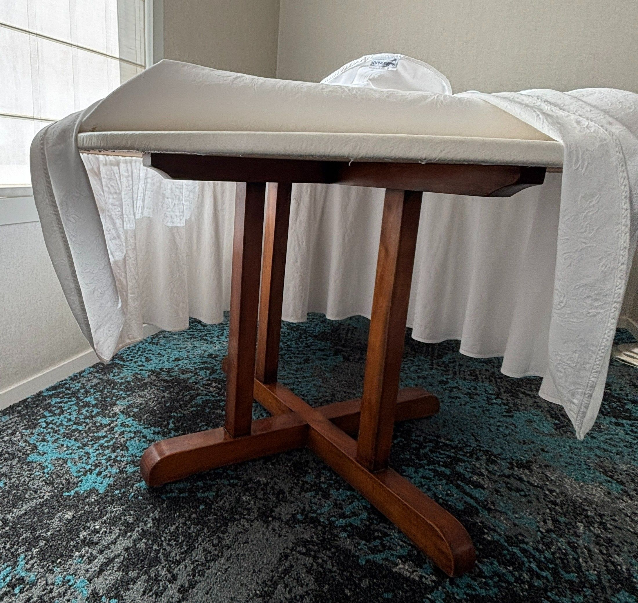 - rectangular wooden table (length: 110, width: 70cm, height: 75cm)