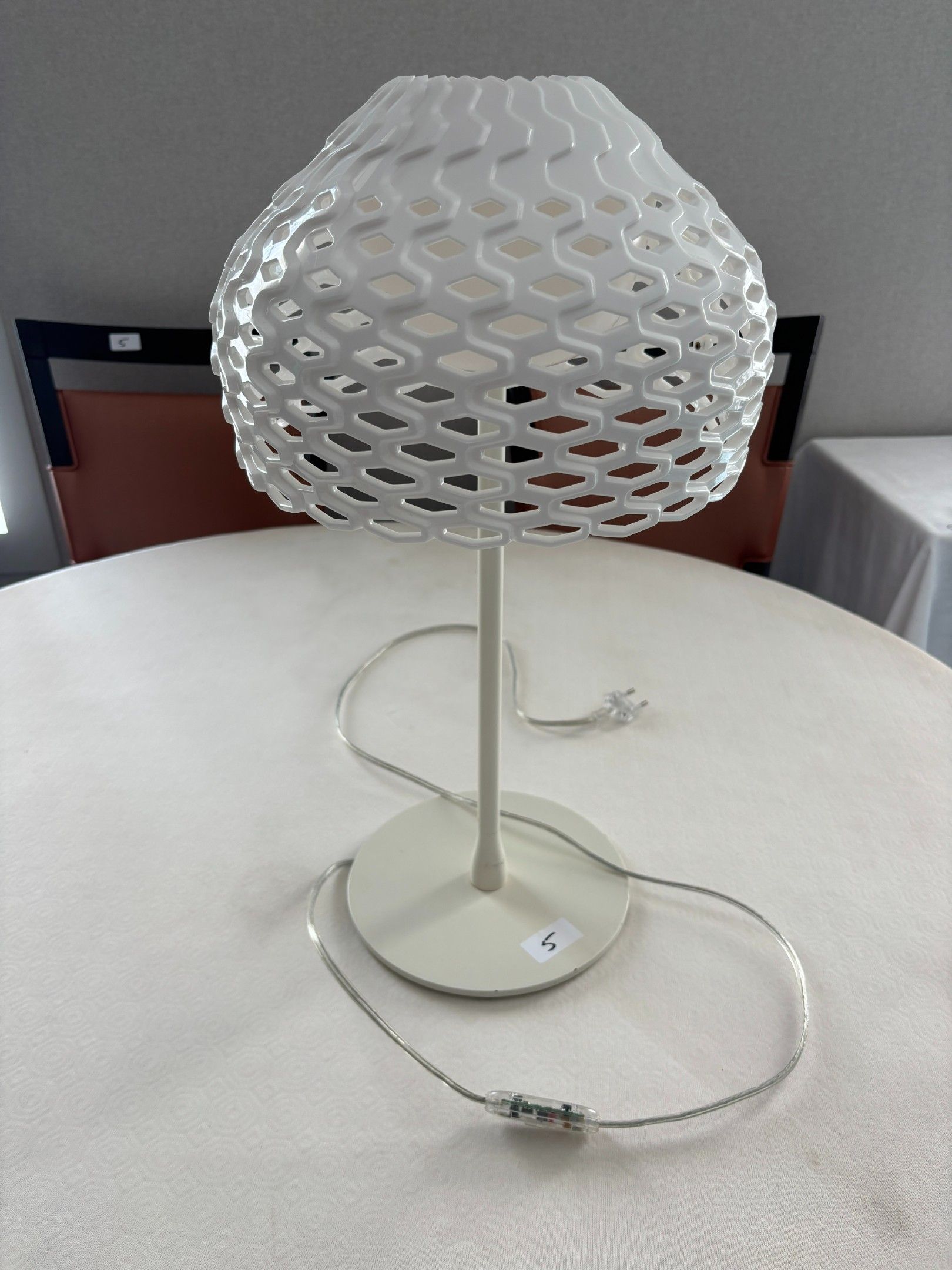 - white metal and plastic lamp