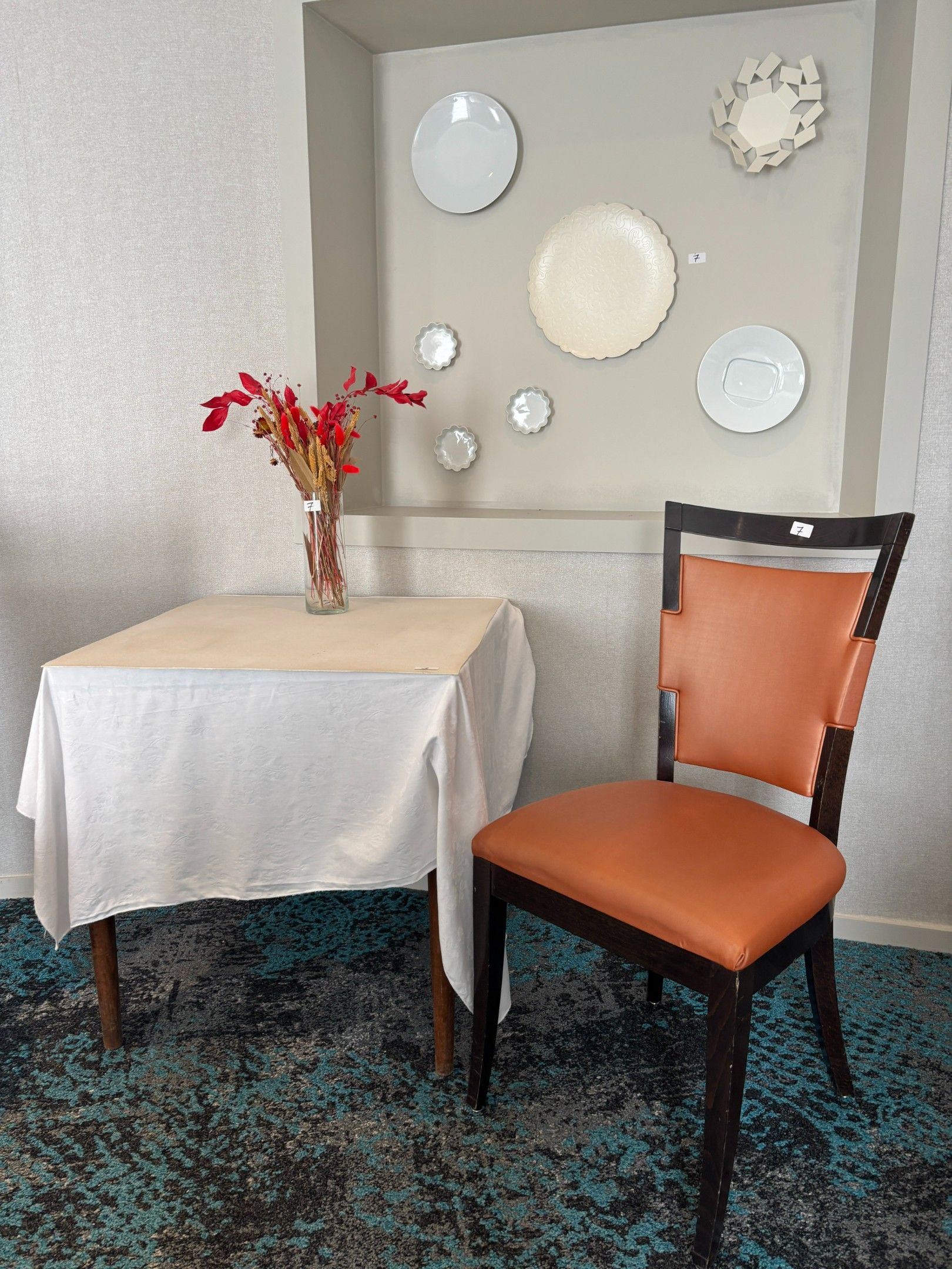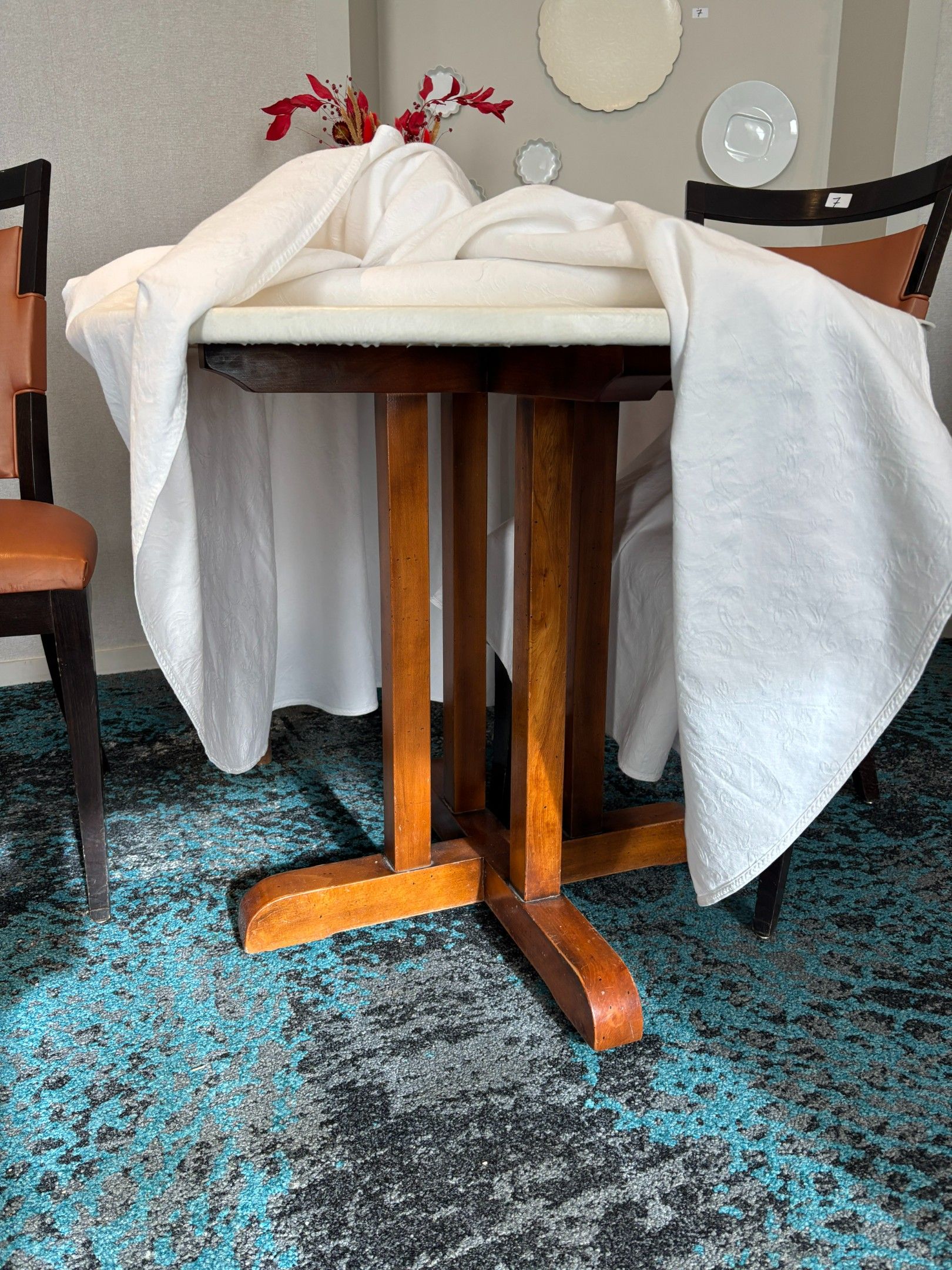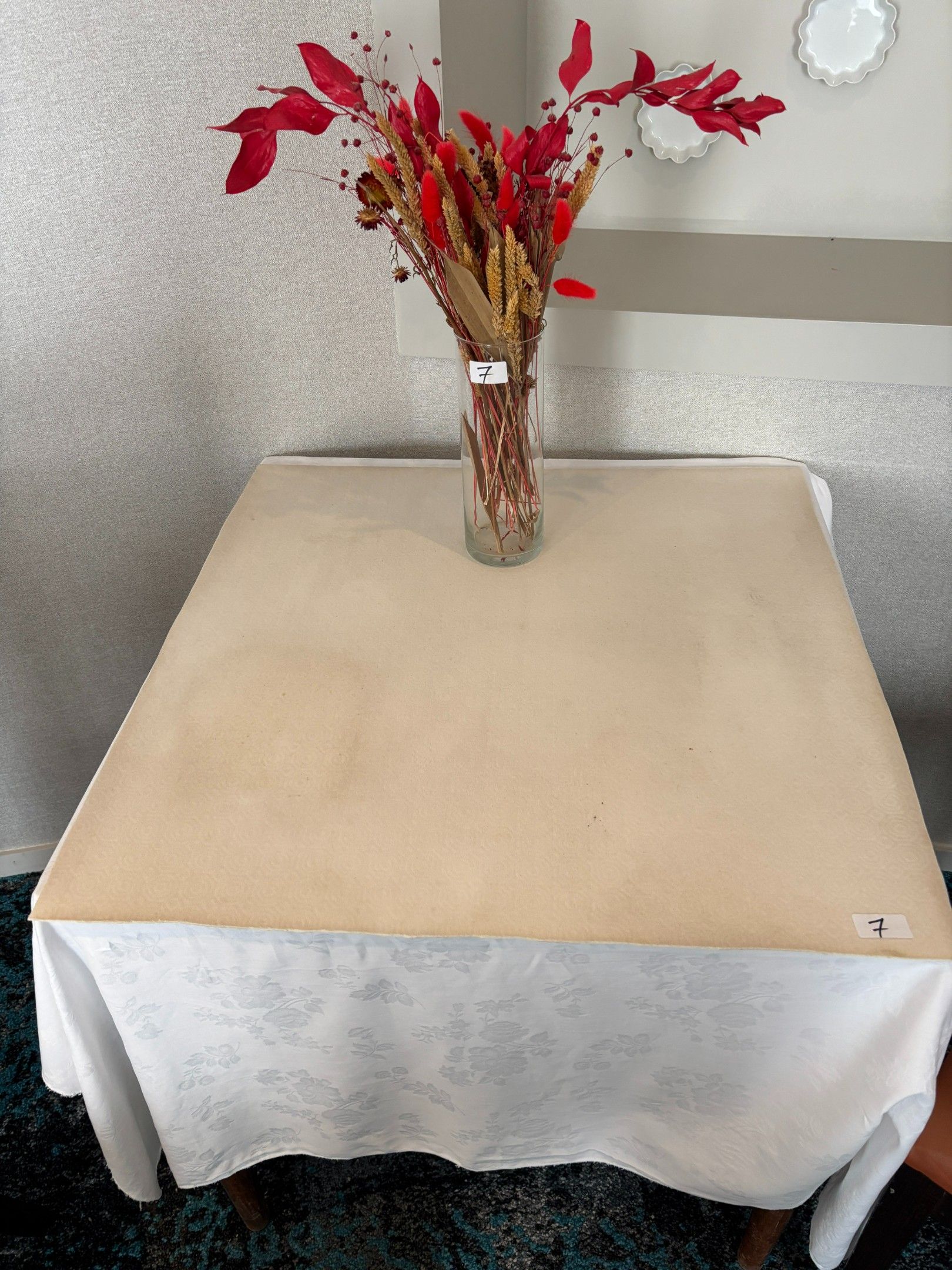 - square wooden table, (length: 71cm, width: 71cm, height: 75cm)