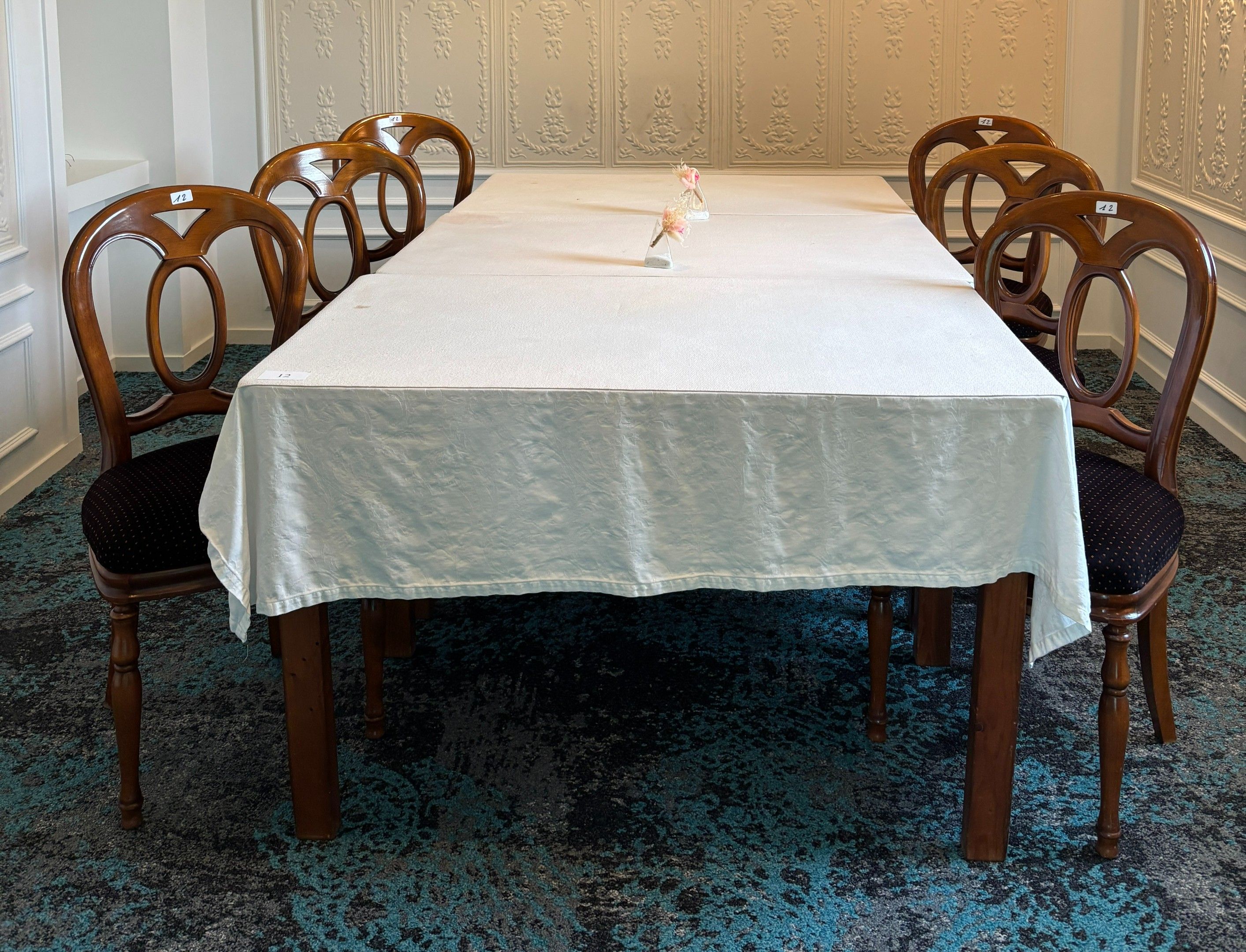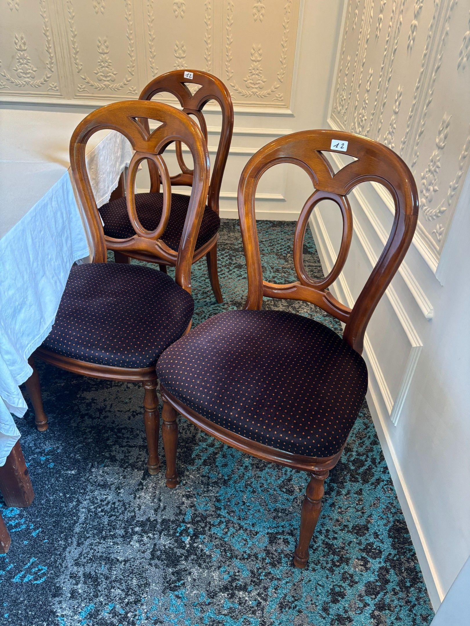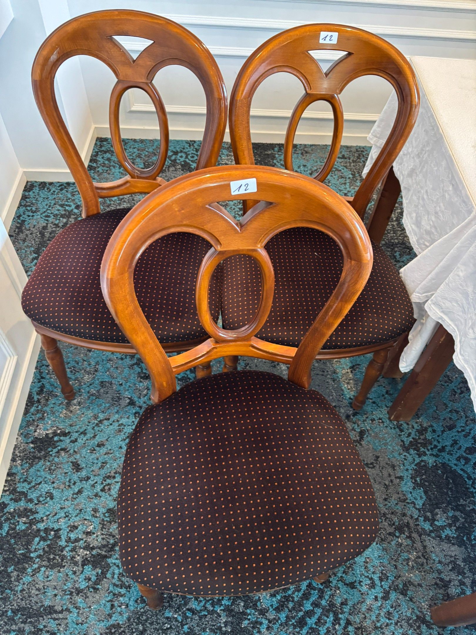 - three rectangular wooden tables (length: 120cm, width: 70cm, height: 75cm)