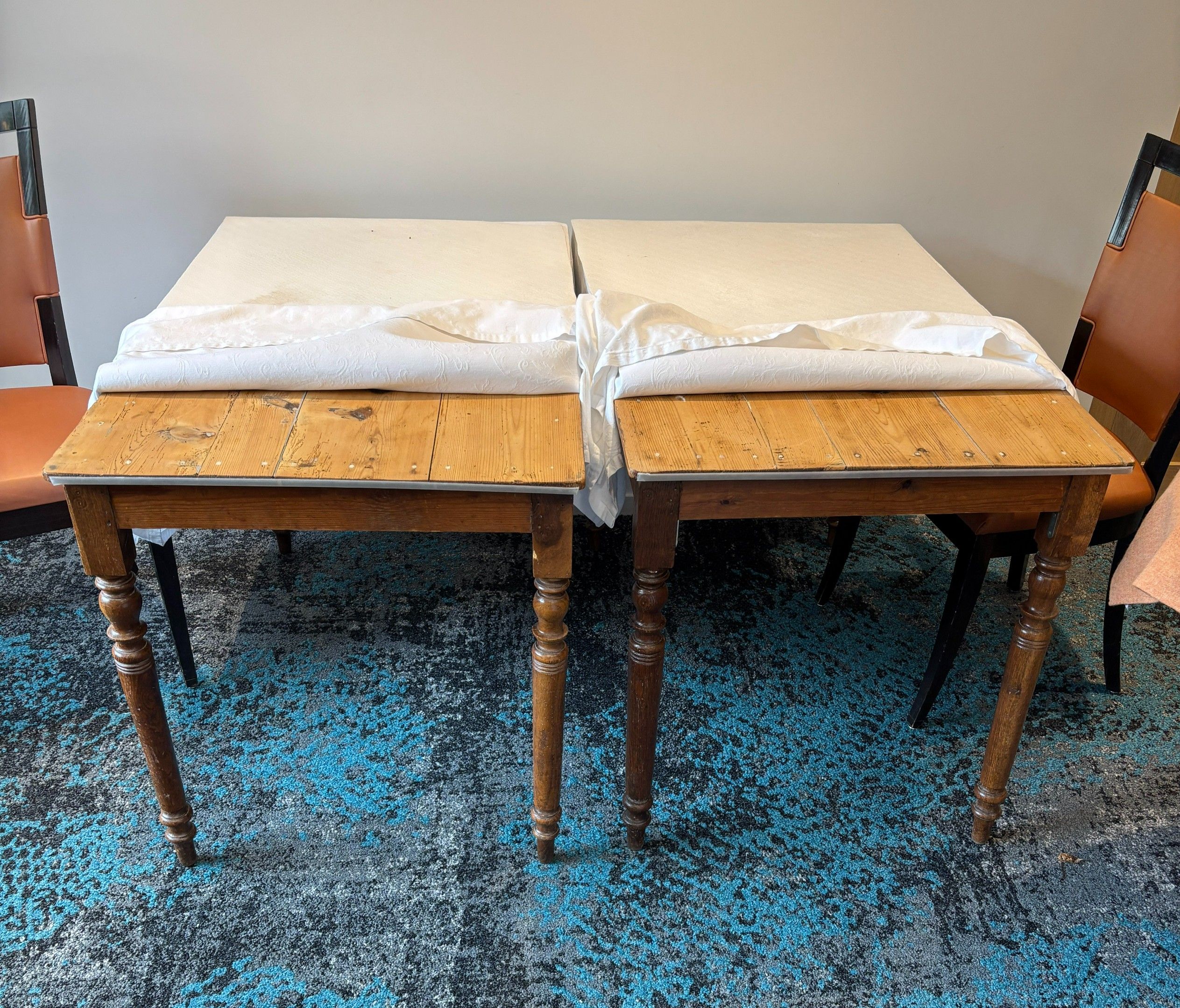 - two rectangular wooden tables, (length: 110cm, width: 70cm, height: 75cm)