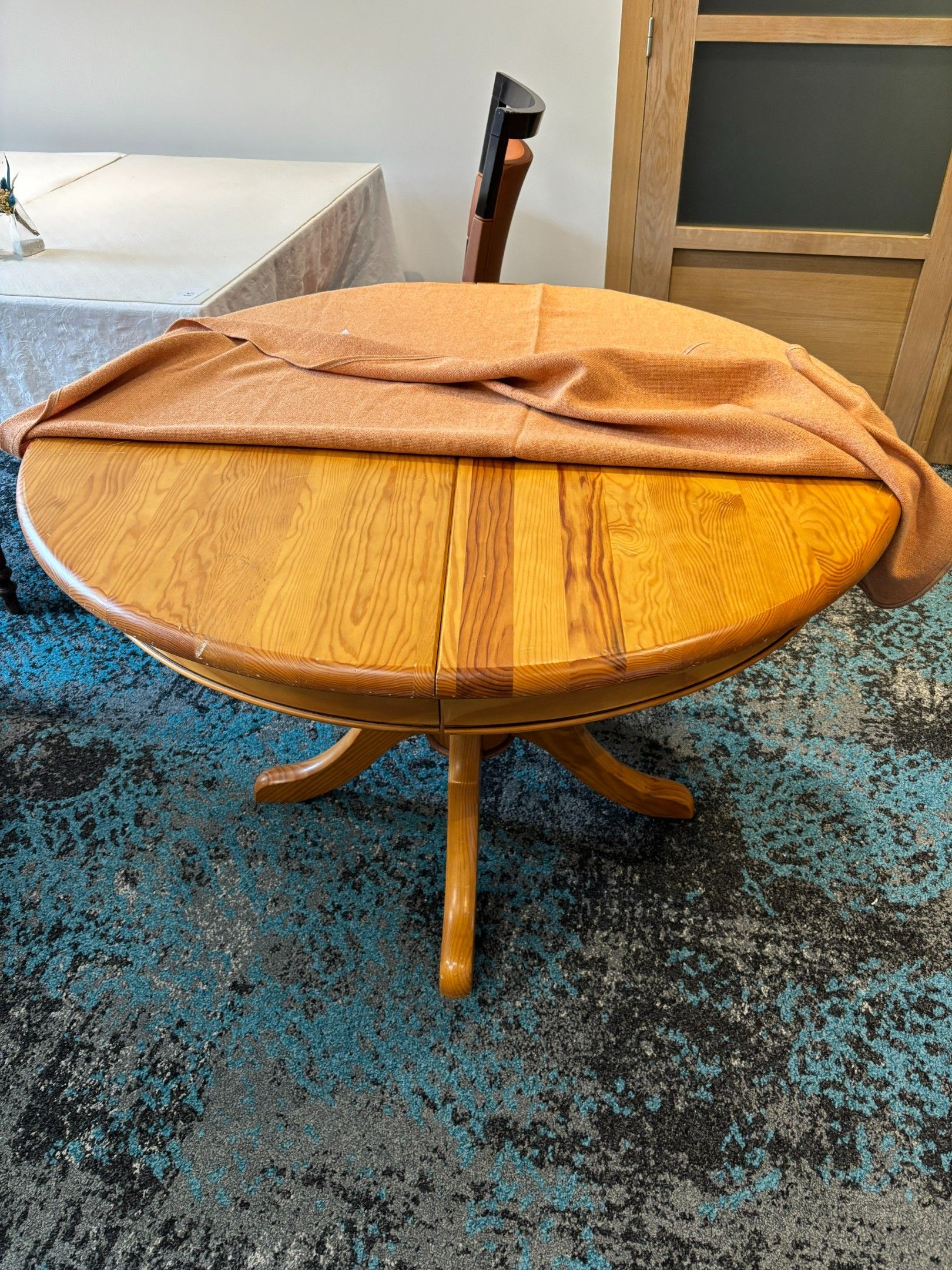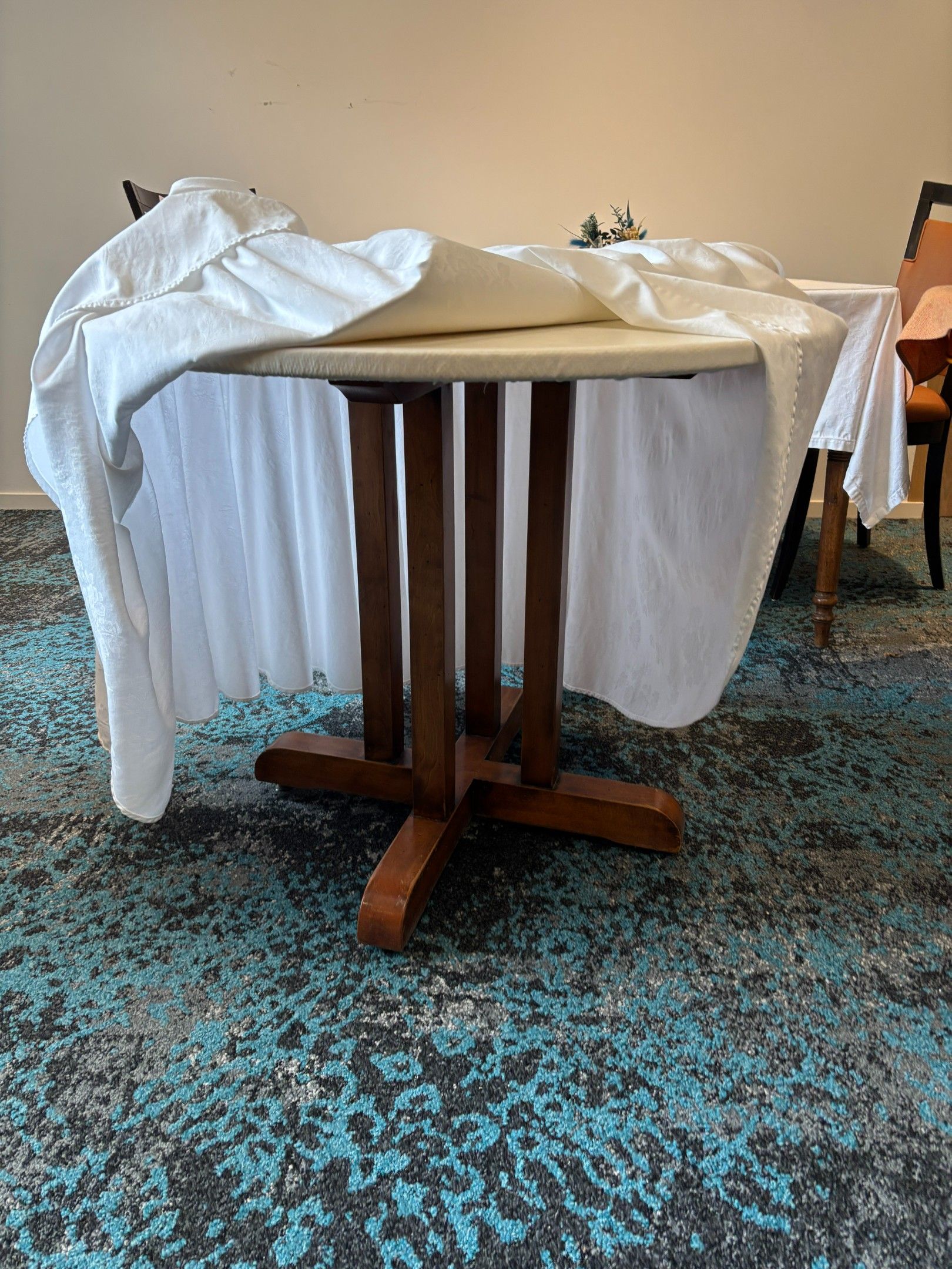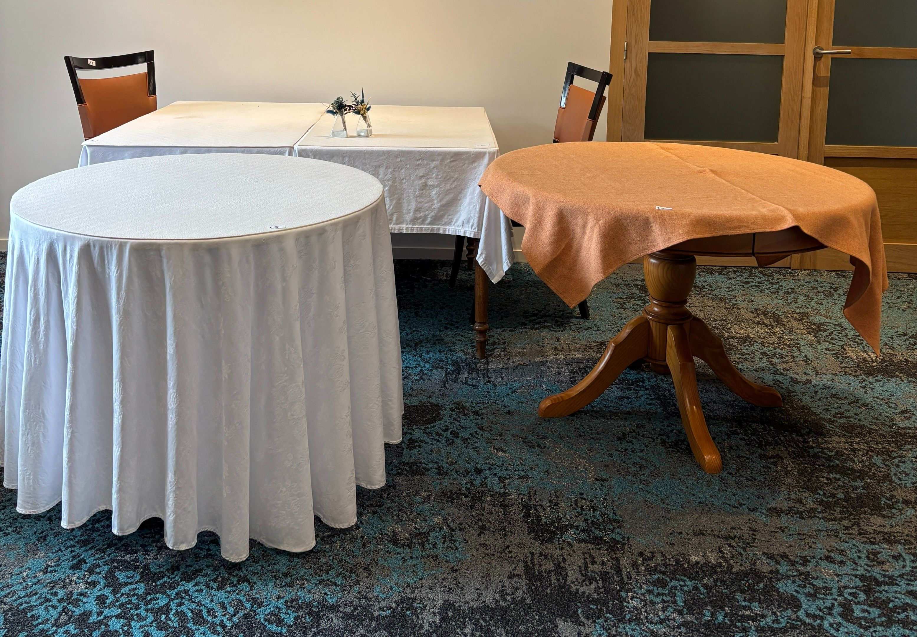 - two round wooden tables, (diameters: 90 and 110cm)
