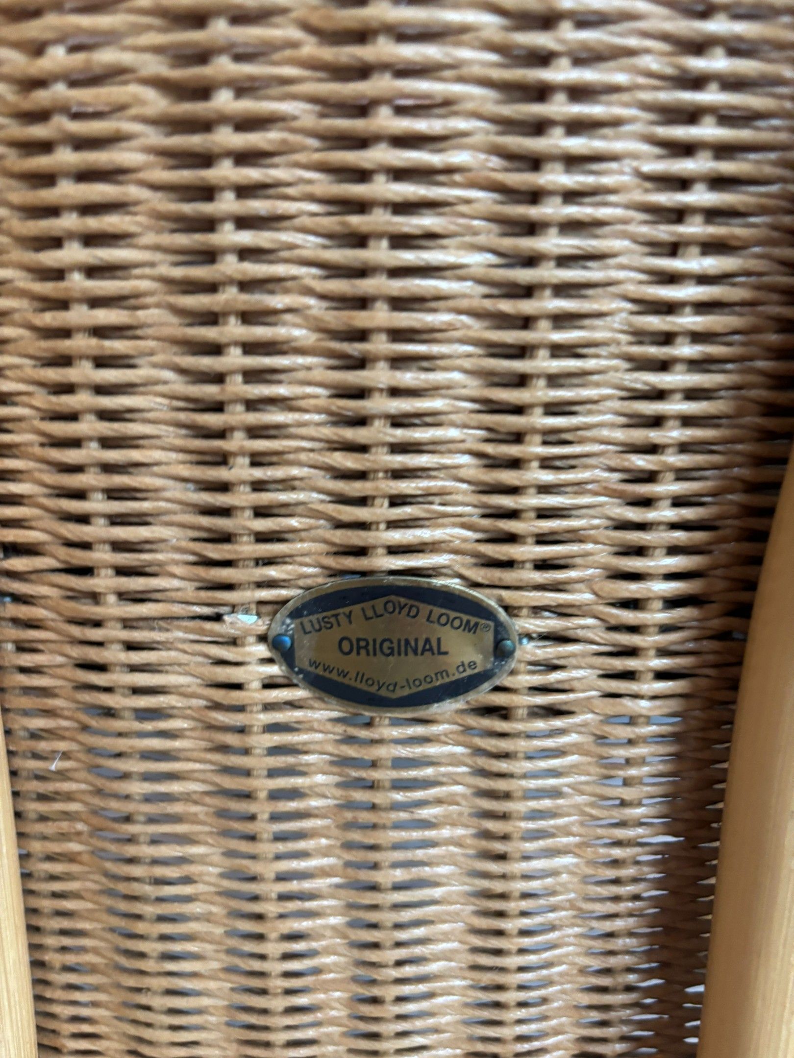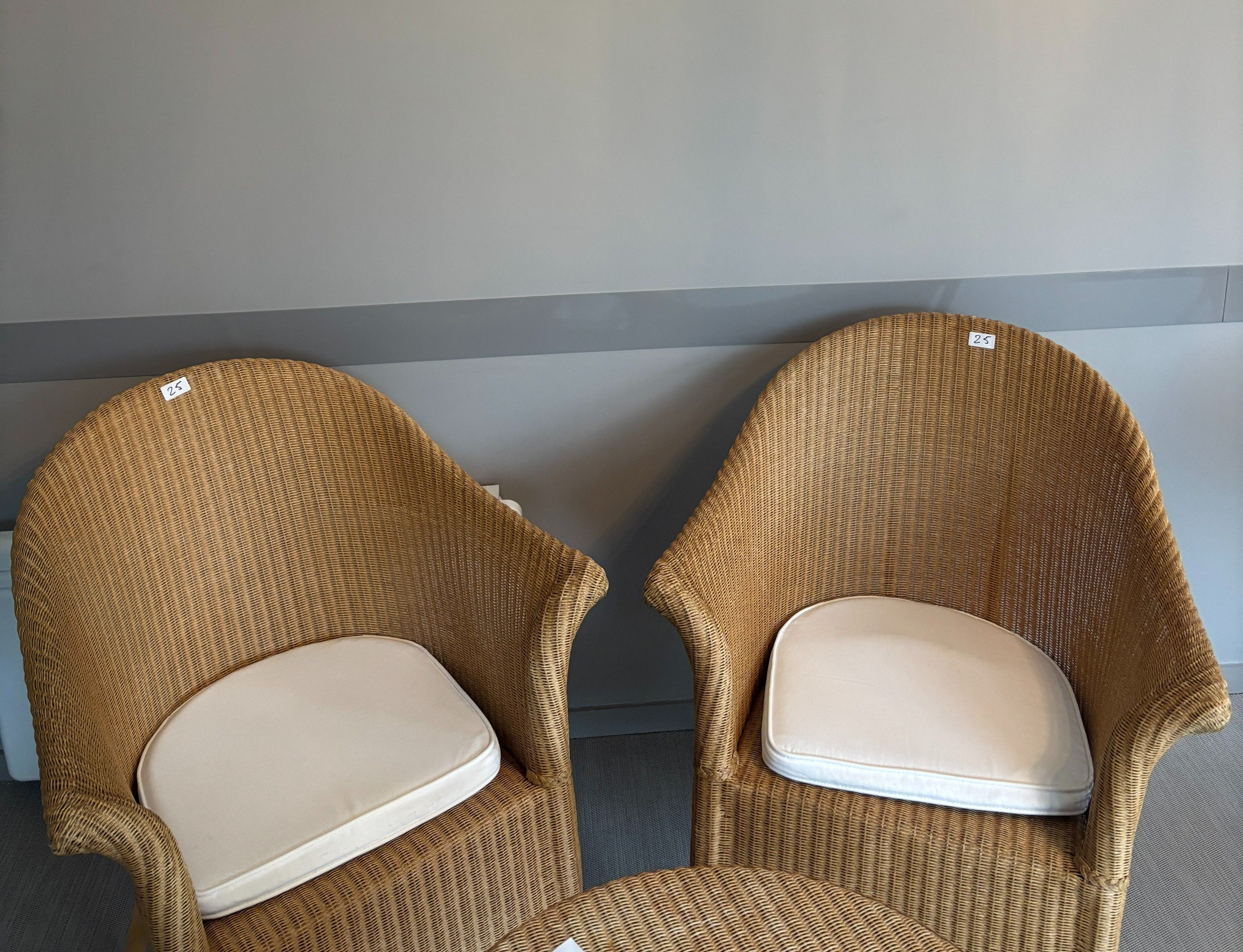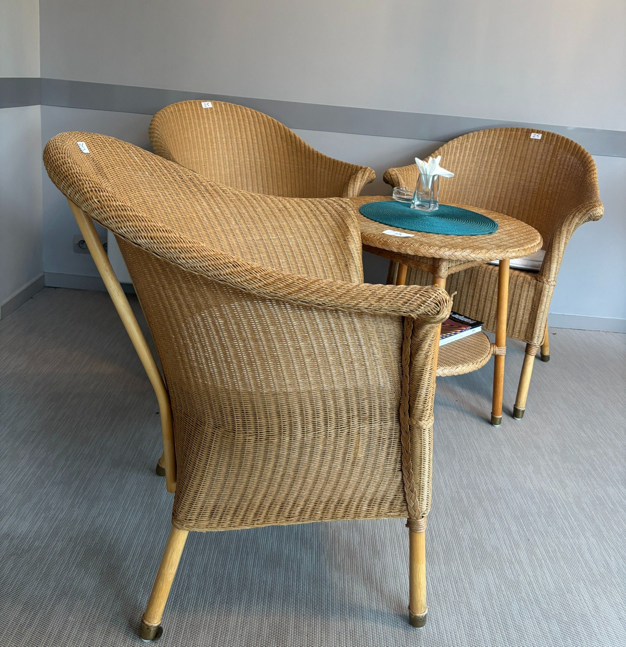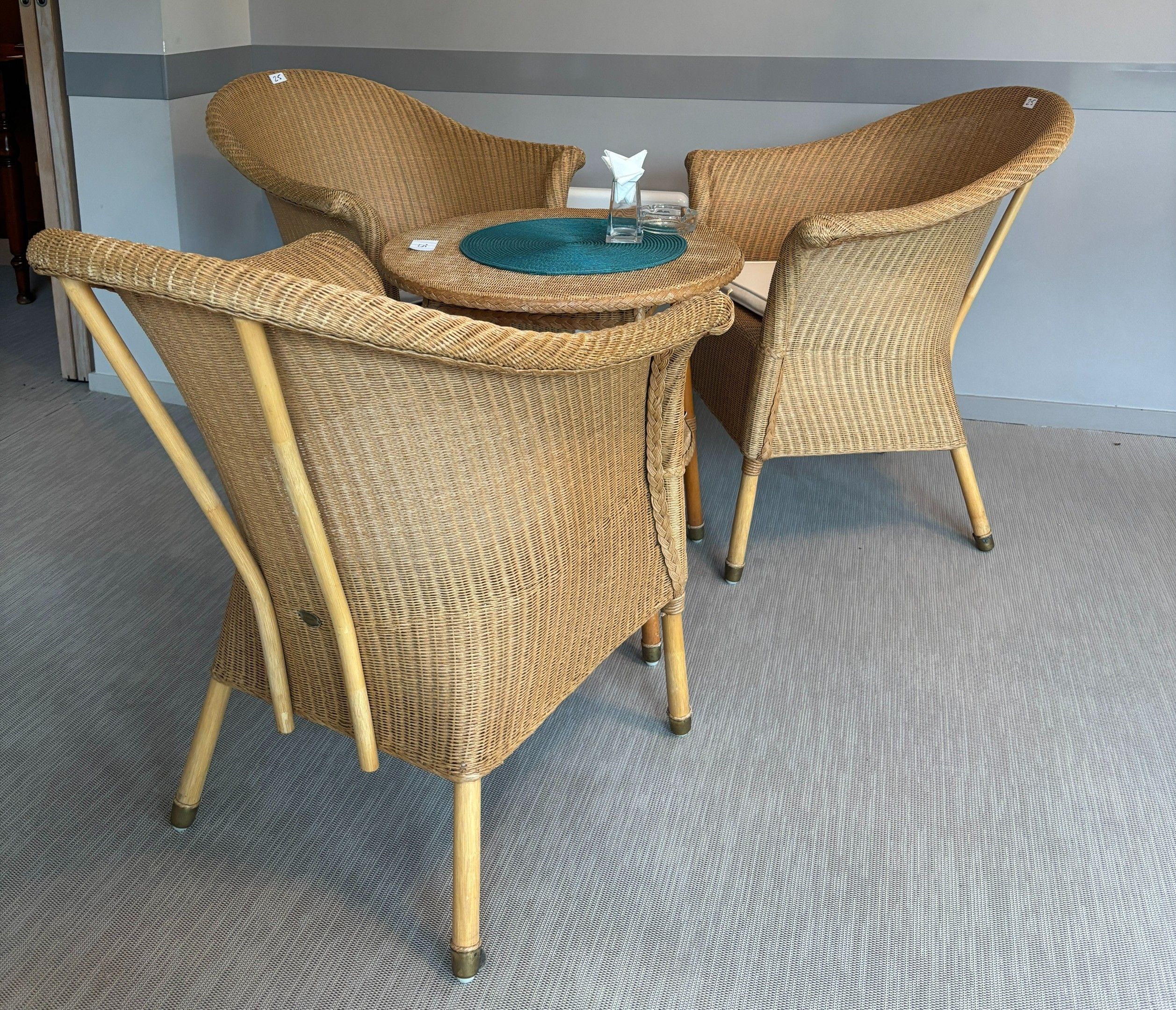 Small Lloyd Loom lounge comprising: three woven wood armchai…