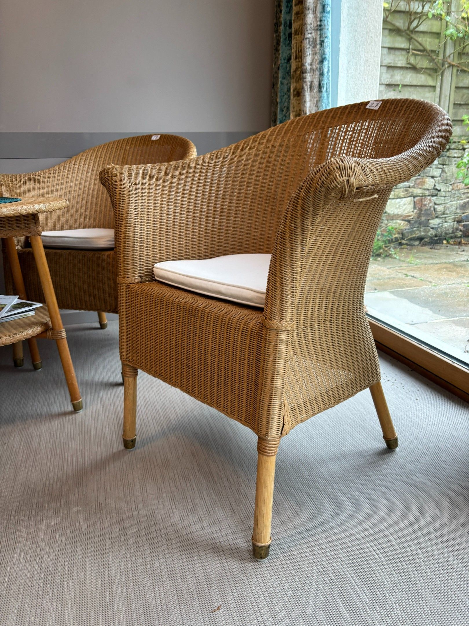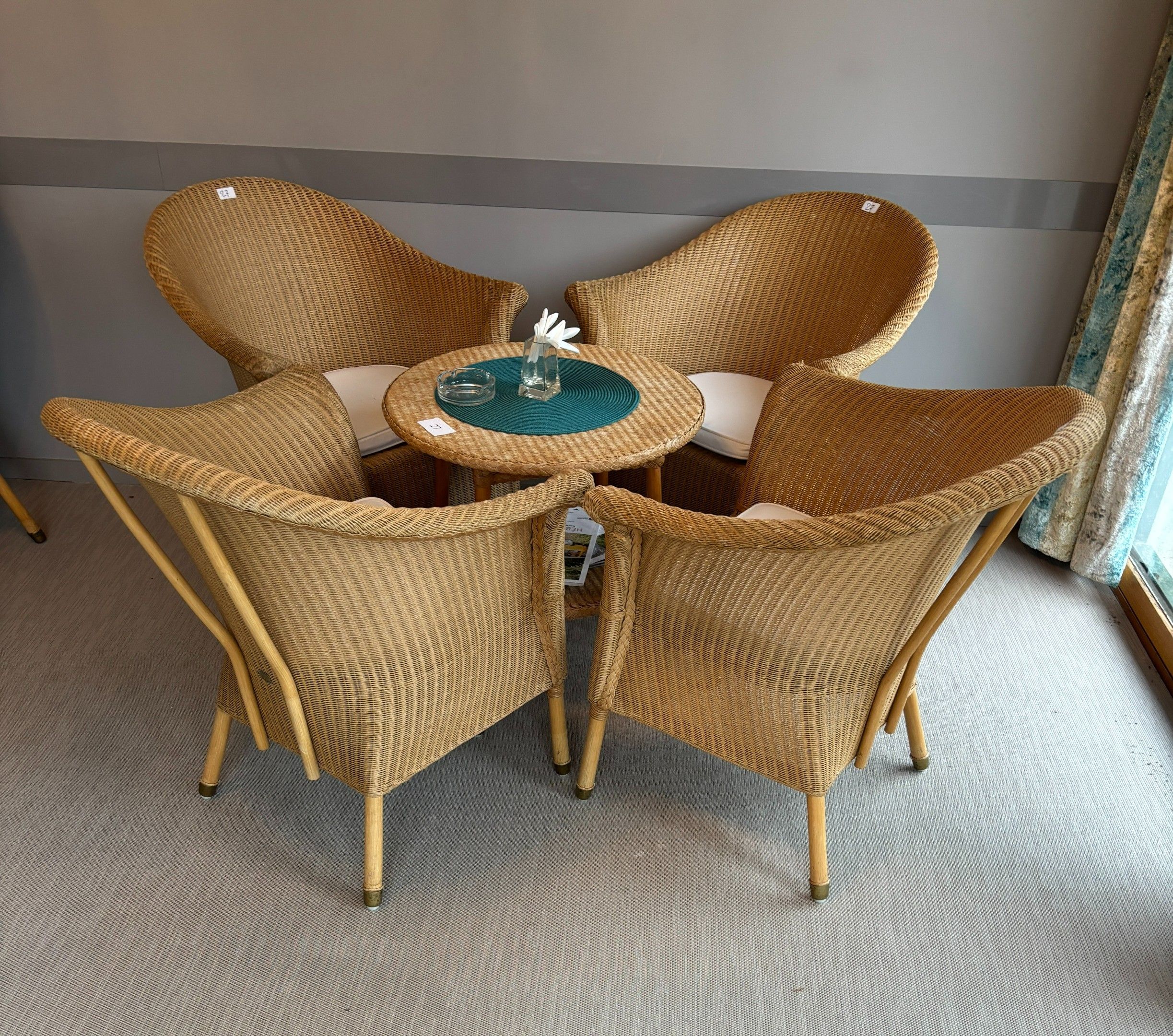 Small Lloyd Loom lounge comprising: four woven wood armchair…