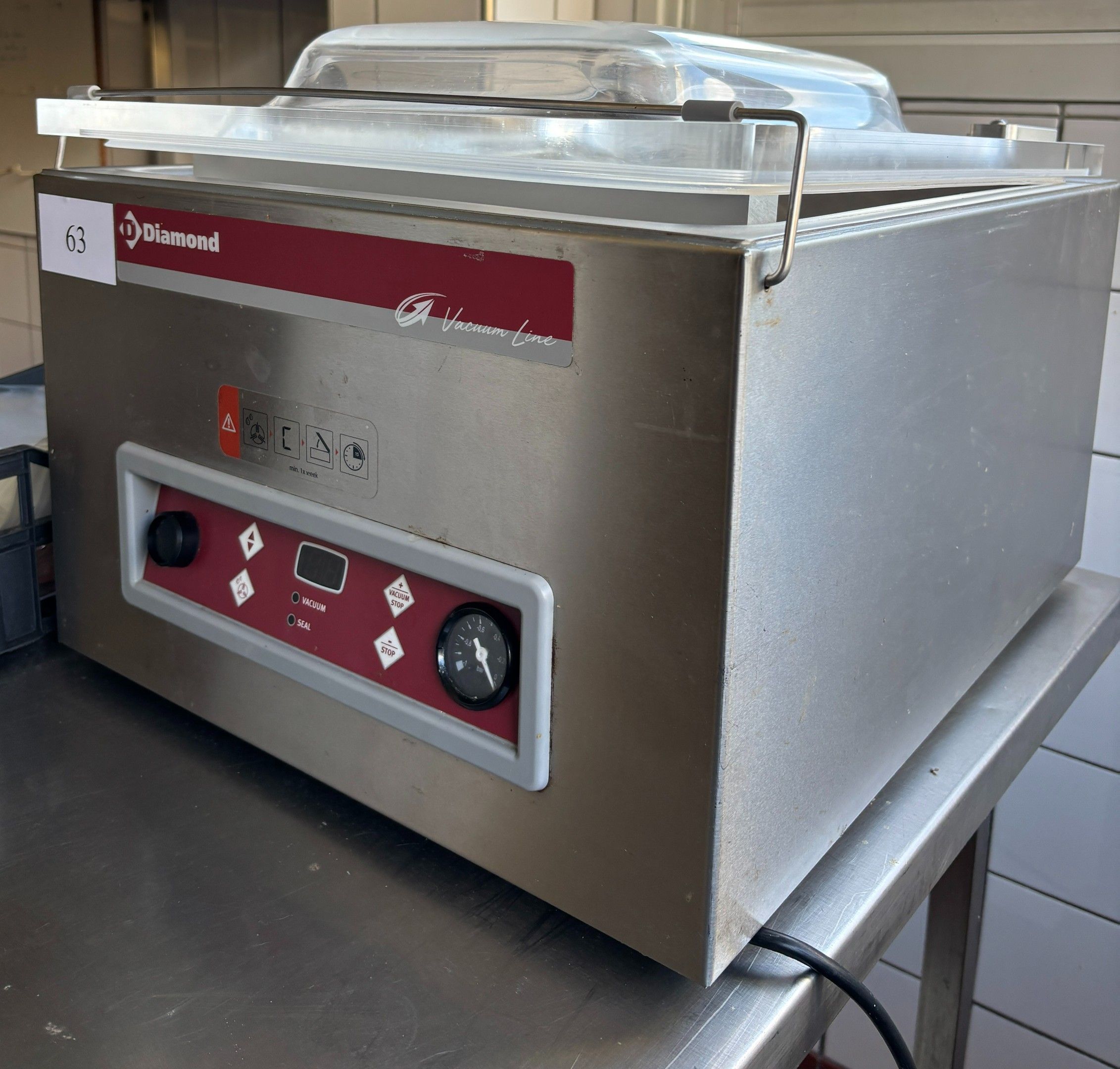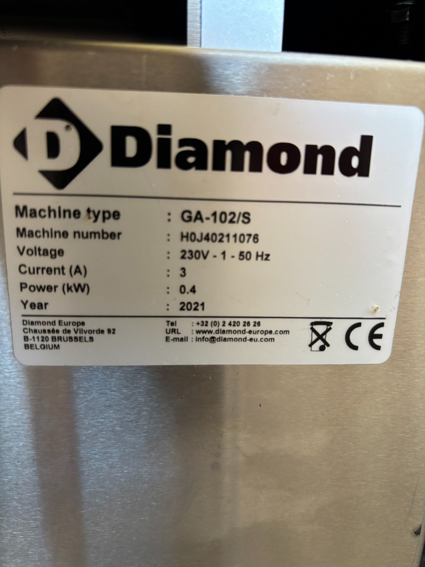 Stainless steel vacuum packing machine DIAMOND GA-102/S, 230V, 400W, from 2021; packaging bags.