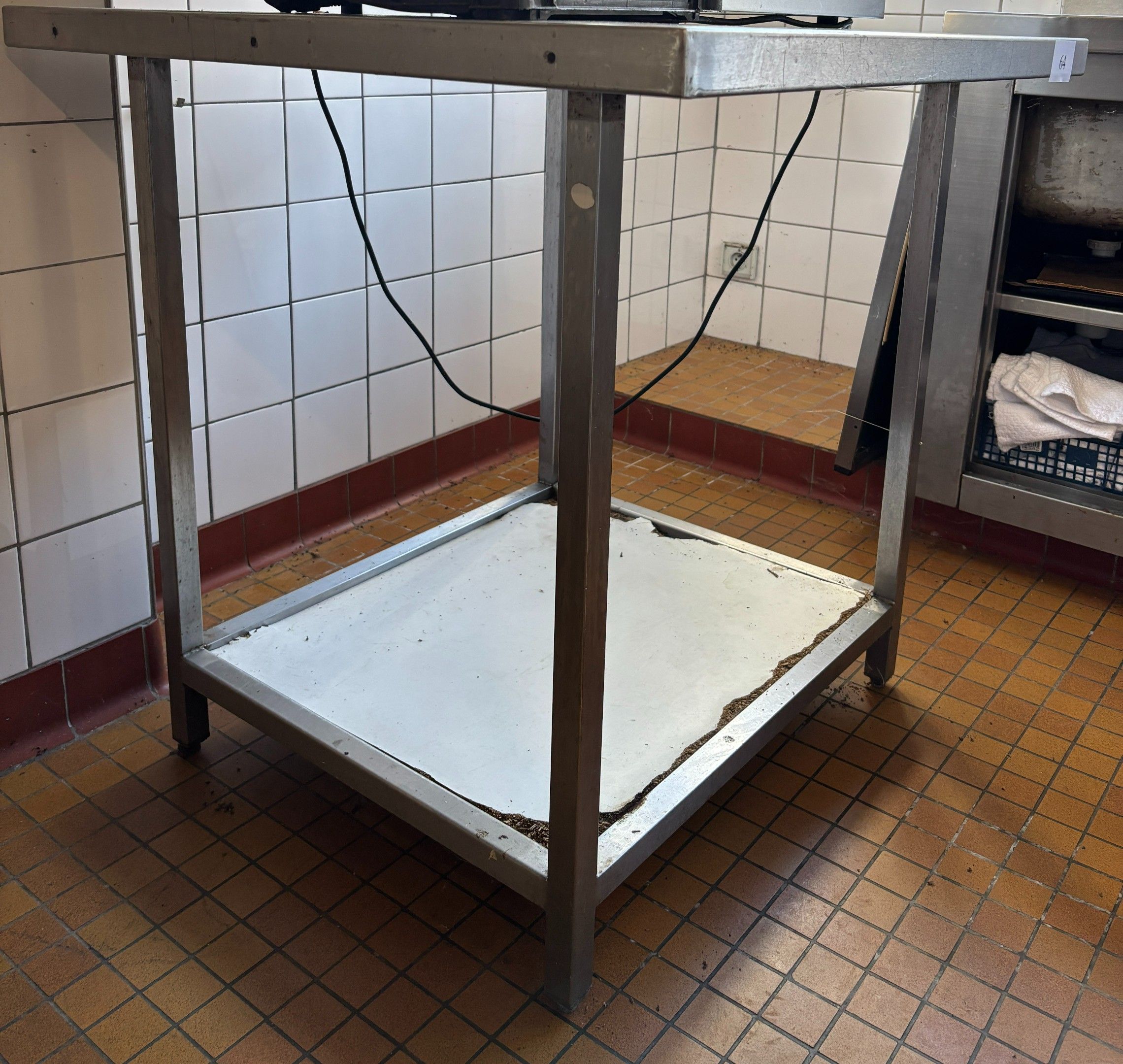 Square stainless steel side table, (width: 80cm, length: 80cm, height: 82cm).