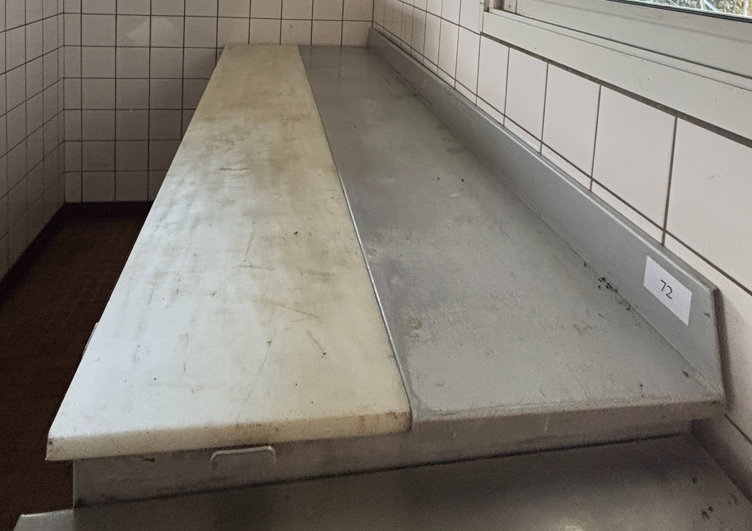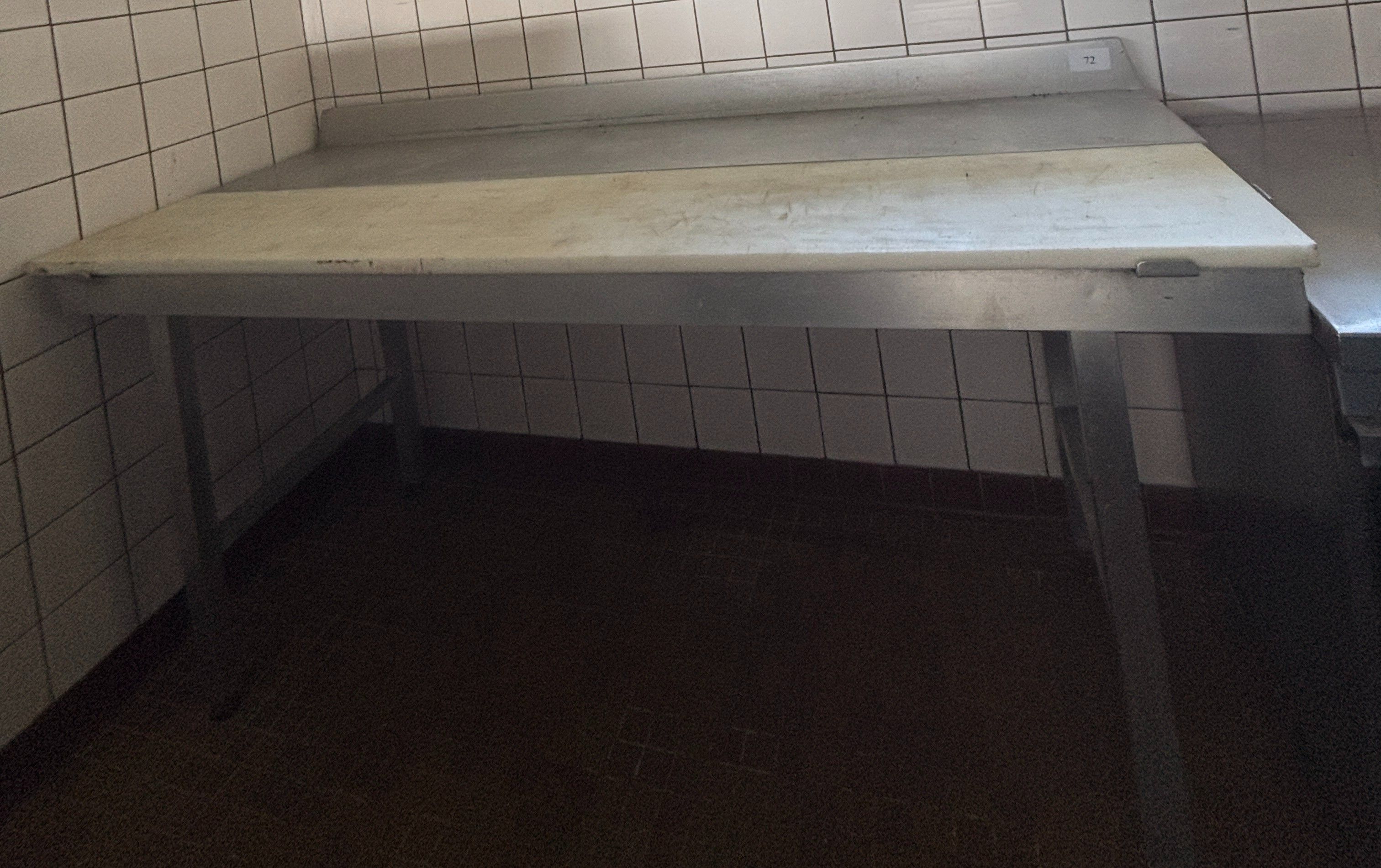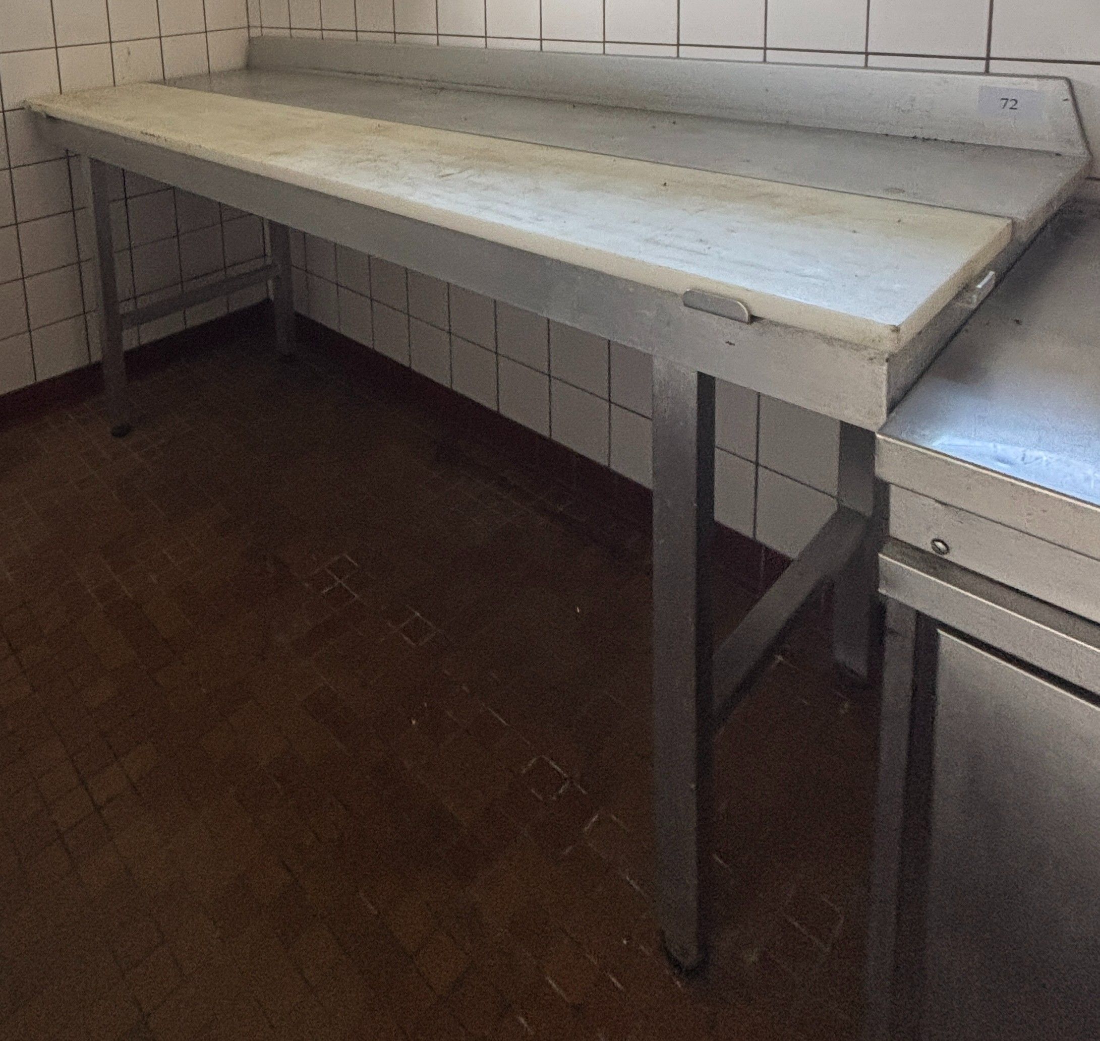 Rectangular mixed stainless steel and polyethylene worktop, with splashback, (length: 200cm, width: 72cm, height: 88cm).