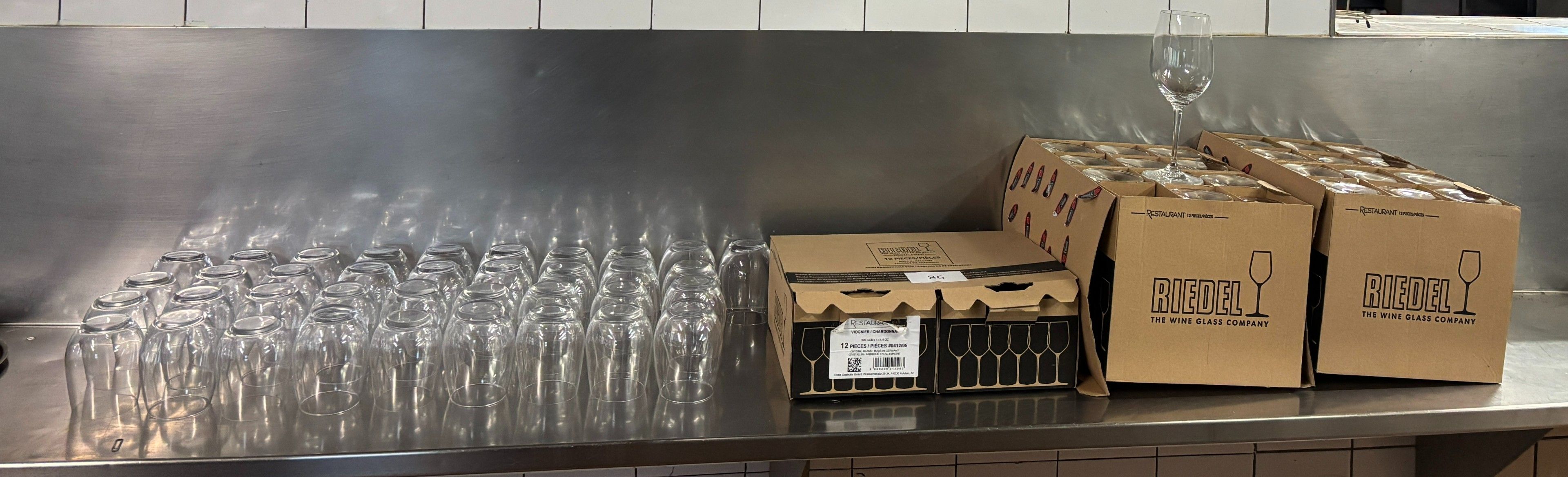 Lot including : about 45 water glasses; about 20 wine glasses.