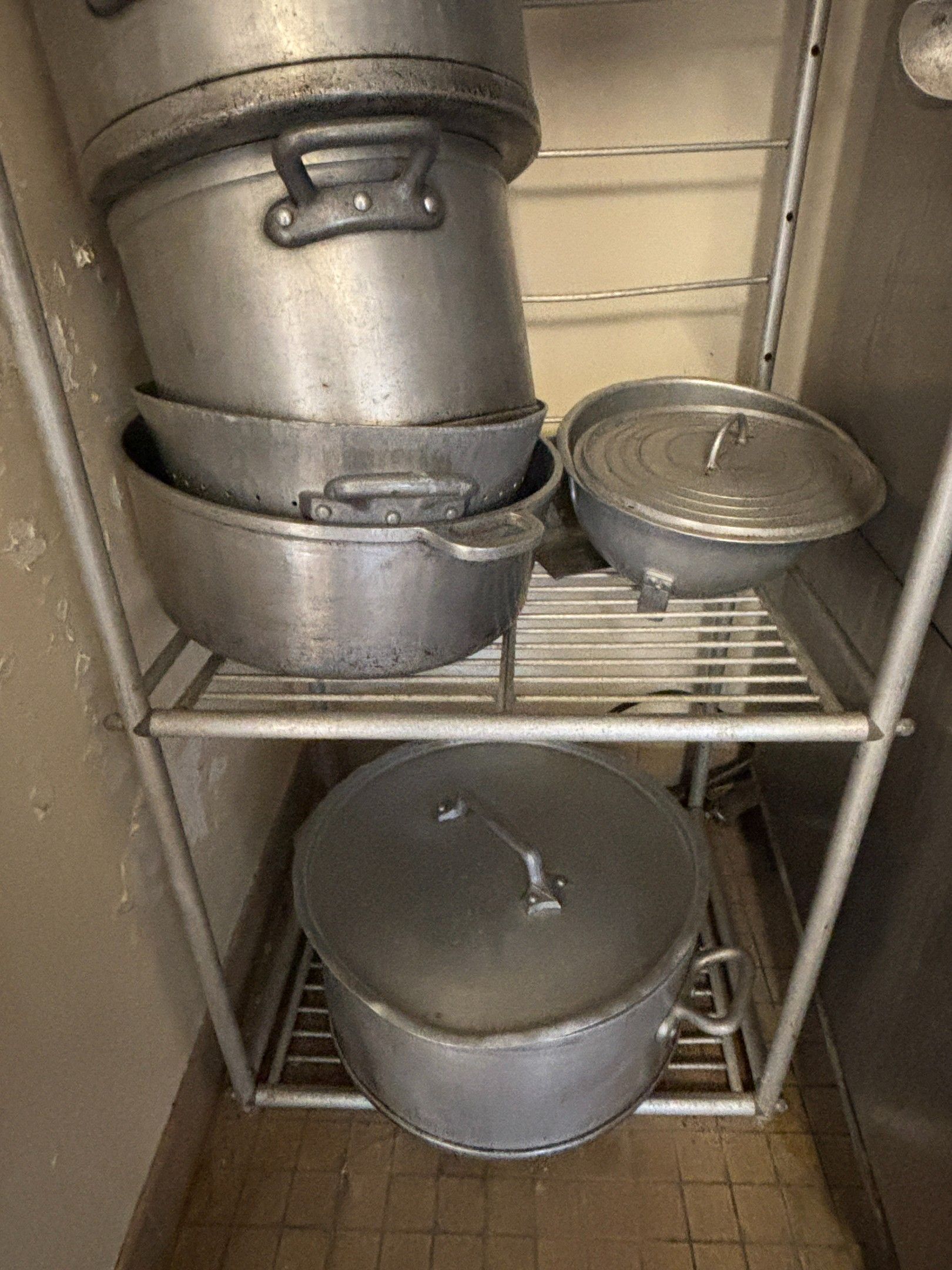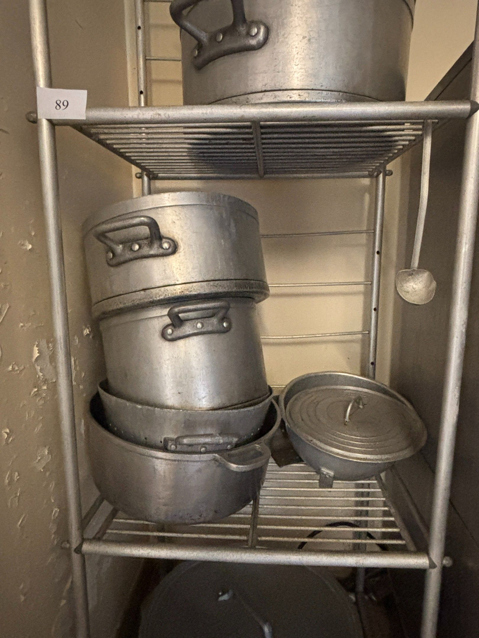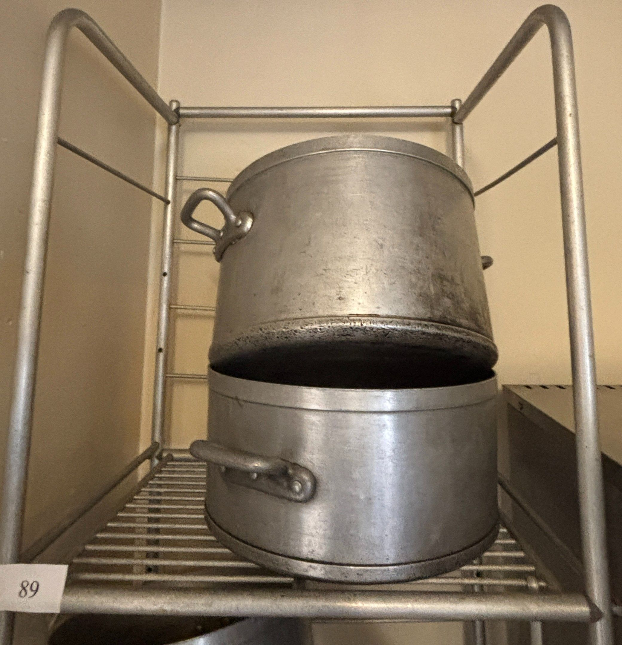 Set comprising: aluminium shelf, three levels, (height: 200cm, width: 63cm, depth: 50cm); pots of different sizes.