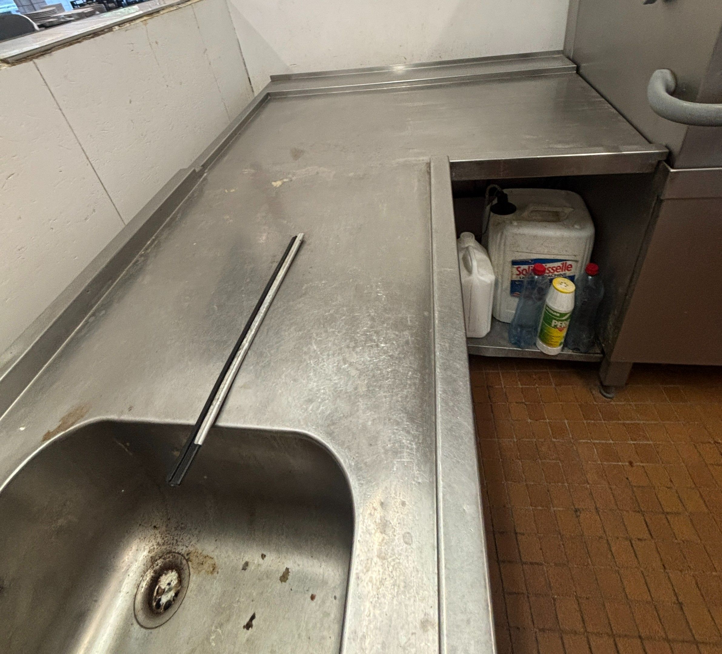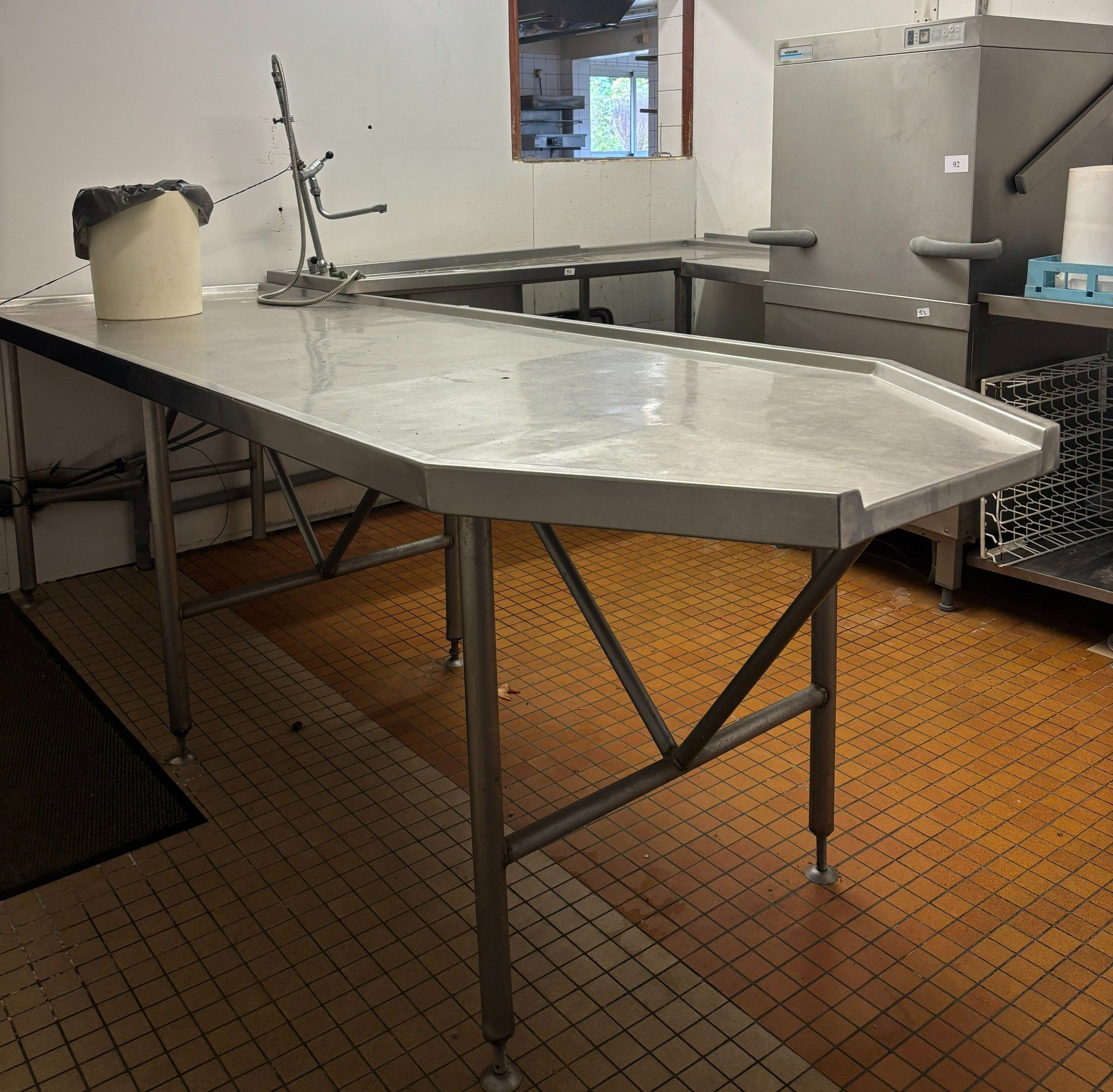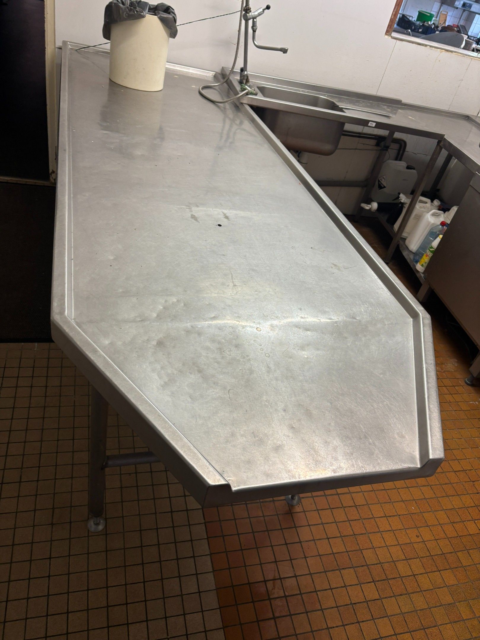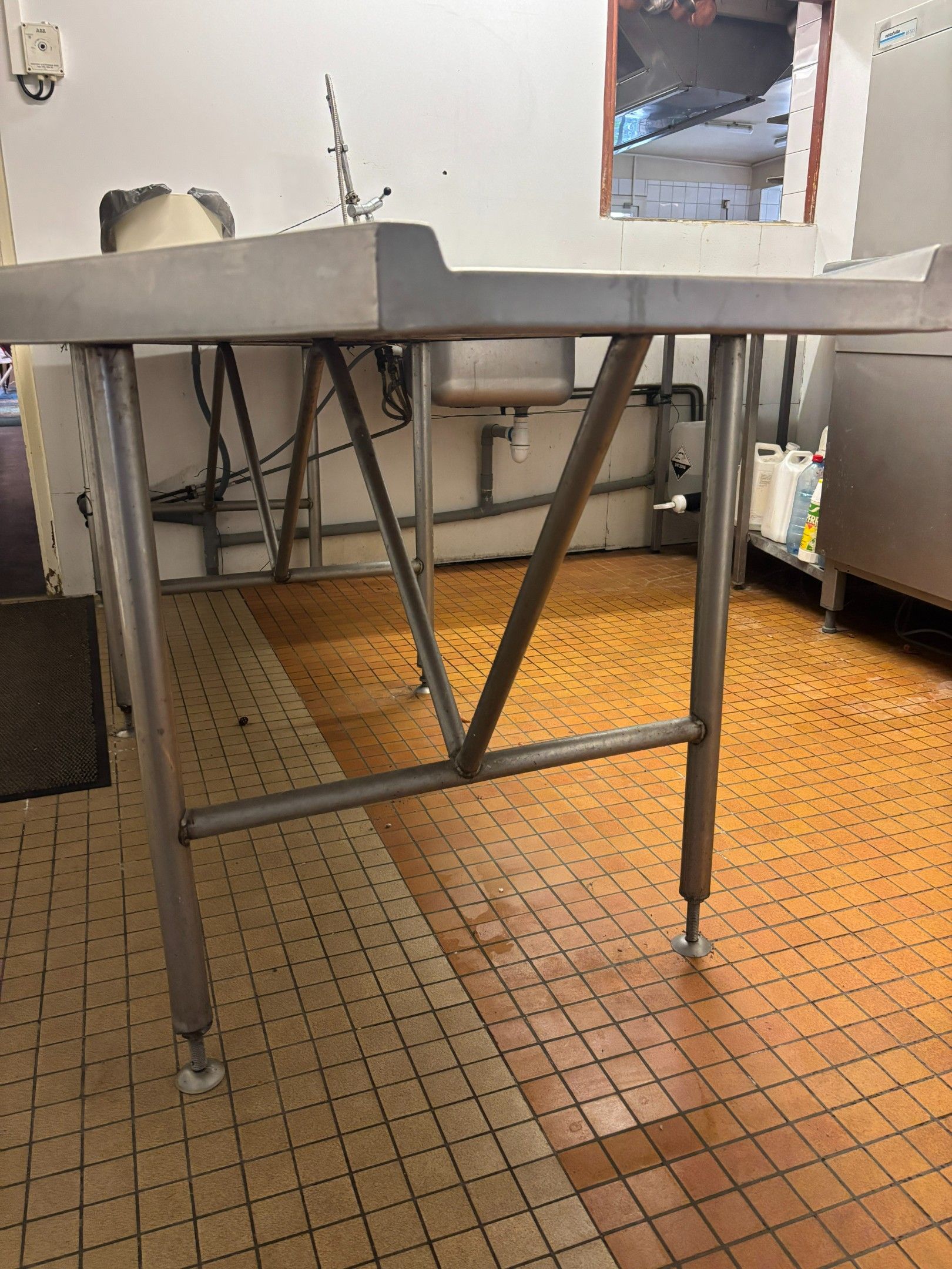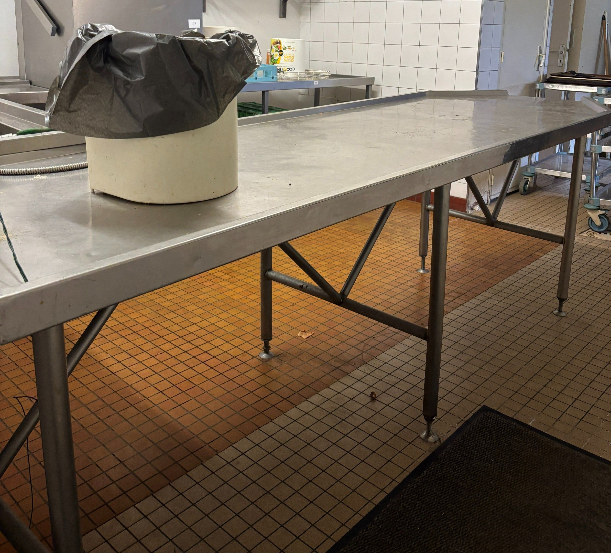 - stainless steel table with ledges, (length: 280cm, width: 90cm, height: 90cm)