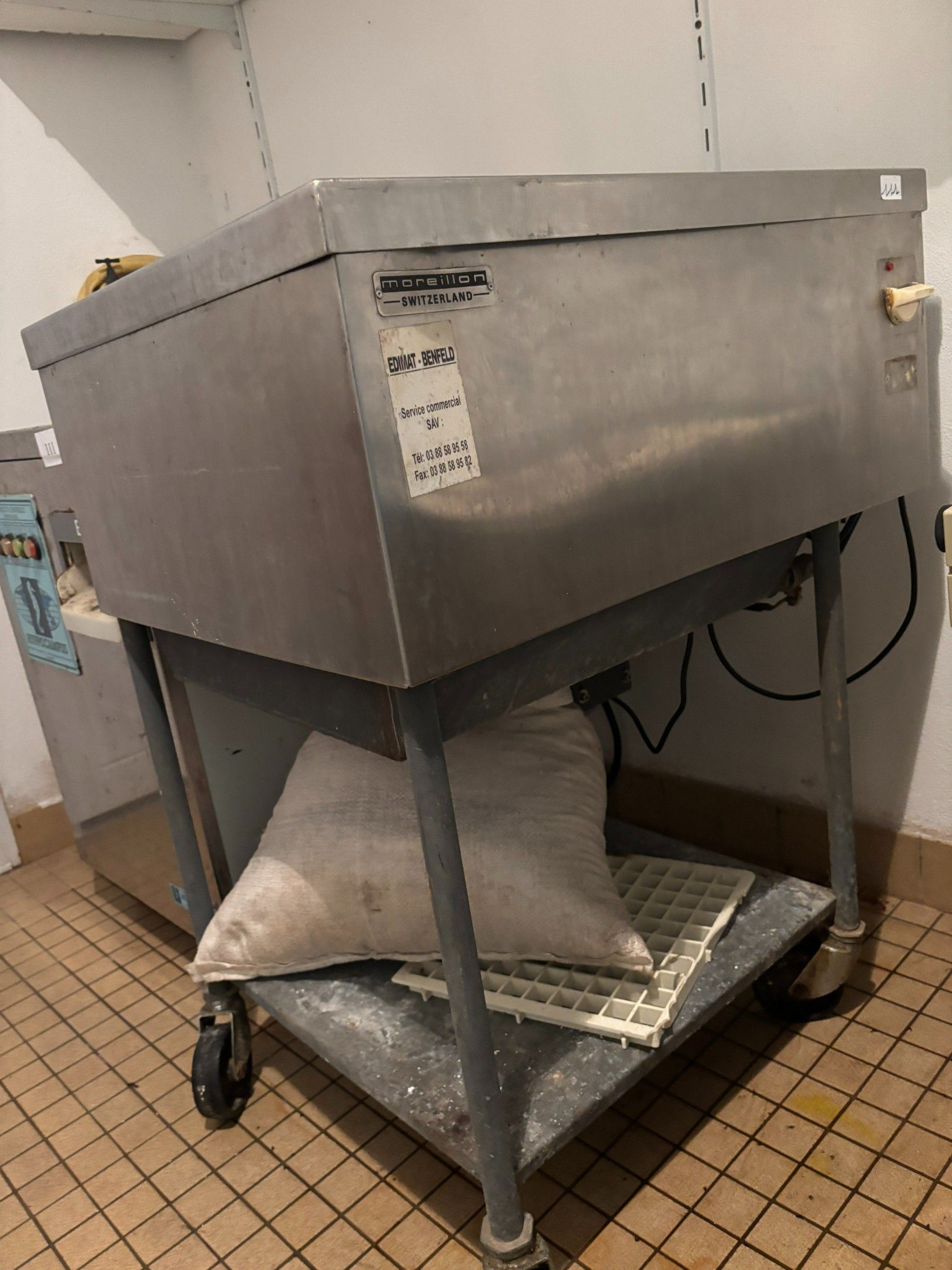 Set comprising: MOREILLON silver flatware burnisher; flatware polishing machine.