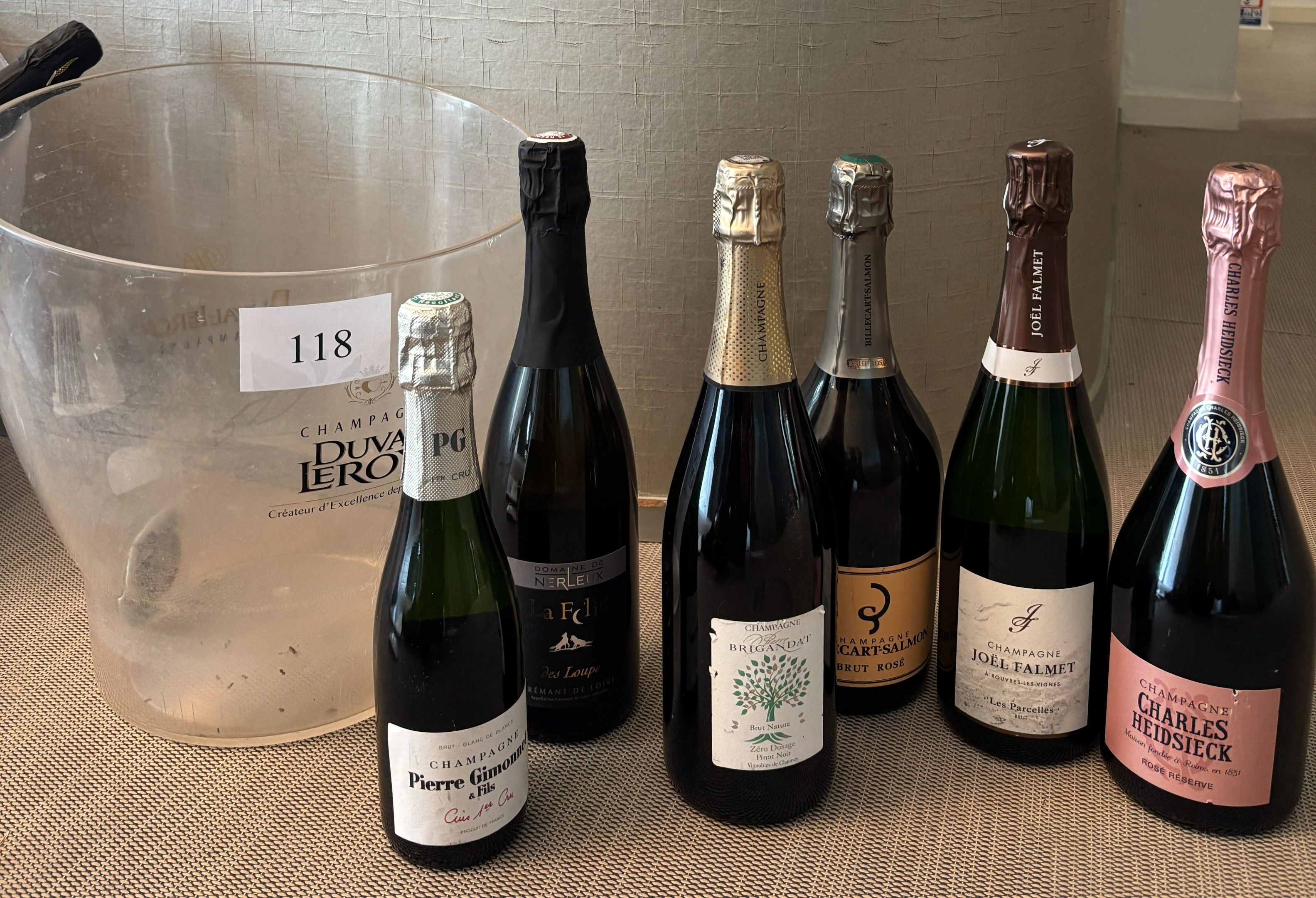 - five bottles of Champagne from different producers