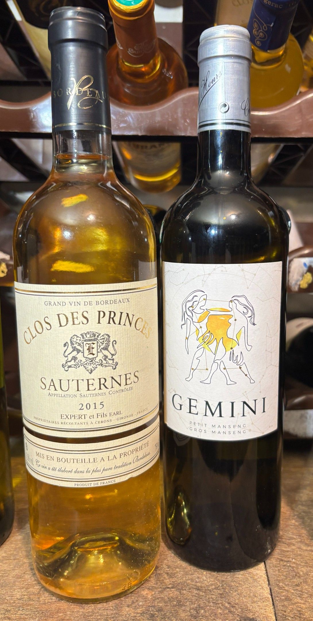 - four bottles of Sauternes, Clos Des Princes, 2015