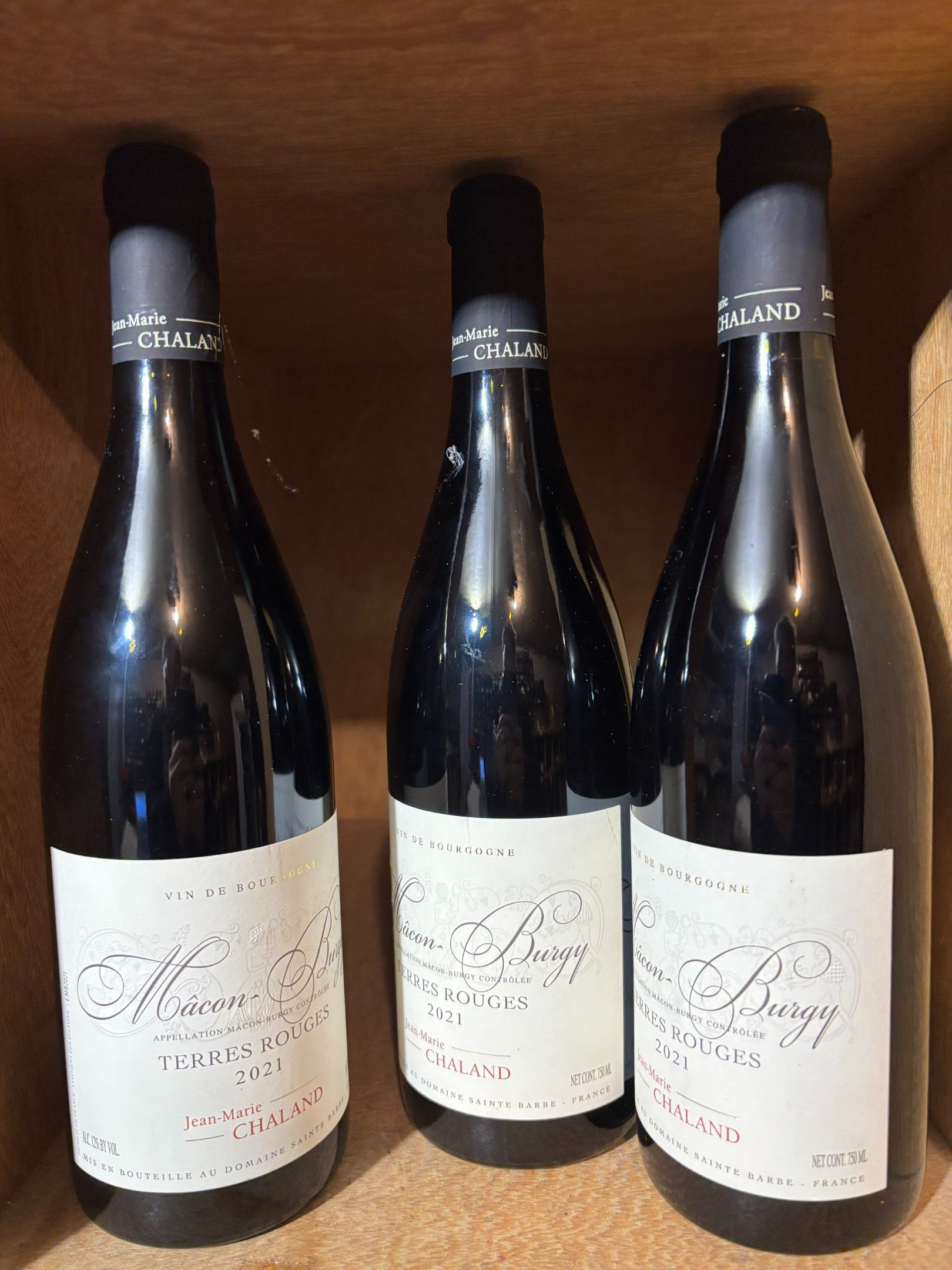 - three bottles of Mâcon Domaine Saint Barbe, 2021