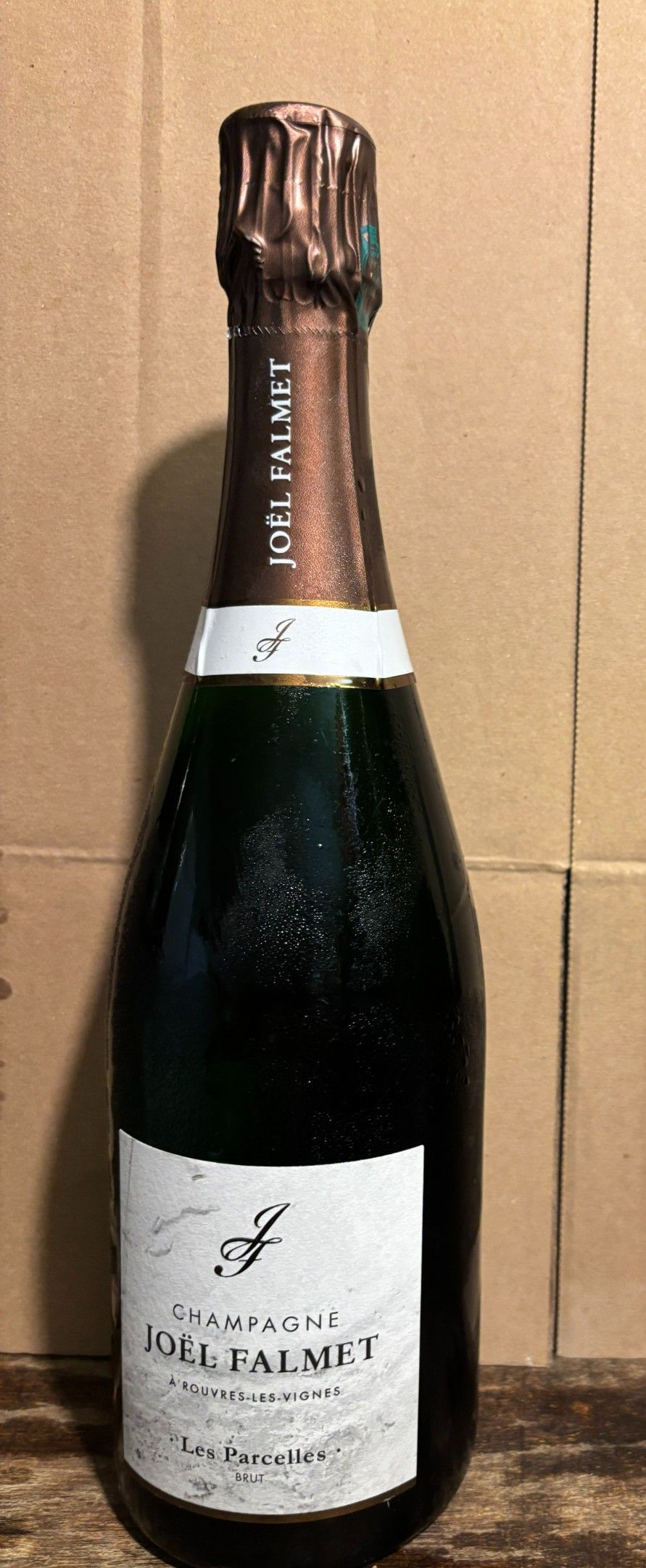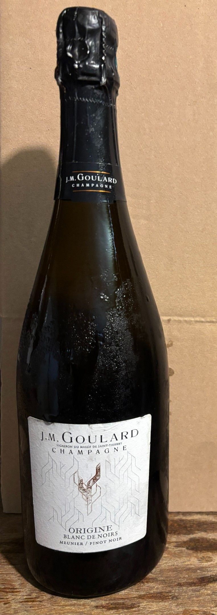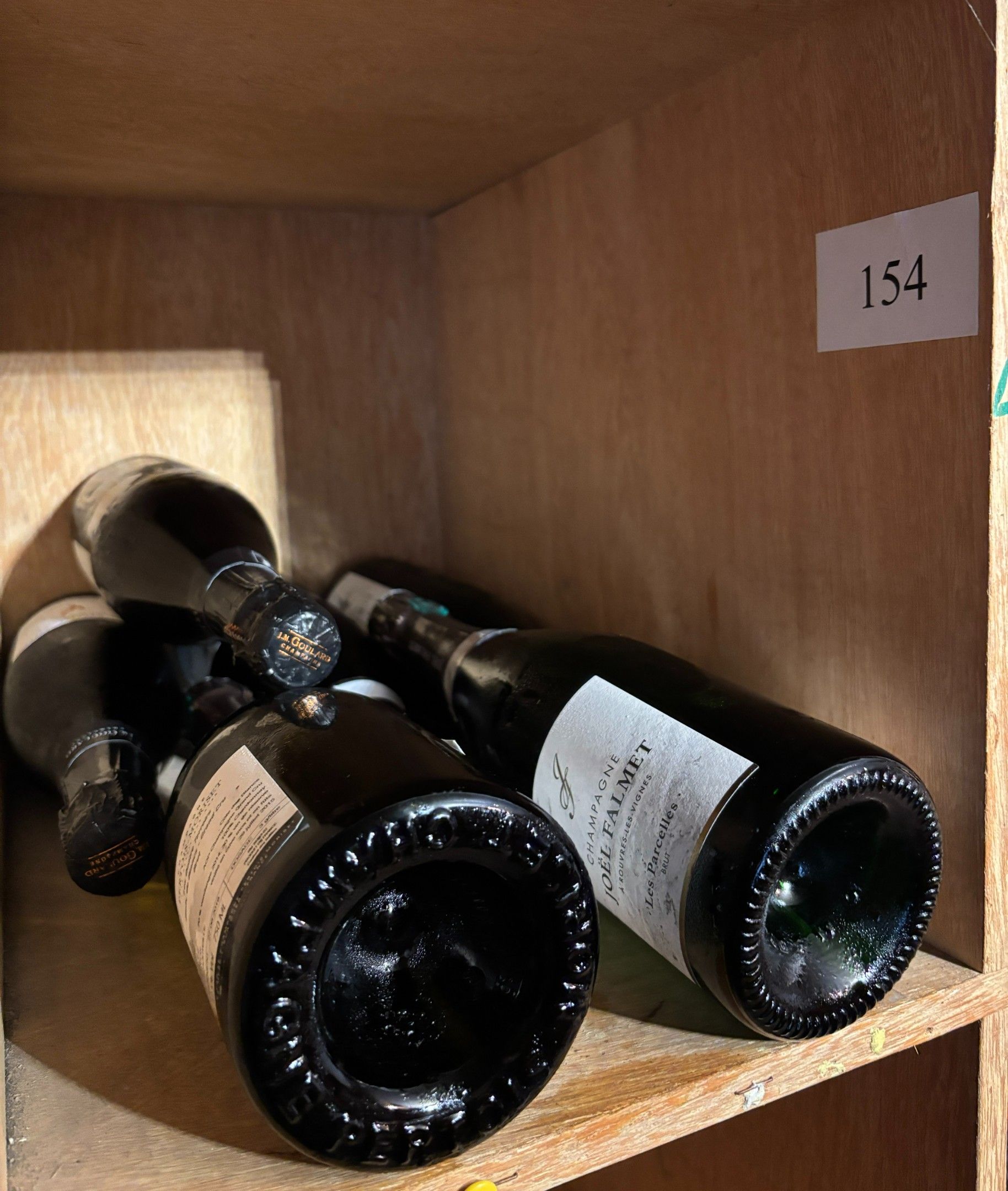 Assortment of bottles of champagne: two J-M Goulard, one Pertois-Moriset, Grand Cru; one Joël-Falmet, Brut; one Claude Bernard, récoltant.