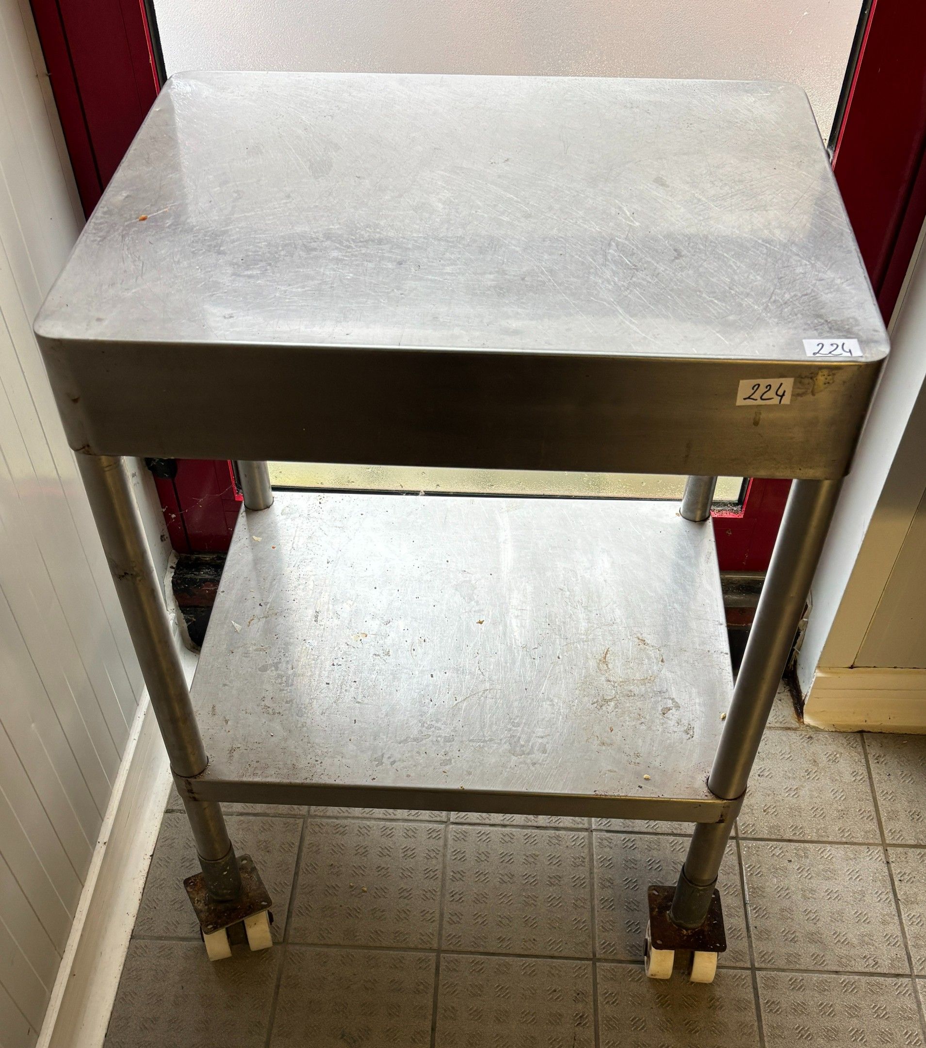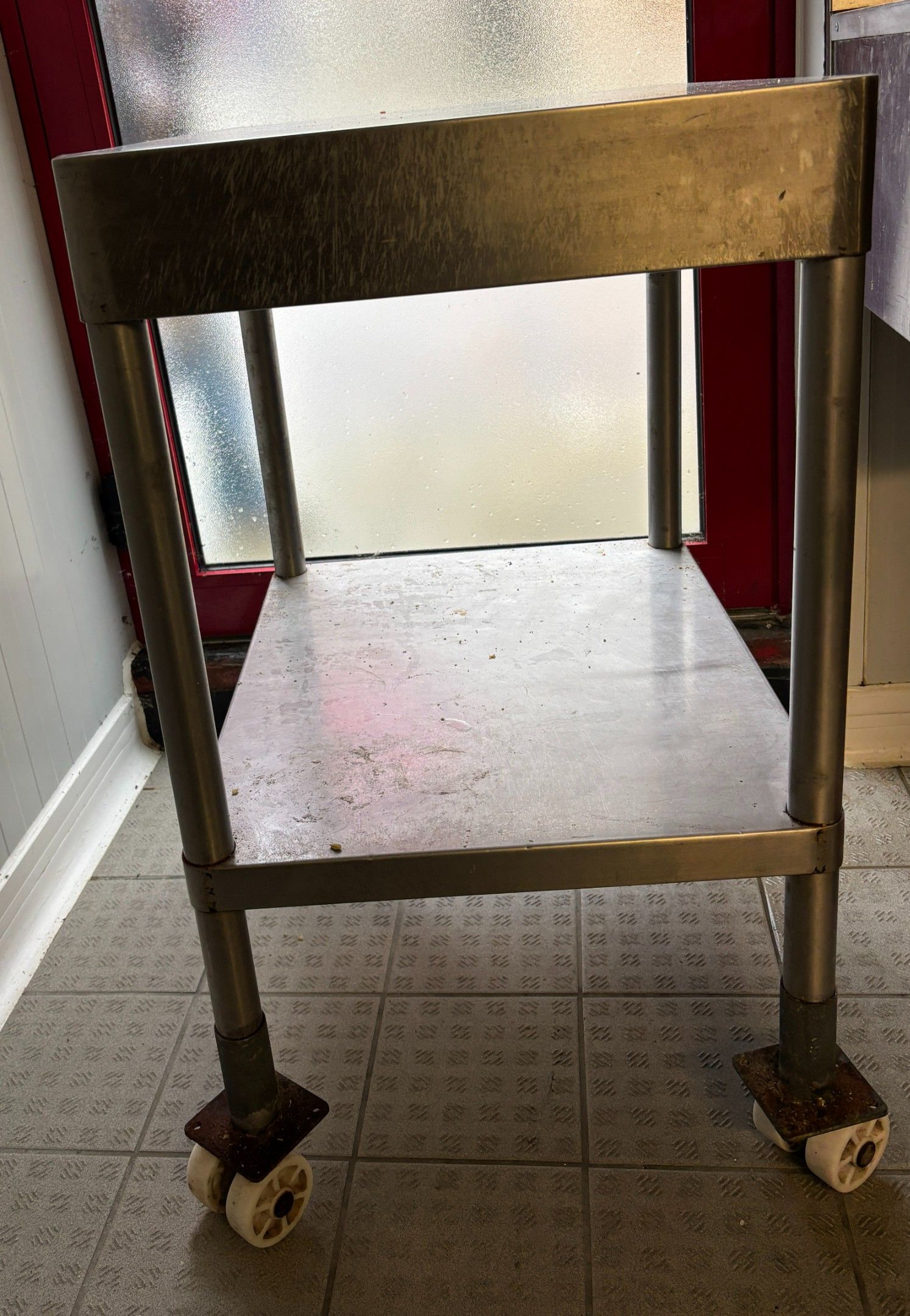 Side table on castors, spacer shelf, (length: 62cm, width: 50cm, height: 87cm).