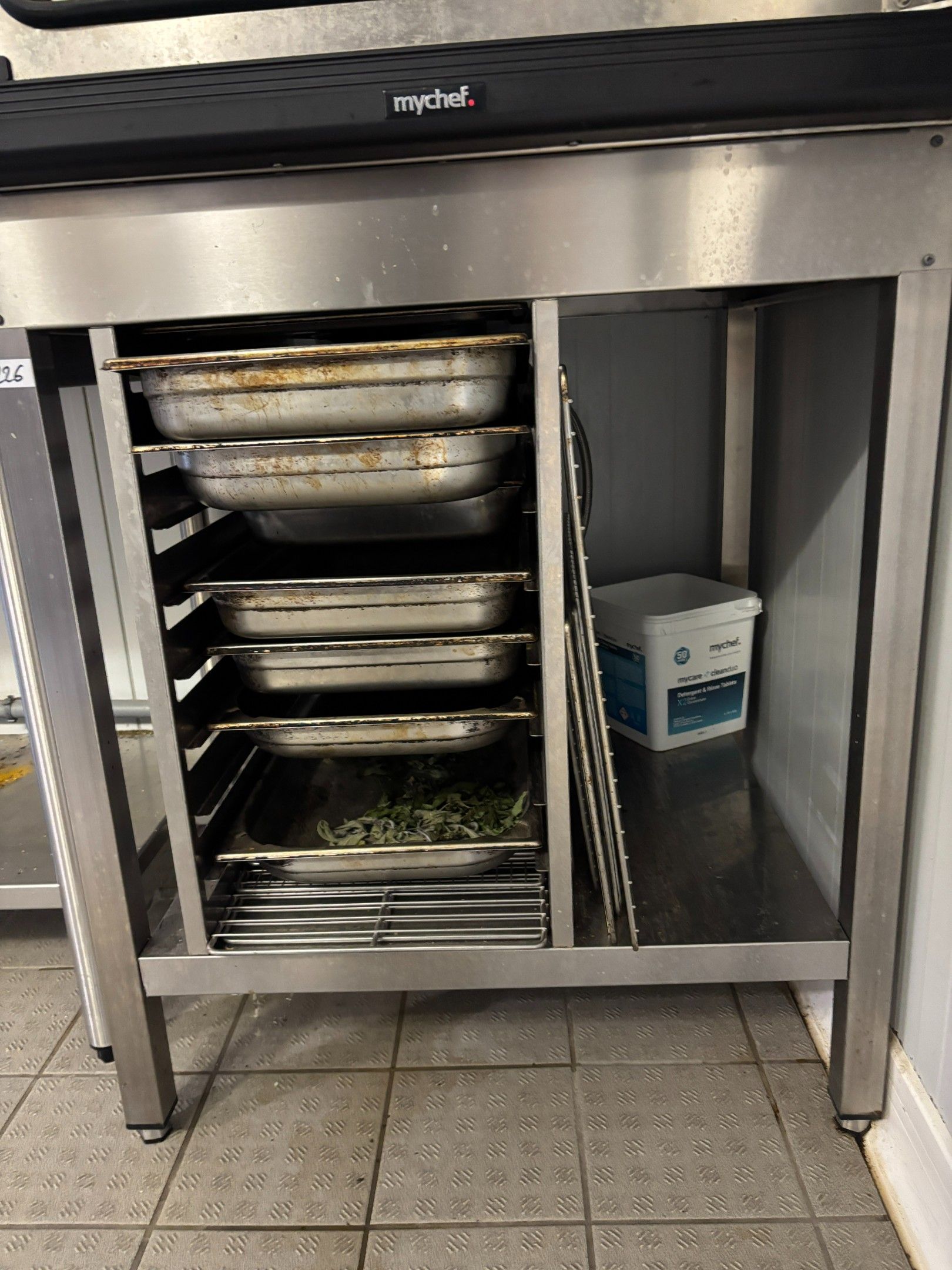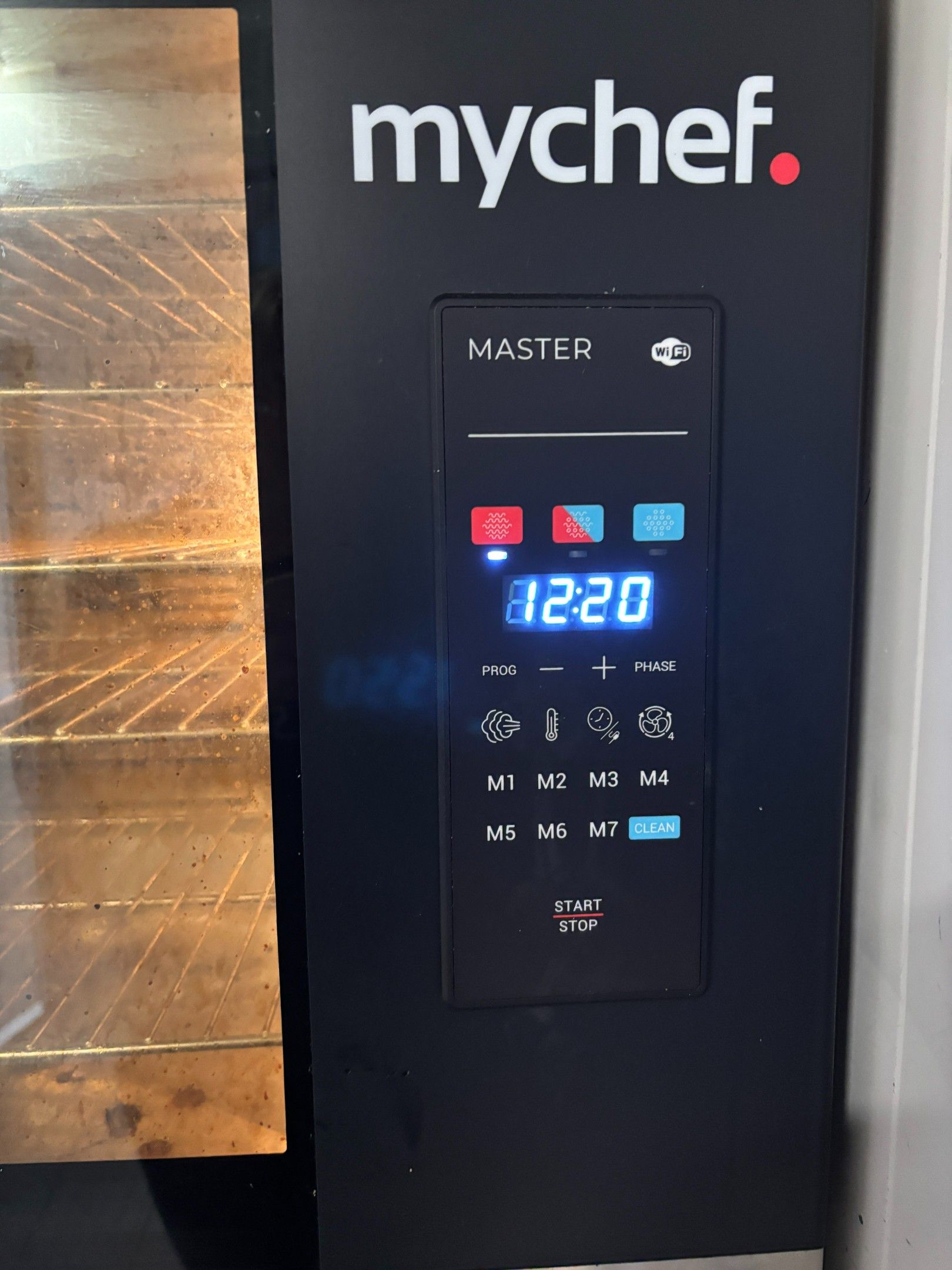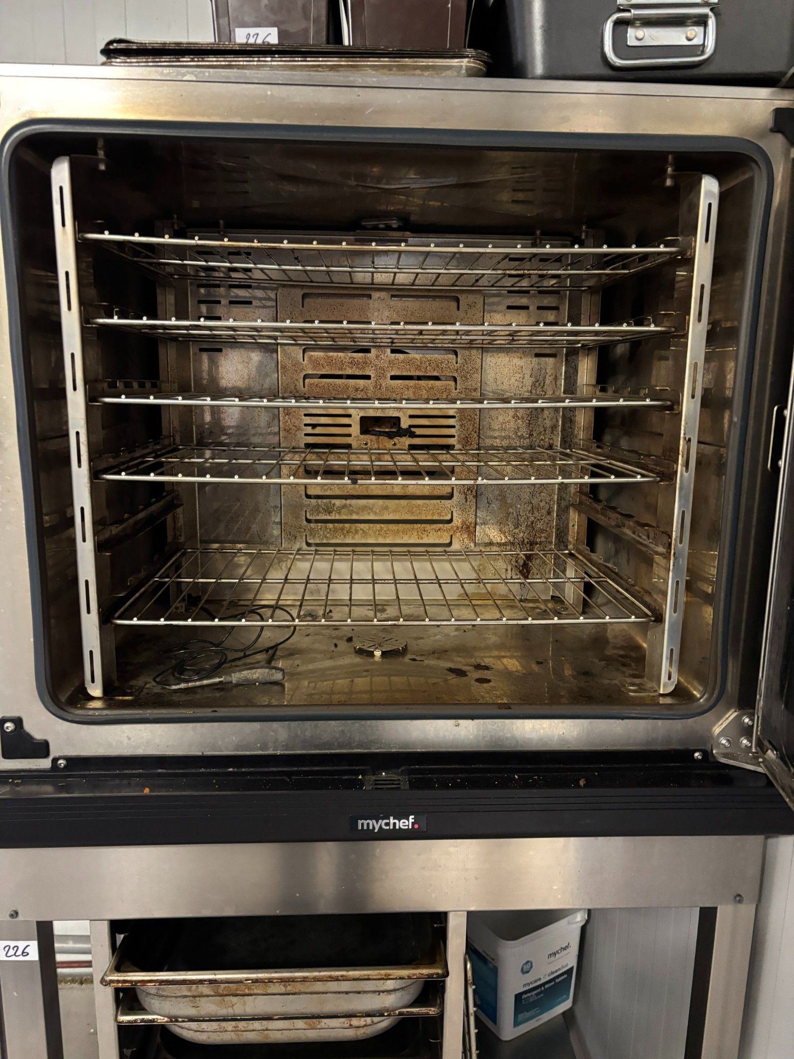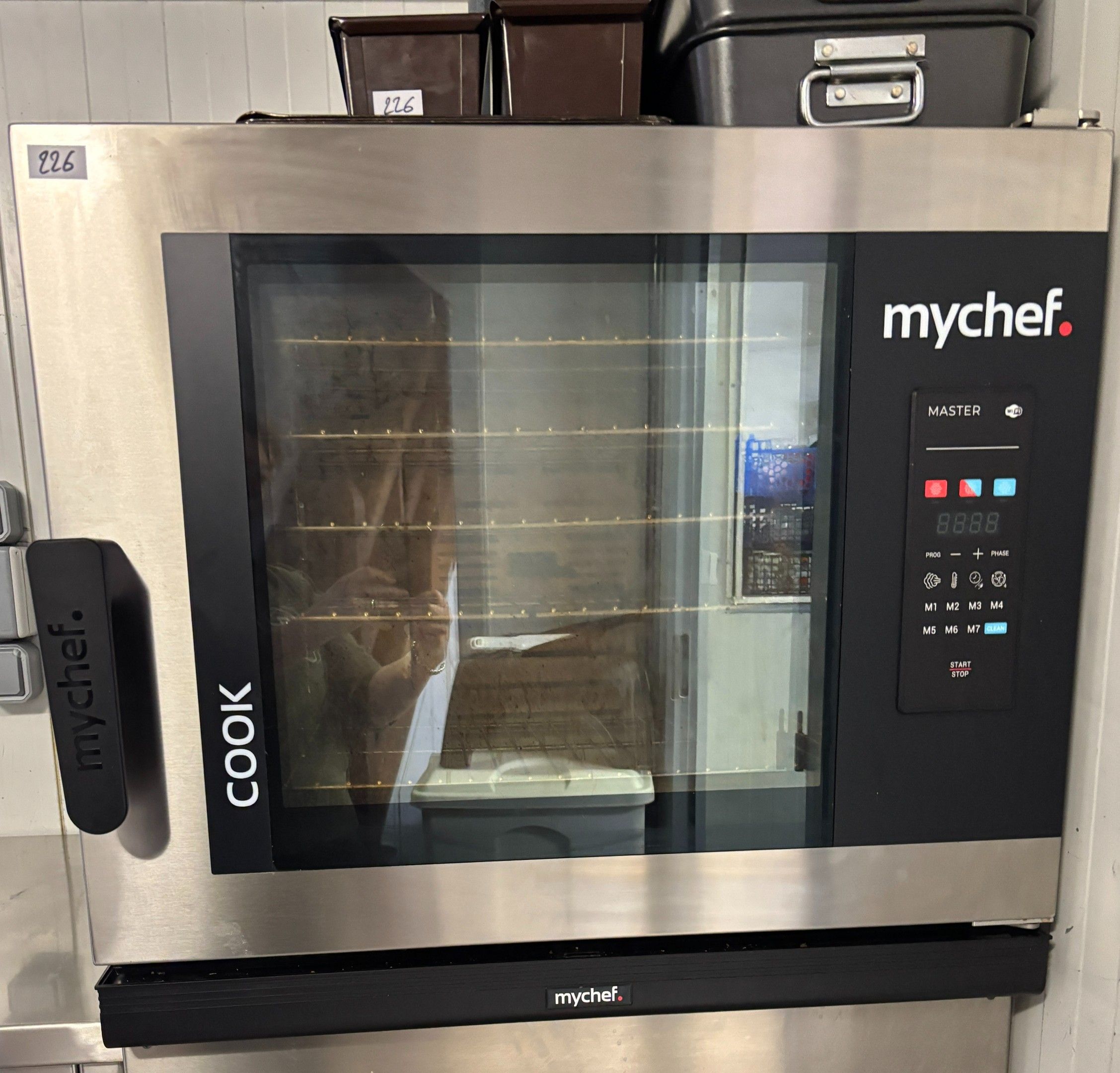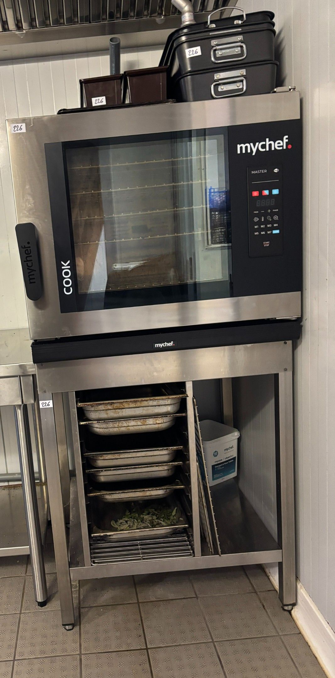 MYCHEF CME6100D electric combi oven, 230-400V, 9300W; stainless steel oven stand; oven dishes and racks.
