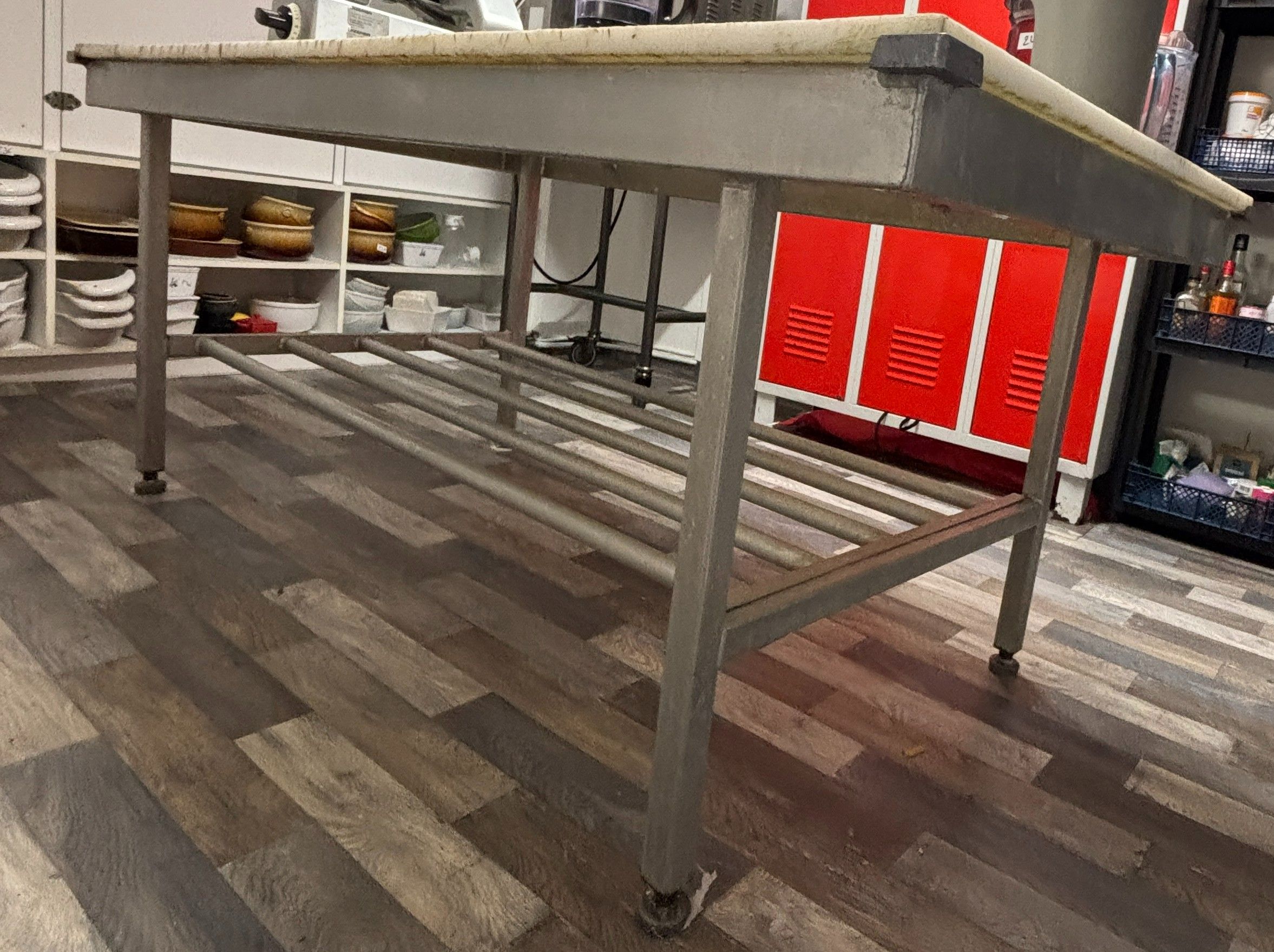 Rectangular work table, aluminium base, polypropylene top, (length: 200cm, width: 100cm, height: 87cm).